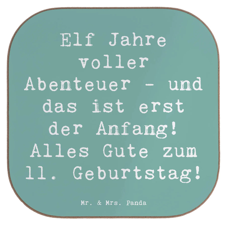 Square coaster Saying Elf Jahre voller Abenteuer - und das ist erst der Anfang! Alles Gute zum 11. Geburtstag! - Sea Breeze