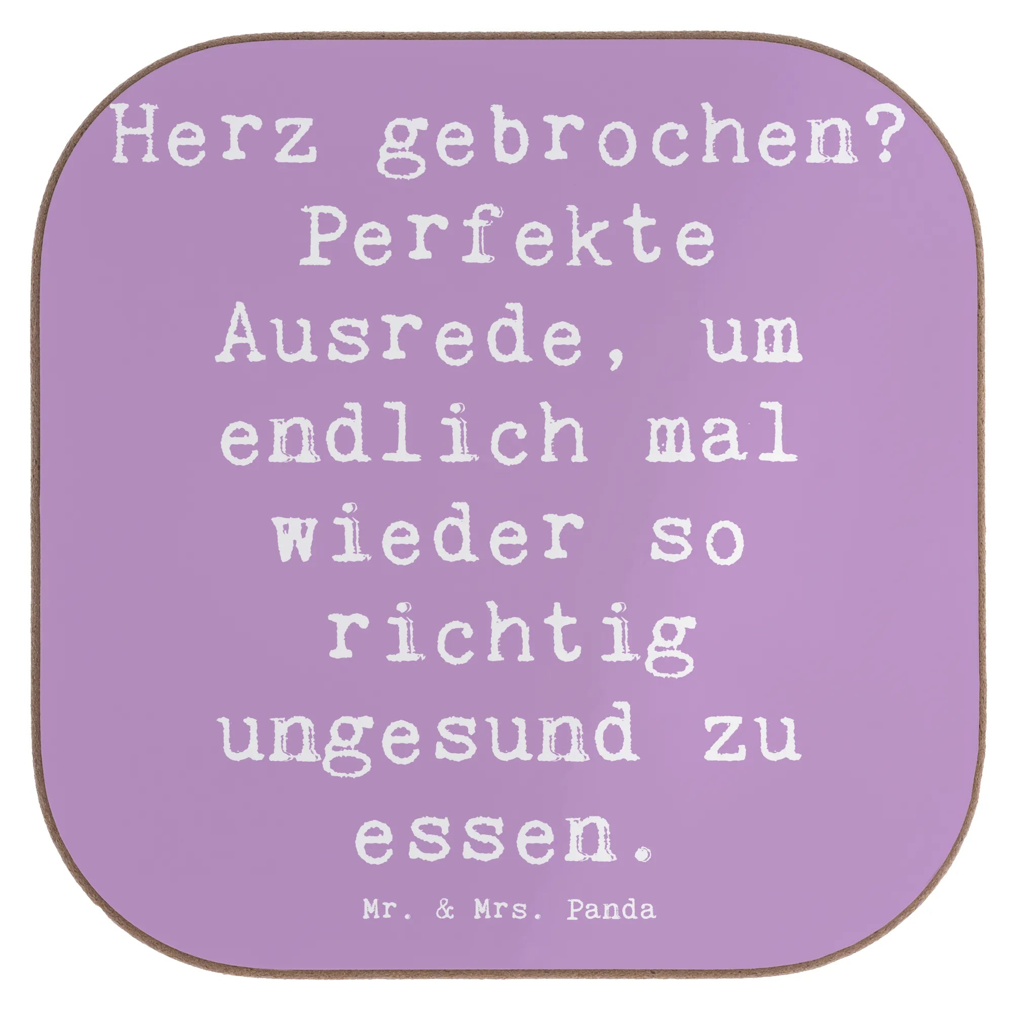 Square coaster Saying Herz gebrochen? Perfekte Ausrede, um endlich mal wieder so richtig ungesund zu essen. - Meeresbrise