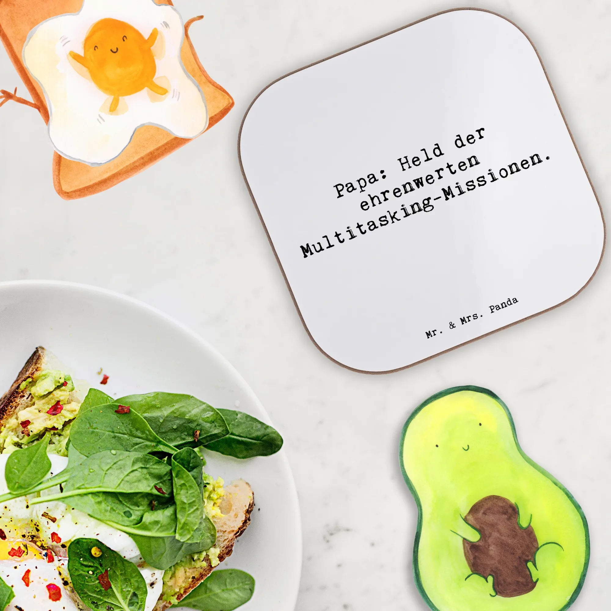 Square coaster Saying Papa: Held der ehrenwerten Multitasking-Missione – Mr. & Mrs. Panda