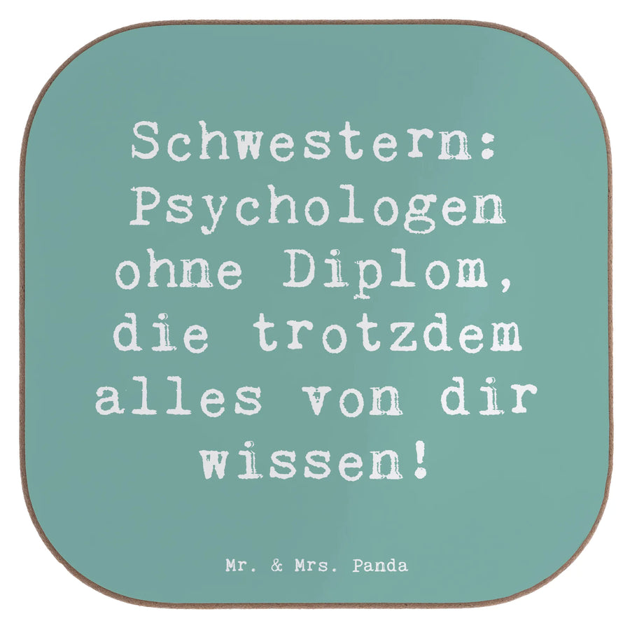 Square coaster Saying Schwestern: Psychologen ohne Diplom, die trotzdem alles von dir wissen! - Meeresbrise