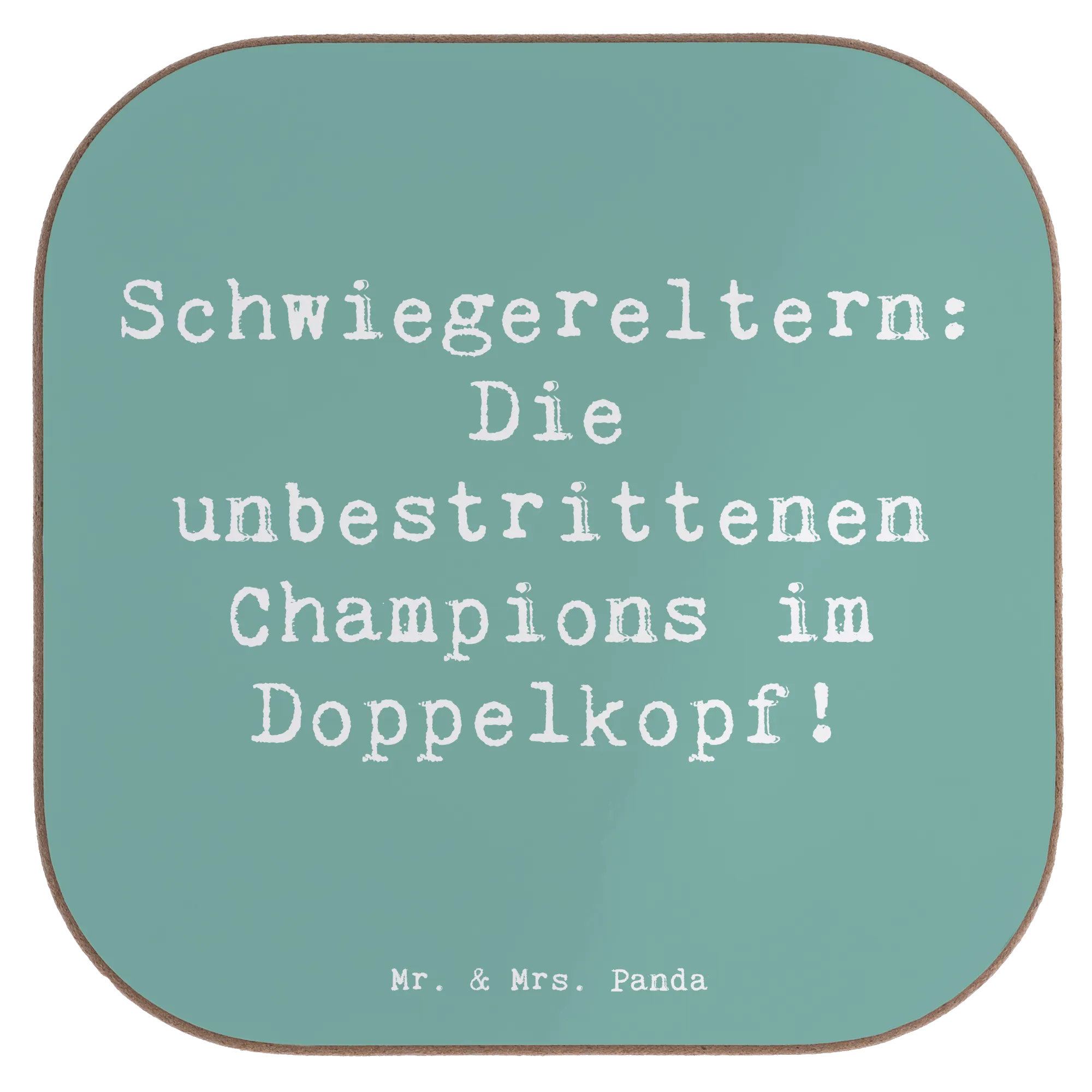 Square coaster Saying Schwiegereltern: Die unbestrittenen Champions im – Mr. & Mrs. Panda