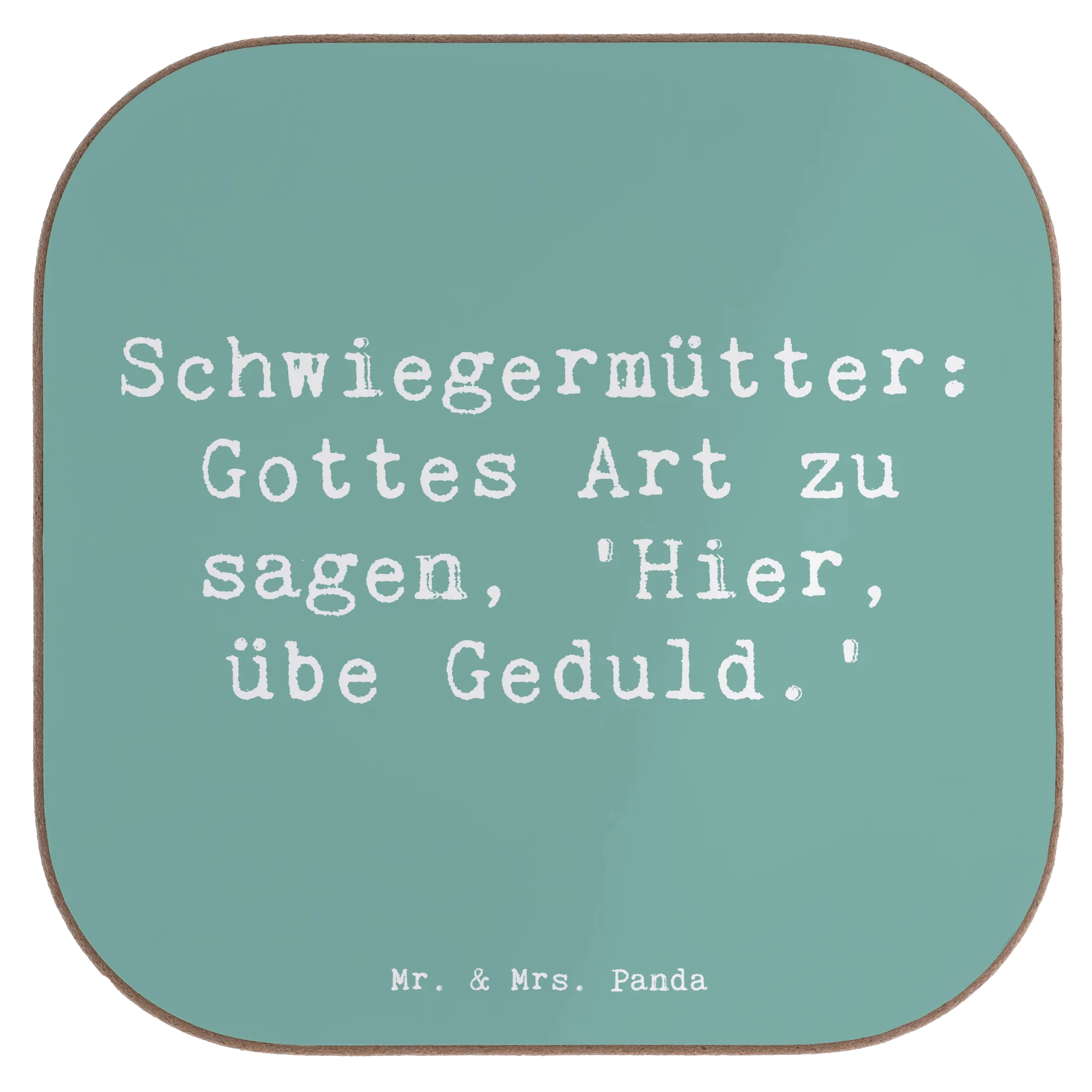 Square coaster Saying Schwiegermütter: Gottes Art zu sagen, 'Hier, übe Geduld.' - Sea Breeze