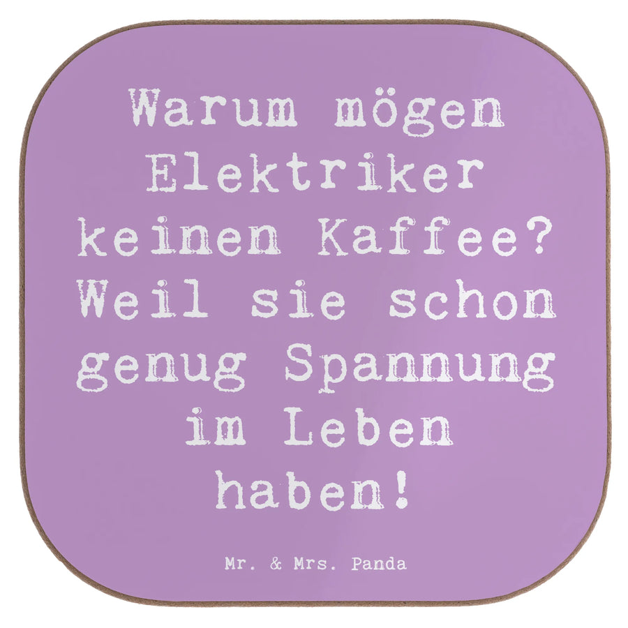 Square coaster Saying Warum mögen Elektriker keinen Kaffee? Weil sie schon genug Spannung im Leben haben! - Carton 300 grams - Lavender Dream