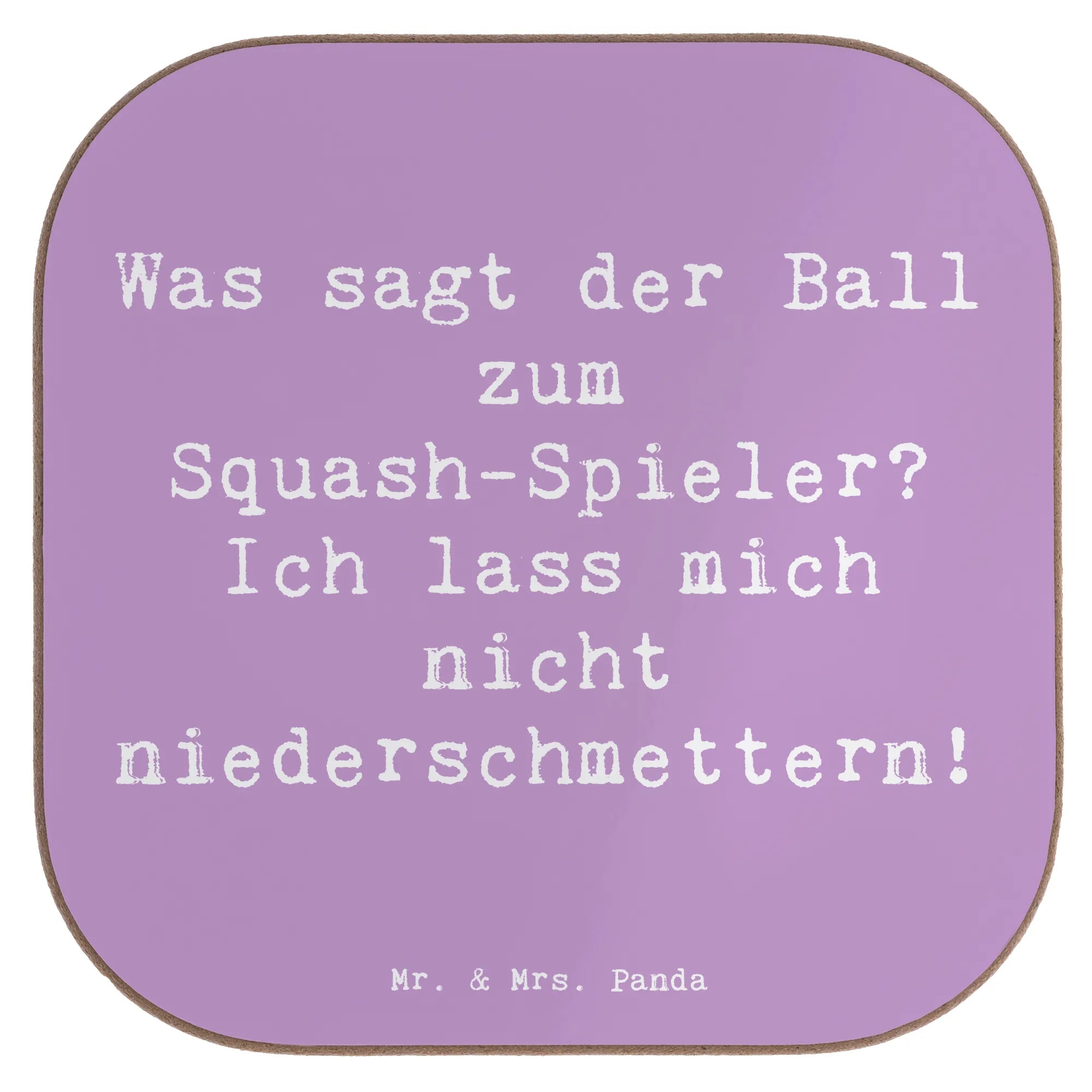Square coaster Saying Was sagt der Ball zum Squash-Spieler? Ich lass m – Mr. & Mrs. Panda