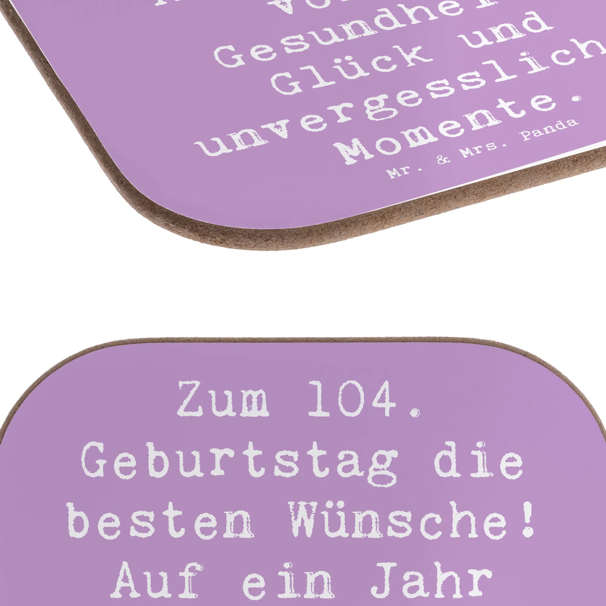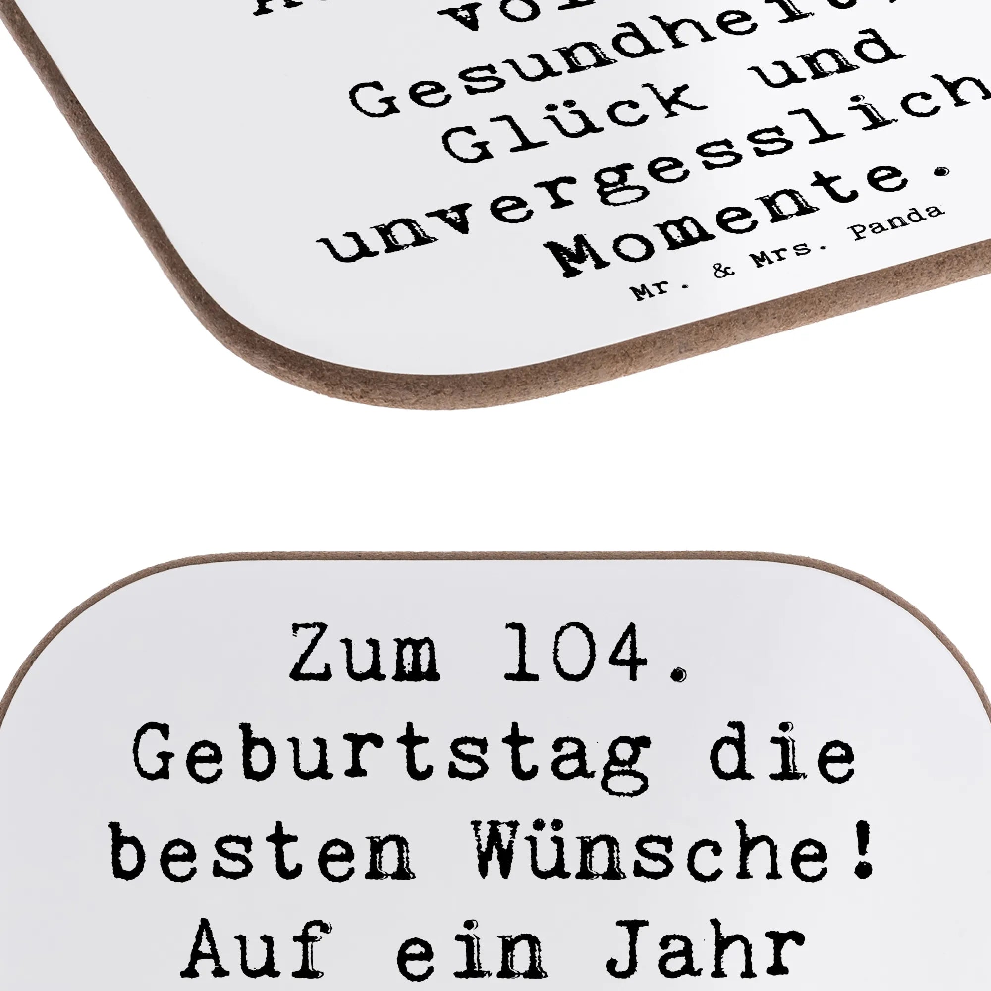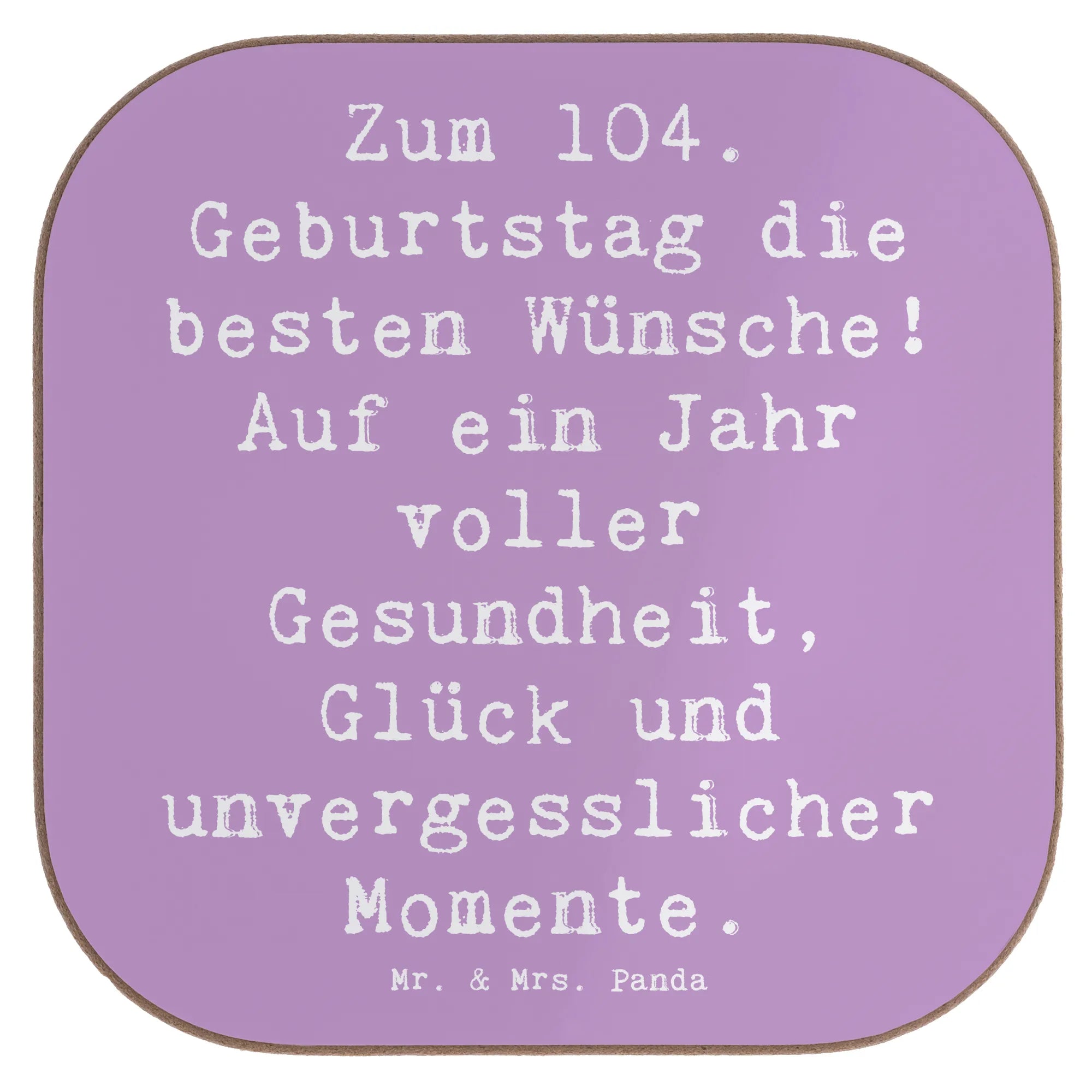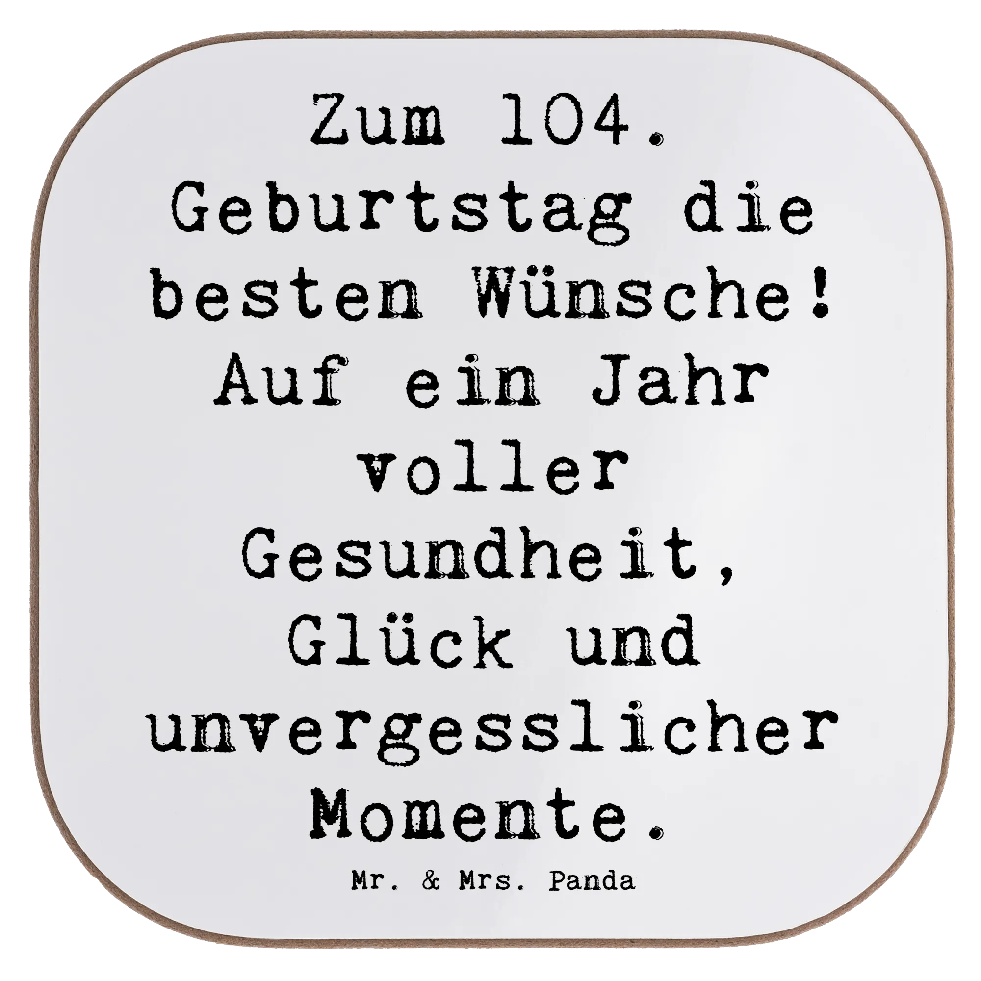 Square coaster Saying Zum 104. Geburtstag die besten Wünsche! Auf ein Jahr voller Gesundheit, Glück und unvergesslicher Momente. - Meeresbrise