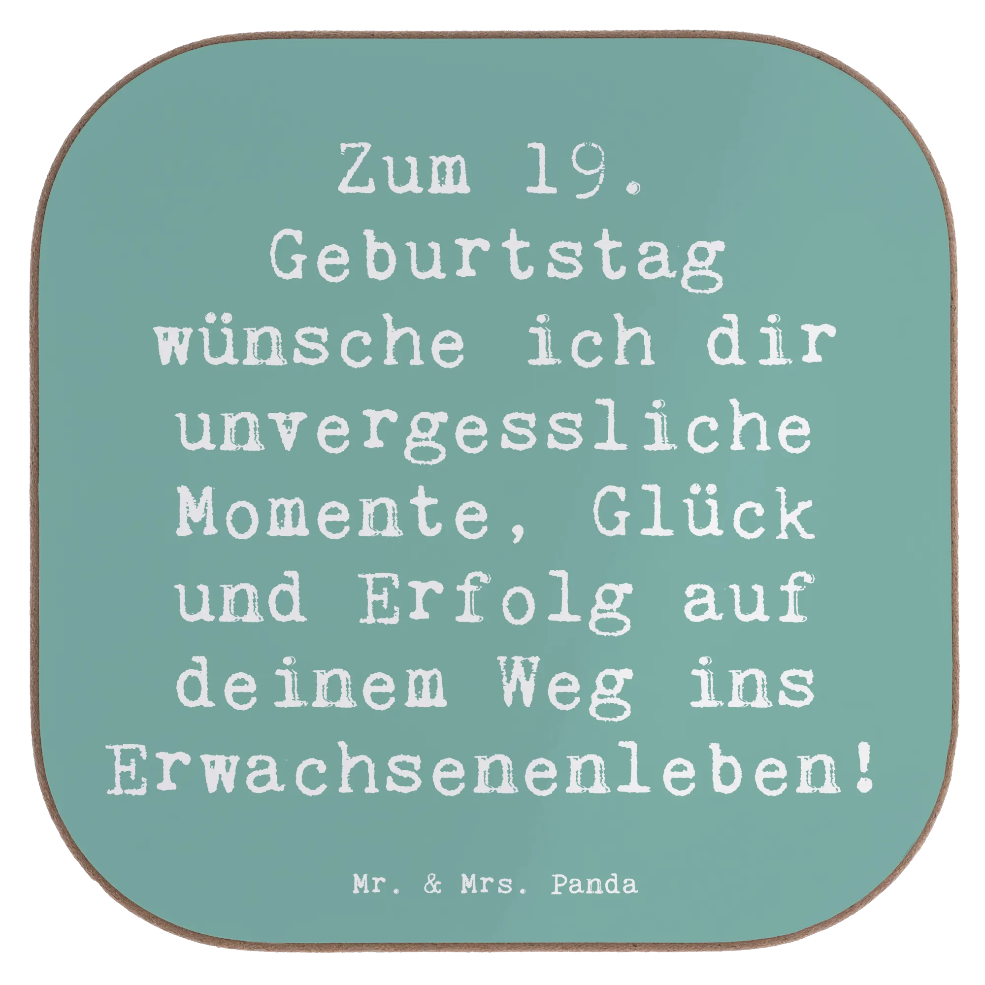 Square coaster Saying Zum 19. Geburtstag wünsche ich dir unvergessliche Momente, Glück und Erfolg auf deinem Weg ins Erwachsenenleben! - Sea Breeze