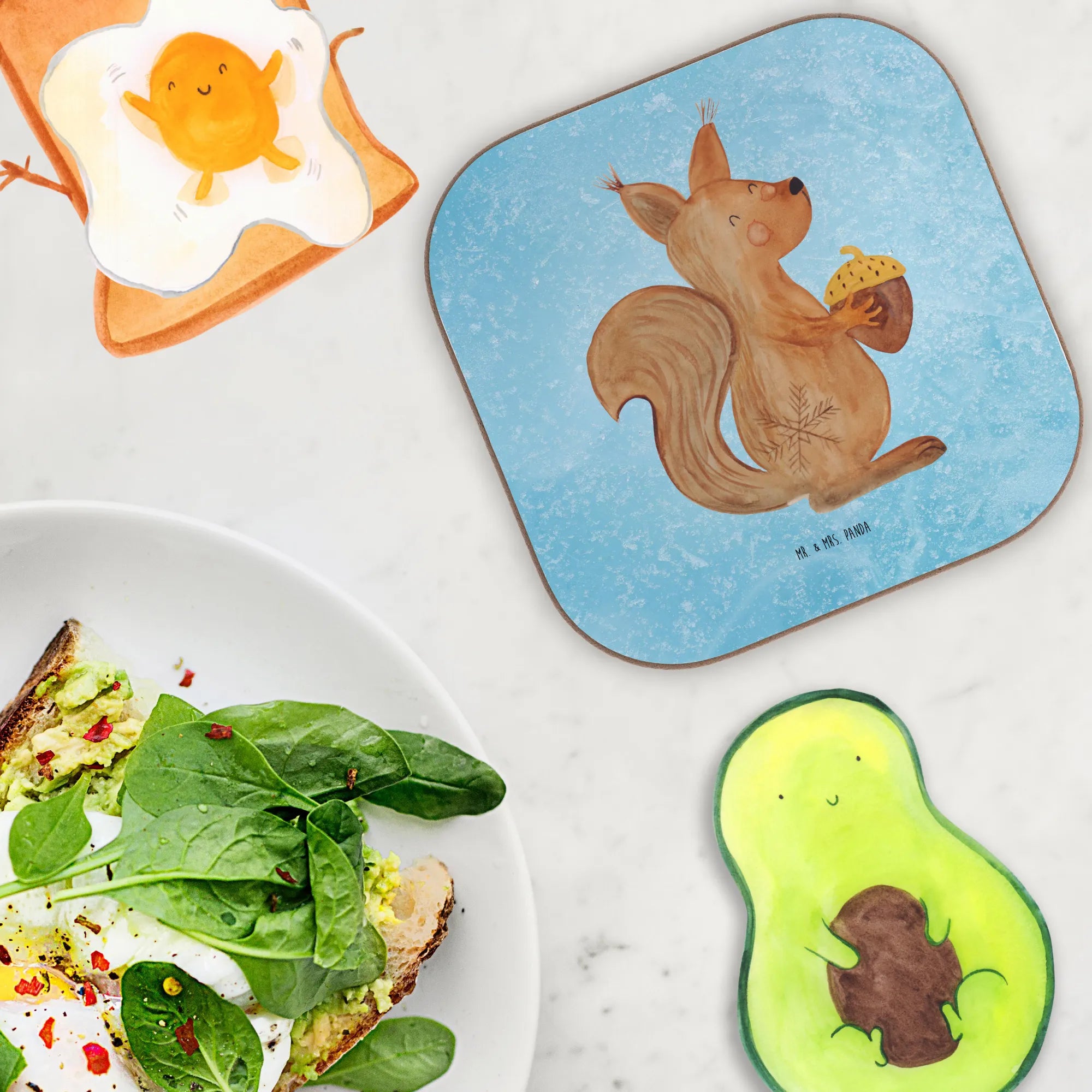 The Winter Collection from Mr. & Mrs. Panda comprises a carefully curated selection of enchanting motifs and quotes, all hand-drawn by Mrs. Panda herself. Each design brings the joys of winter to life, and our Squirrel Christmas coaster is no exception! It’s not just a coaster; it’s a conversation starter, a little piece of art that resonates the joy of Christmas time—complete with the scent of fresh cookies baking in the oven and snowflakes gently falling outside.