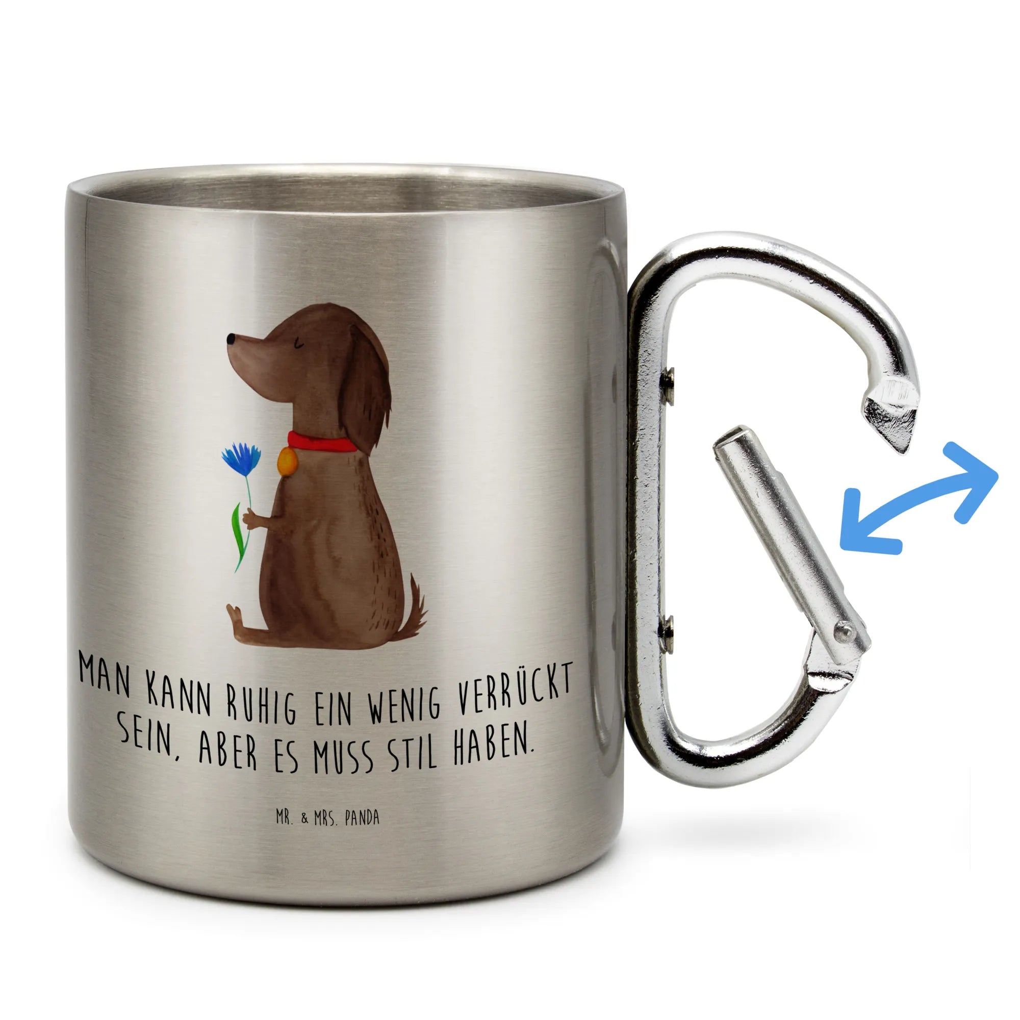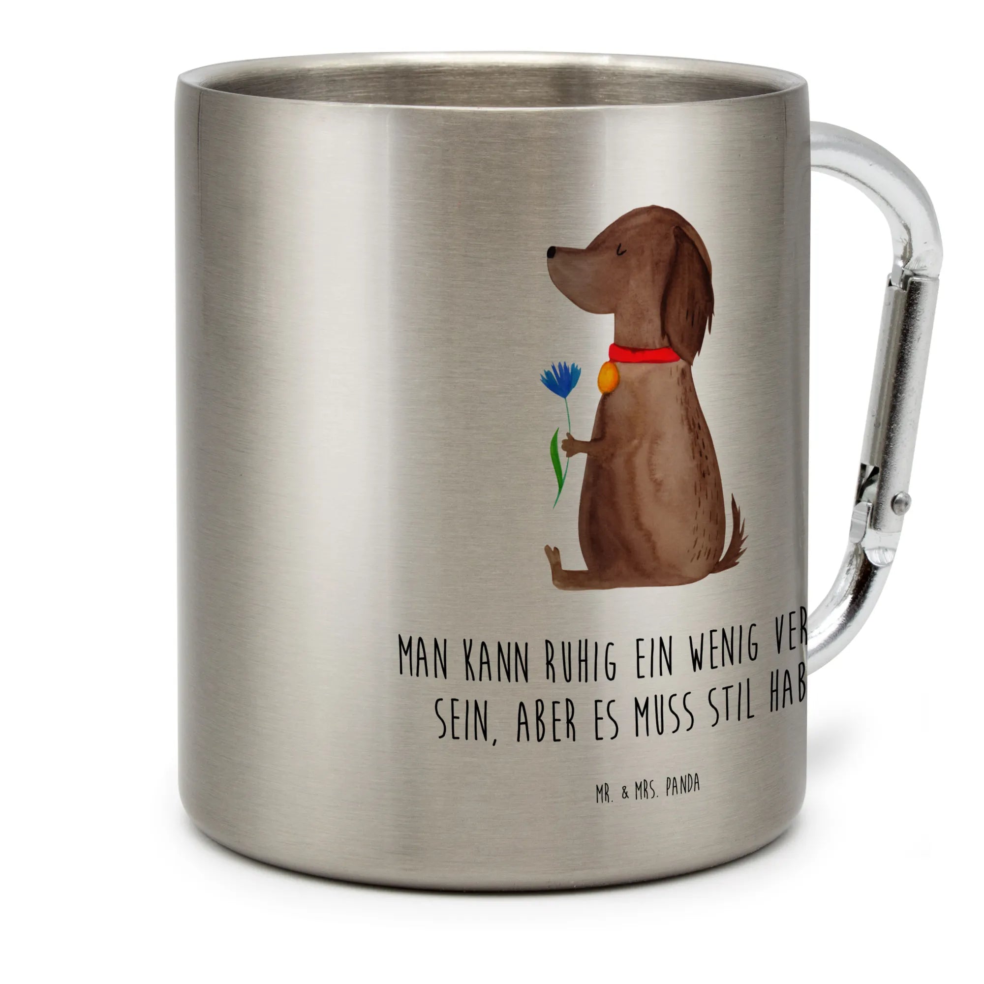 Looking for the perfect gift for the dog lover in your life? Look no further than the Stainless Steel Mug featuring an adorable dog with a flower from the charming Dog Collection by Mr. & Mrs. Panda!