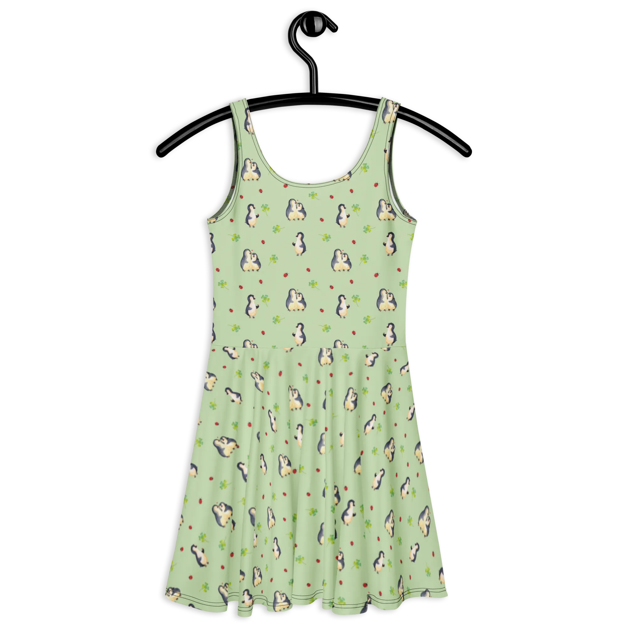 This stunning summer dress stands out with its vibrant colors and heartwarming motif of a cute penguin holding a ladybird on its flipper. Just imagine how this cheerful design can brighten up your day and the days of those around you. Whether you’re heading to a picnic in the park, enjoying a day at the beach, or simply lounging in your garden, this skater dress will infuse your sunny adventures with a sense of wonder.