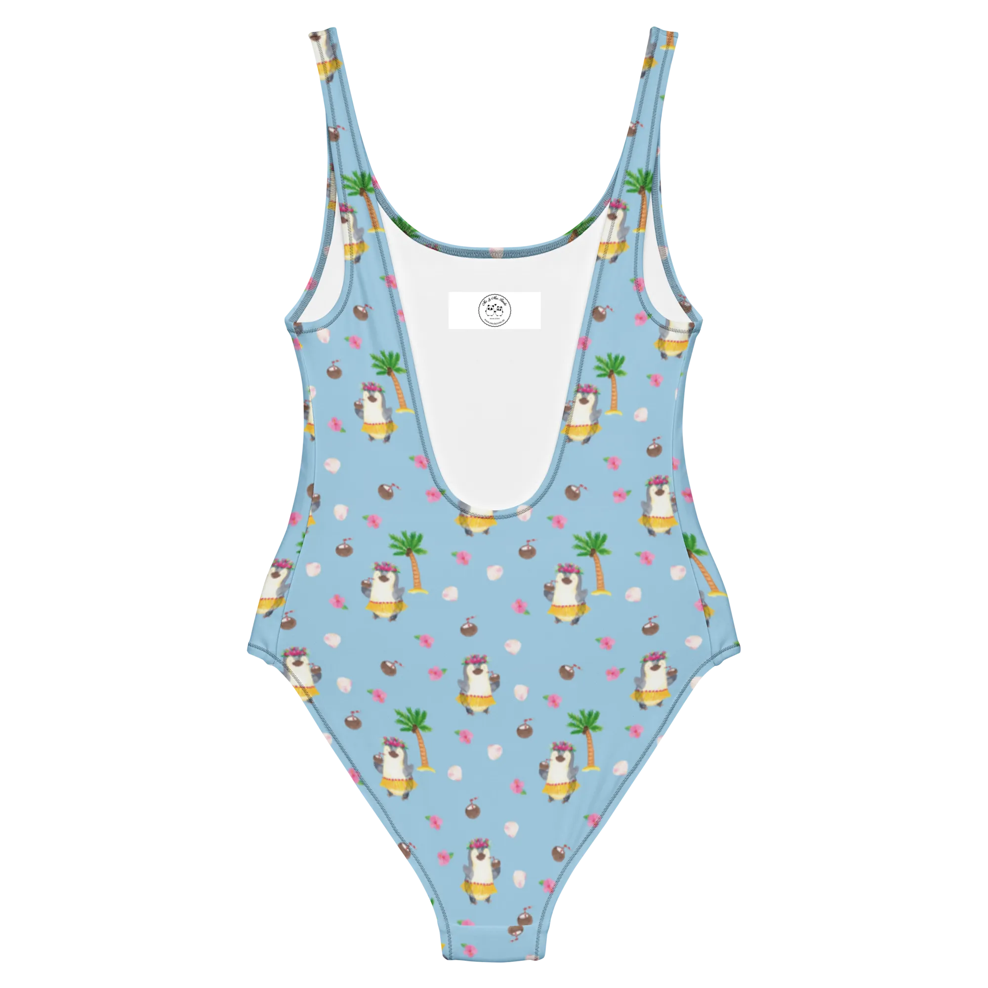 Imagine yourself wearing this adorable swimsuit while lounging poolside, feeling the sun's warmth kissing your skin. The charming design features a cheerful penguin holding a coconut drink, radiating pure joy and tropical vibes. It's not just a swimsuit; it’s a reminder to embrace life, enjoy the sunny moments, and spread happiness around just like our little penguin friend.