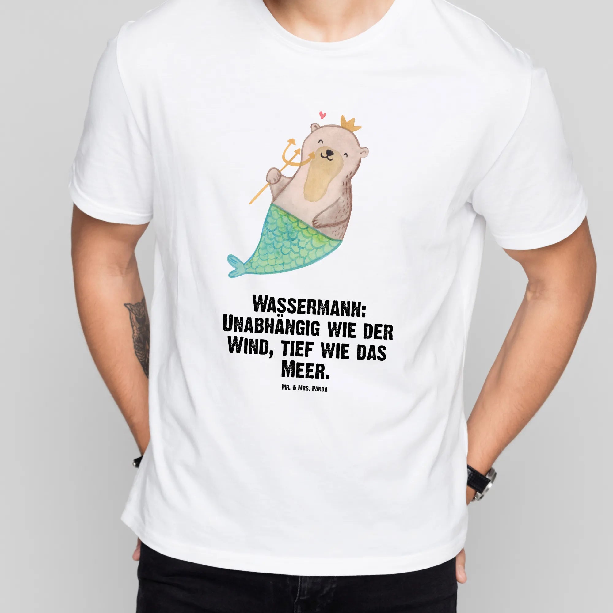 Welcome to the delightful universe of the Aquarius Astrology motif, where imagination and independence dance together. This whimsical illustration showcases a charming otter, crowned in elegance, embodying the heart of the Aquarius. With its serene expression and graceful mermaid tail in vibrant blues and greens, this piece is a testament to the depth and creativity that Aquarians bring to the world. The little heart floating above adds a sprinkle of love, making it ever so special. The motif’s saying, 'Wassermann: Unabhängig wie der Wind, tief wie das Meer,' perfectly reflects the essence of being an Aquarius. This enchanting design serves as an ideal birthday gift or cherished present for anyone celebrating this zodiac sign, encouraging them to embrace their uniqueness and find joy in their independence. Let this piece inspire you to swim freely through life, just like the spirited otter.