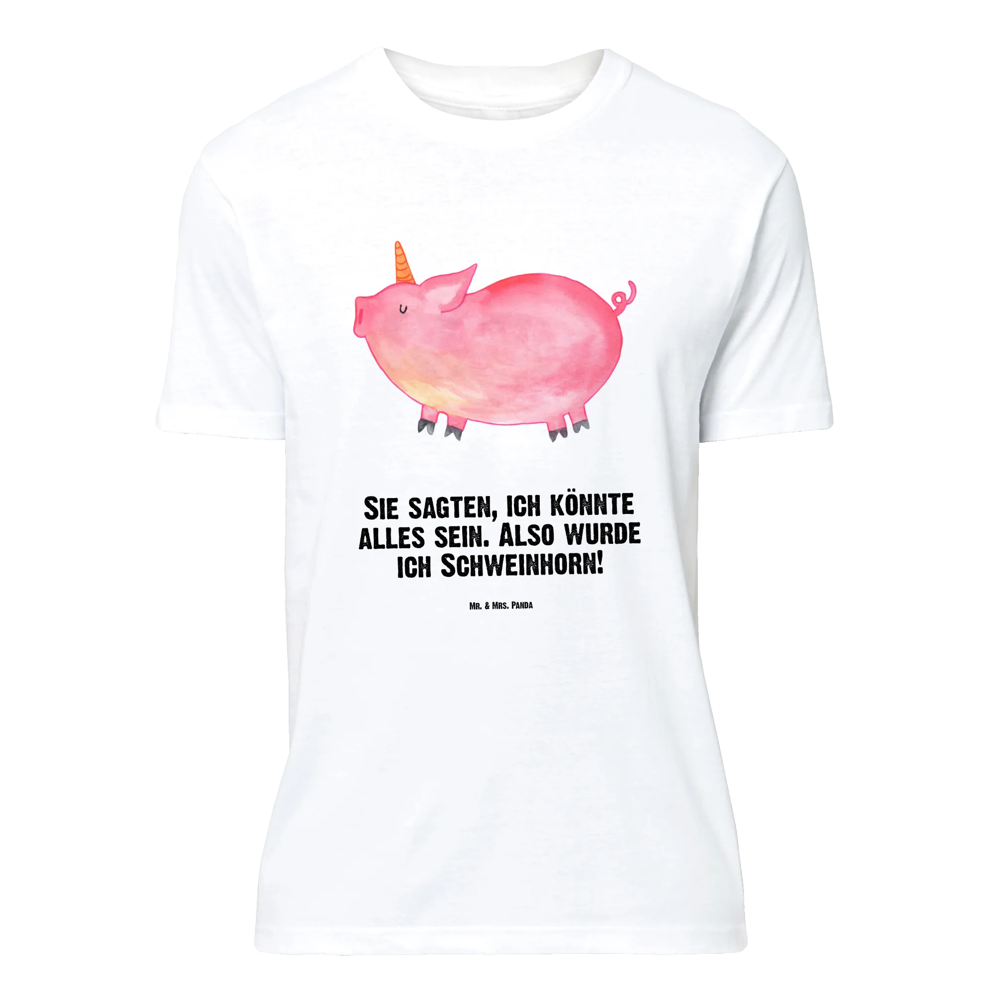 Perfektes Geschenk mit Humor: Du suchst ein Geschenk, das auffällt und gleichzeitig von Herzen kommt? Unser Größe M T-Shirt „Einhorn Schweinhorn" aus der Einhorn - Kollektion von Mr. & Mrs. Panda ist eine wunderbare Wahl. Das Motiv zeigt ein niedliches Schwein mit Einhornhorn und den frechen Spruch „Sie sagten, ich könnte alles sein. Also wurde ich Schweinhorn!" – ein Hingucker auf jeder Party.