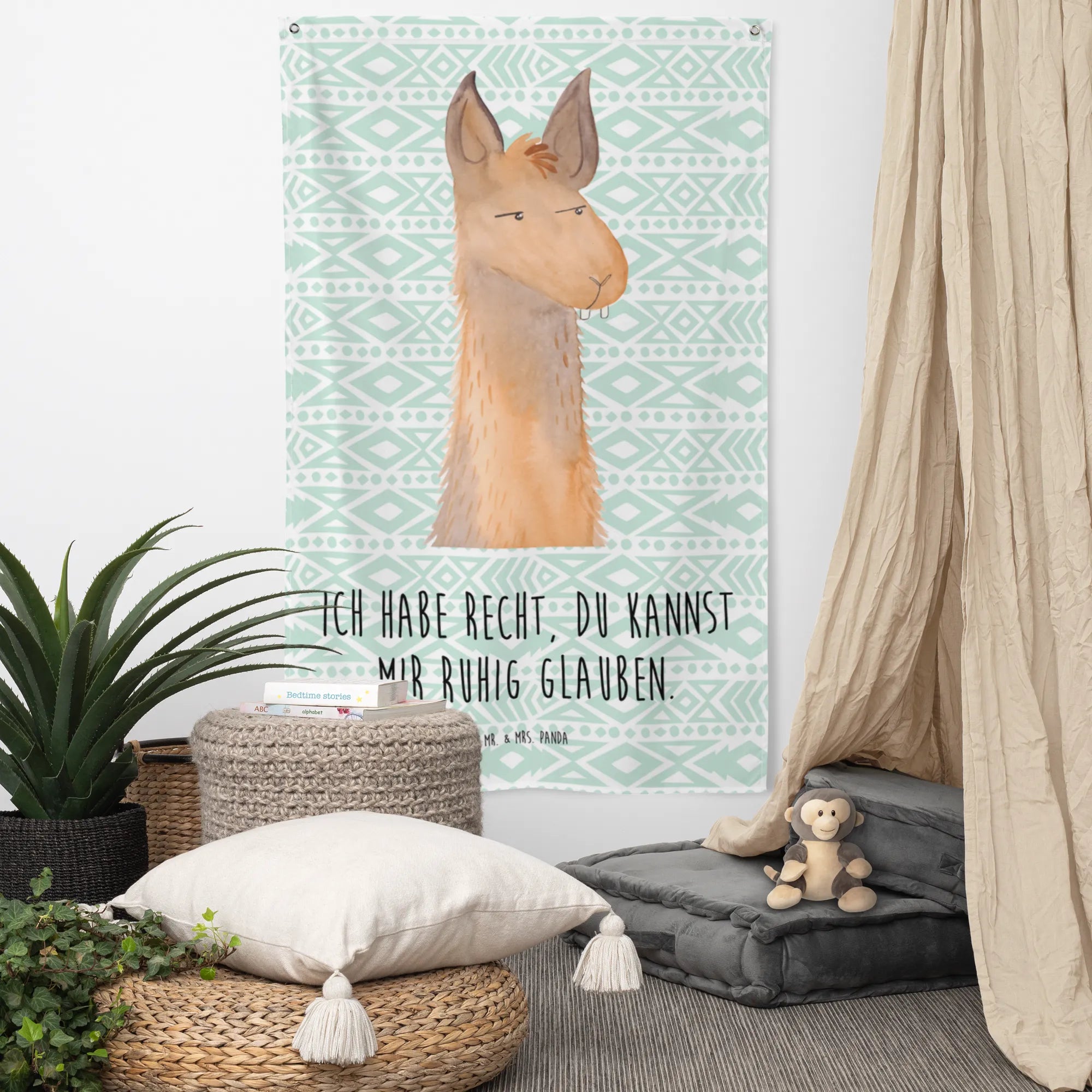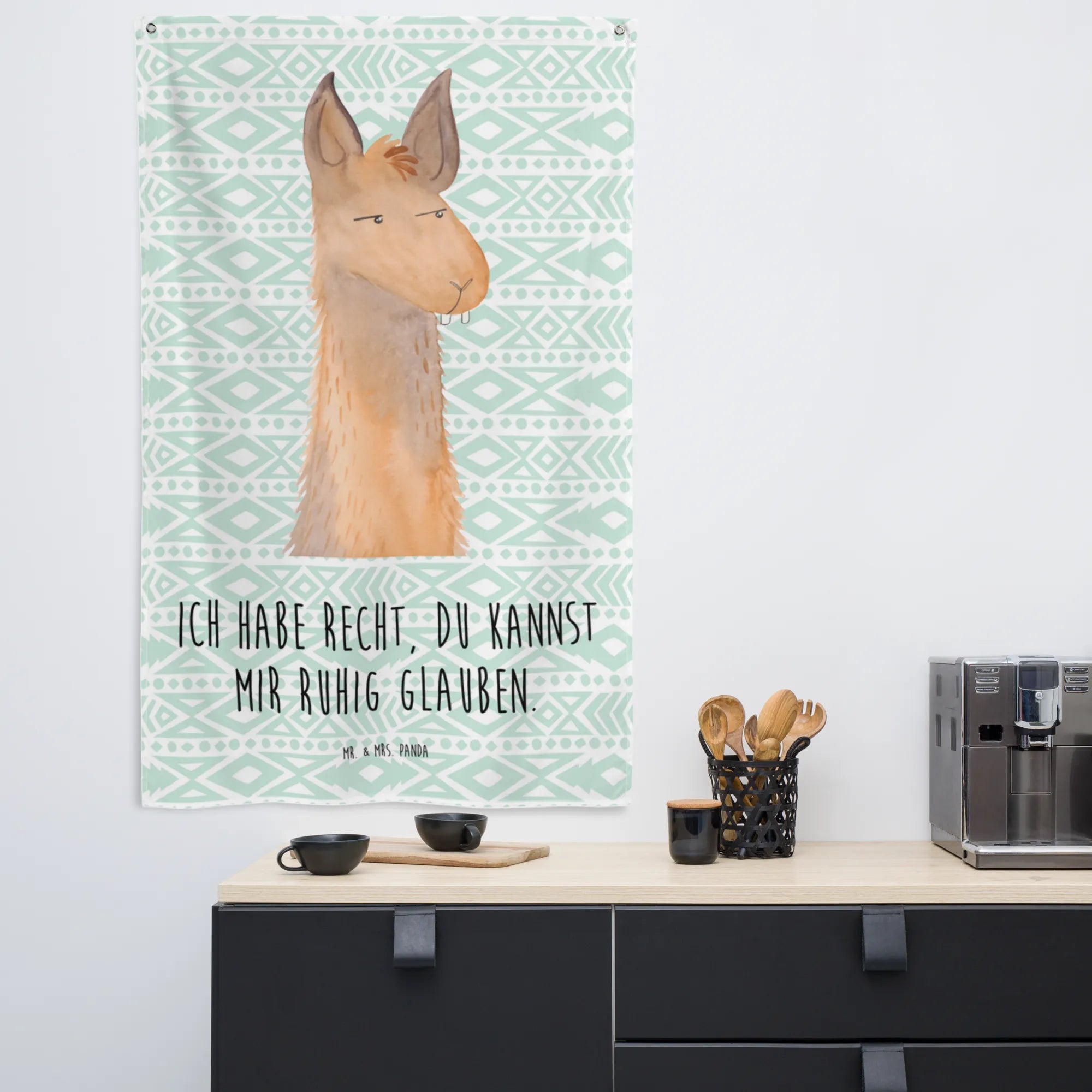 Schaffe ein gemütliches Zuhause mit dem charmanten Wandteppich von Mr. & Mrs. Panda! Mit den Maßen 1500 mm x 900 mm x 5 mm bietet dieser hochwertige Wandteppich eine tolle Möglichkeit, deine Wände zu dekorieren. Hergestellt aus langlebiger Kunstfaser, ist er mit wunderschön bedruckten Sprüchen und niedlichen Motiven versehen, die dein Zuhause aufhellen. Ideal für das Wohnzimmer, das Kinderzimmer oder auch als Blickfang im Gästezimmer. Seine super leuchtenden Farben verleihen jedem Raum eine besondere Note. Der Teppich hat einen einseitigen Druck und einen doppelten Faltsaum, wodurch er äußerst praktisch ist. Zudem ist er knitterfrei und kann problemlos bei maximal 30 °C in der Waschmaschine gewaschen werden, was dir die Pflege erleichtert. Die 2 stabilen Eisenösen bieten einen einfachen Aufhängeprozess. Lass dir diesen einzigartigen Wandteppich nicht entgehen!