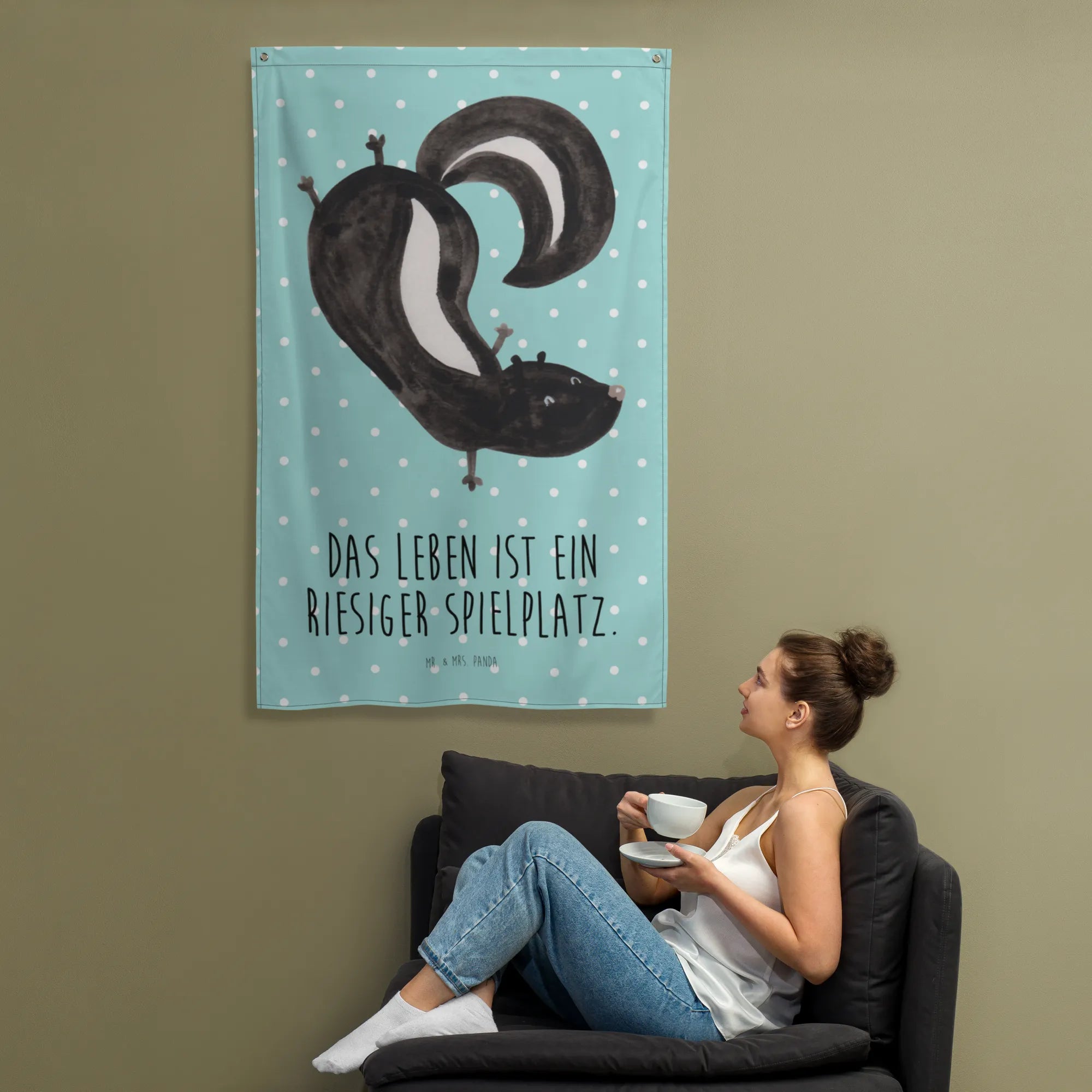 Mache dein Zuhause zu einem Ort der Inspiration mit dem Wandteppich von Mr. & Mrs. Panda! Dieser wunderschöne Wandteppich hat die Maße 1500 mm x 900 mm x 5 mm und ist aus strapazierfähiger Kunstfaser gefertigt. Für jeden Raum ist dieser Teppich ideal geeignet und bietet eine fantastische Auswahl an Sprüchen und Motiven, die das Herz höher schlagen lassen. Die lebhaften Farben machen jeden Raum fröhlicher und einladender. Der einseitige Druck und der doppelte Faltsaum sorgen dafür, dass dein neuer Wandteppich nicht nur schön aussieht, sondern auch praktisch ist. Keine Falten und einfach zu reinigen – er kann bei bis zu 30 °C in der Waschmaschine gewaschen werden. Die 2 stabilen Eisenösen ermöglichen ein unkompliziertes Aufhängen, sodass du sofort Freude daran haben kannst. Lass deinem Raum einen individuellen Charakter verleihen!