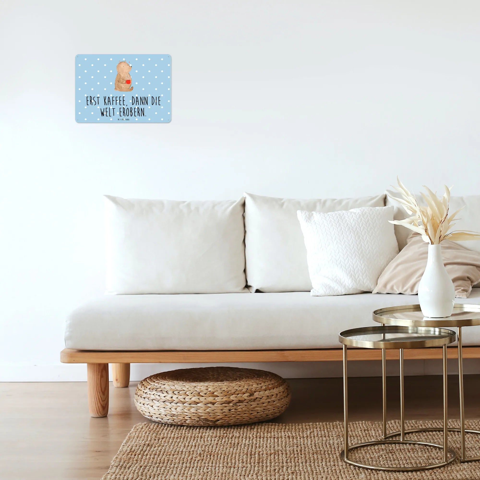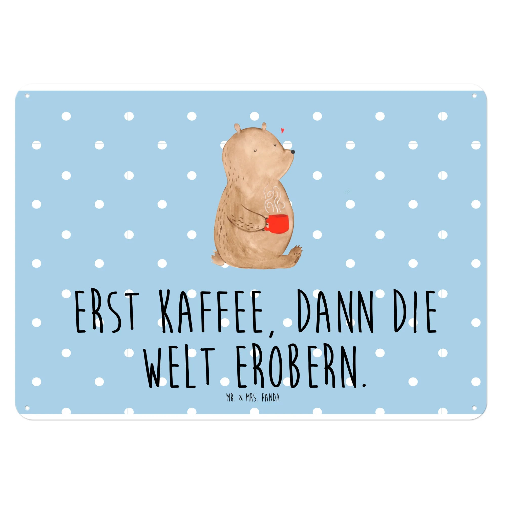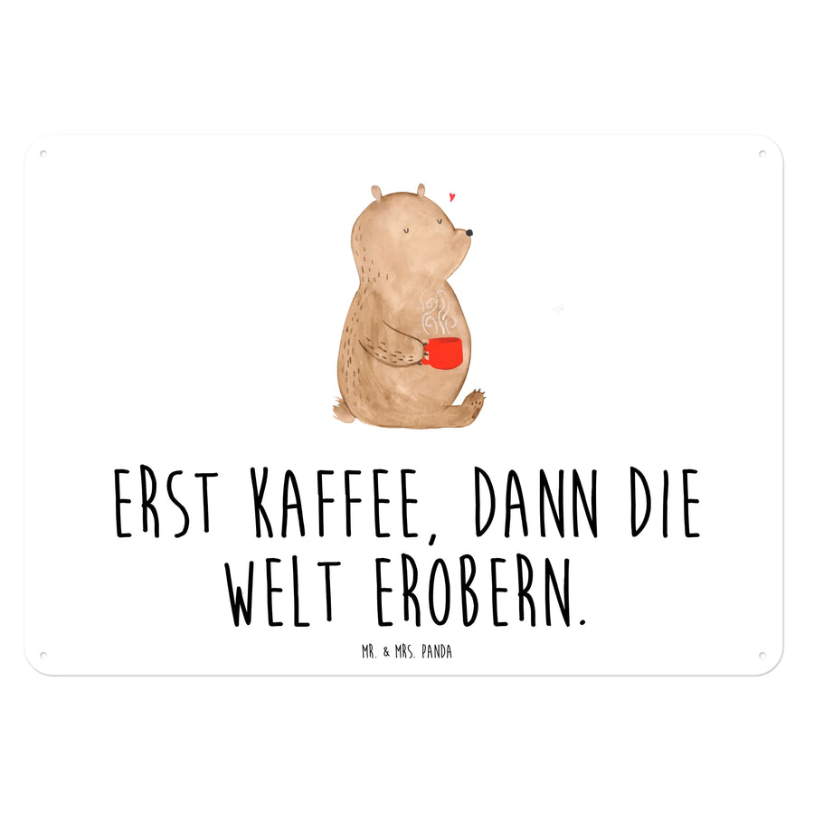 Du suchst nach dem perfekten Geschenk für Bärenliebhaber oder Kaffeeenthusiasten? Dann ist das Blechschild "Erst Kaffee, dann die Welt erobern" von Mr. & Mrs. Panda genau das Richtige für dich! Dieses bezaubernde Metallschild zeigt einen süßen Bären, der mit einem zufriedenen Lächeln seine Tasse Kaffee genießt. Es bringt nicht nur Freude in den Alltag, sondern motiviert dazu, morgens energiegeladen in den Tag zu starten.