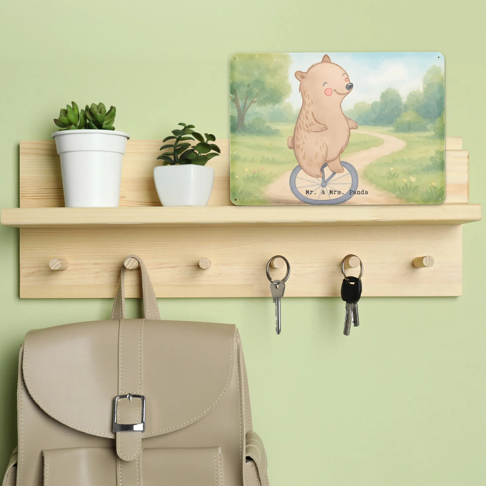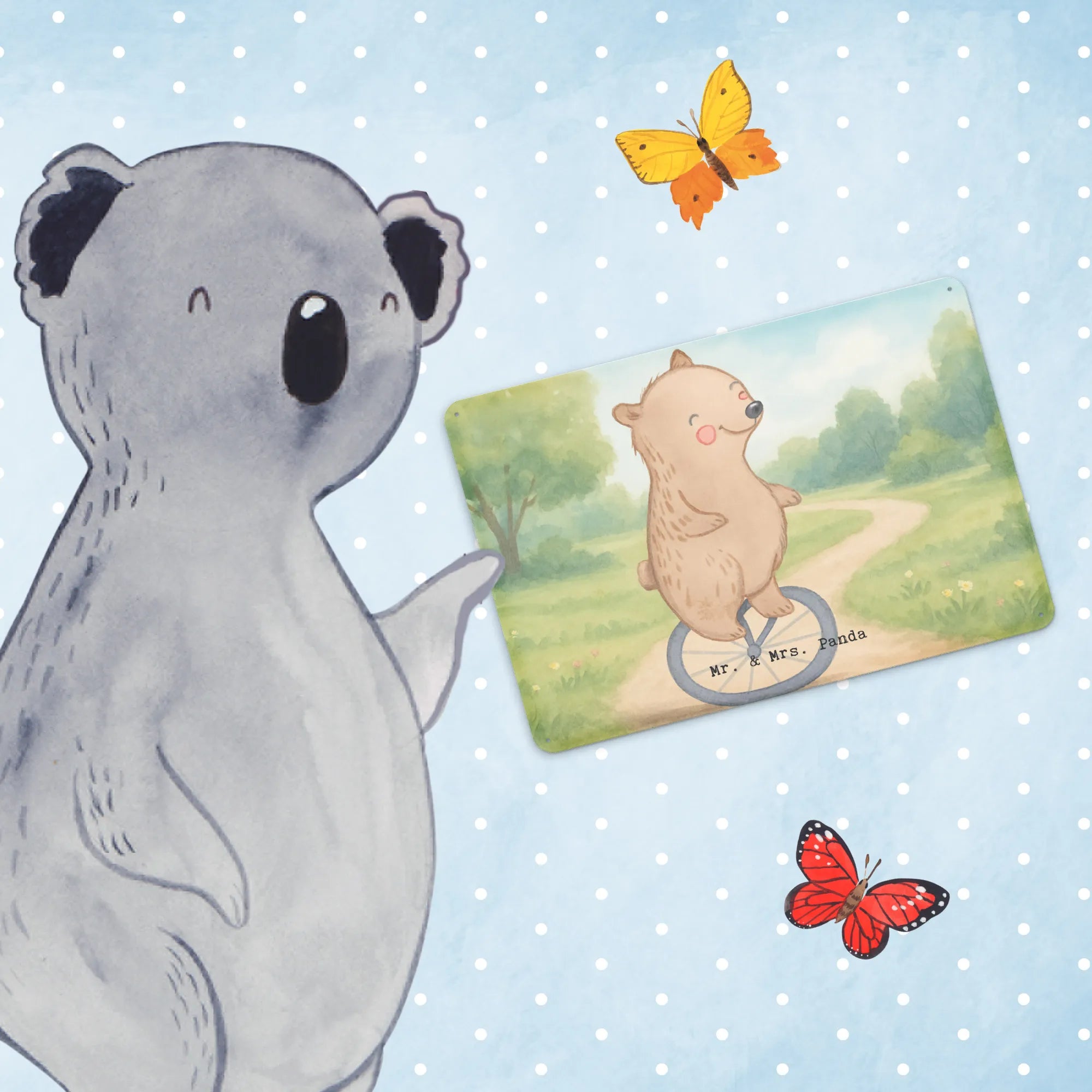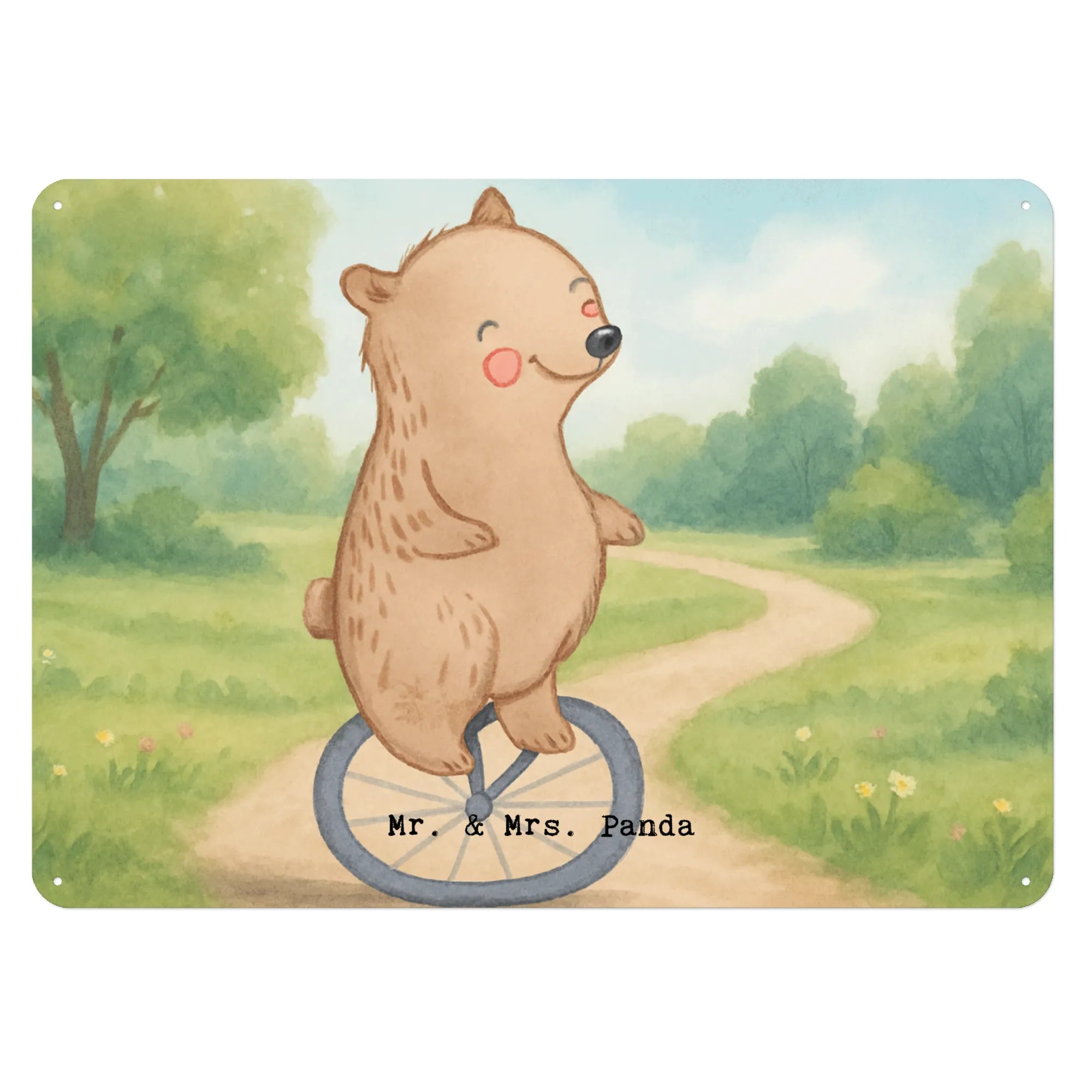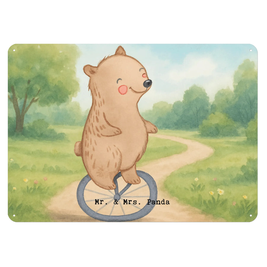 Tin sign bear ride a unicycle Design Gift, giving, thank you, award, profit, athlete, ride a unicycle