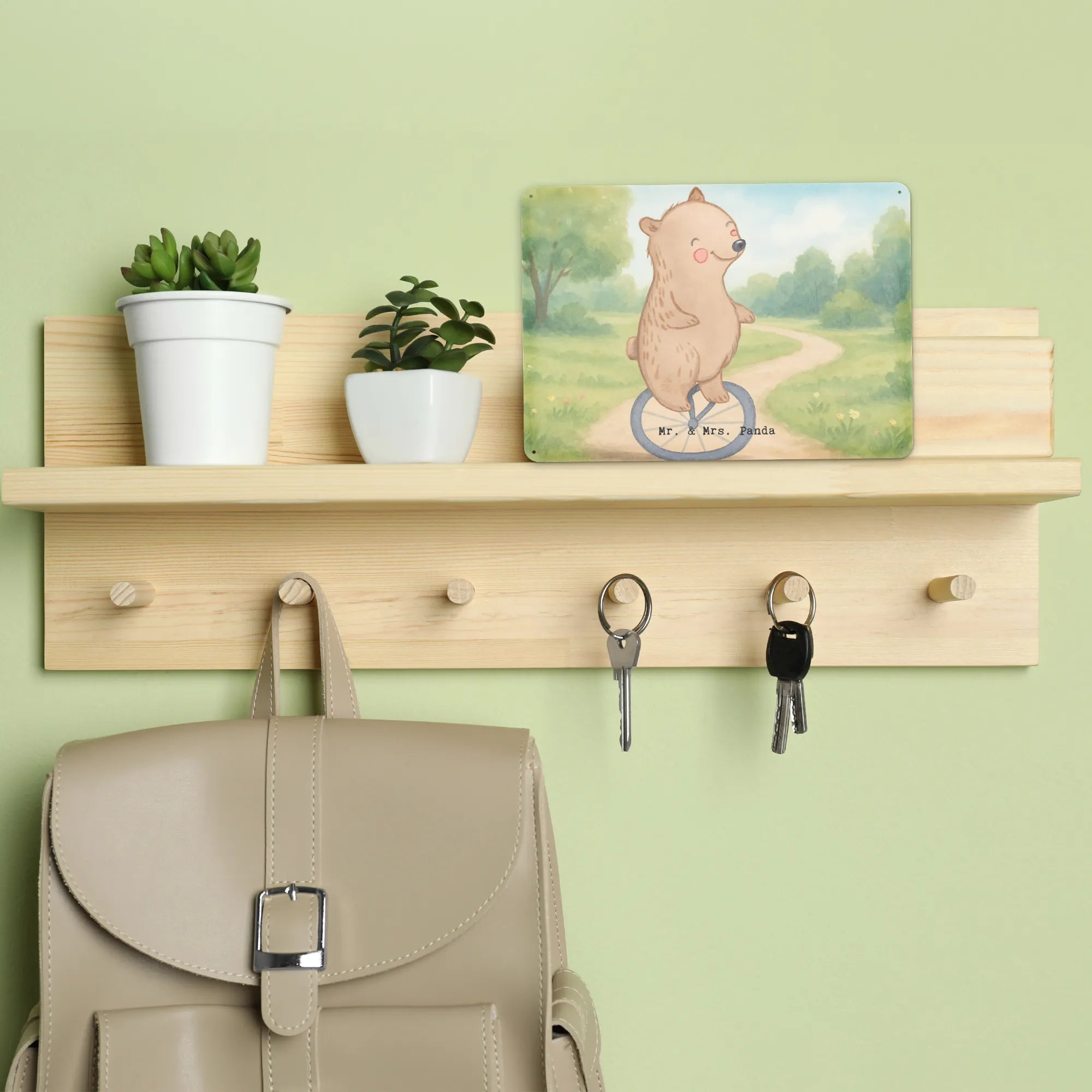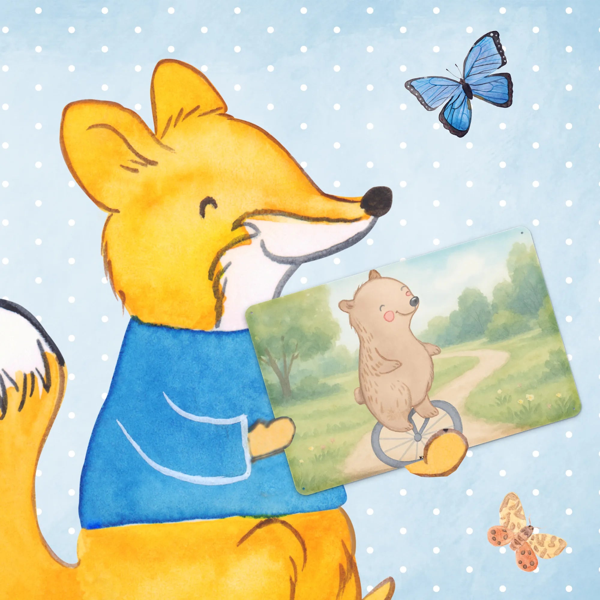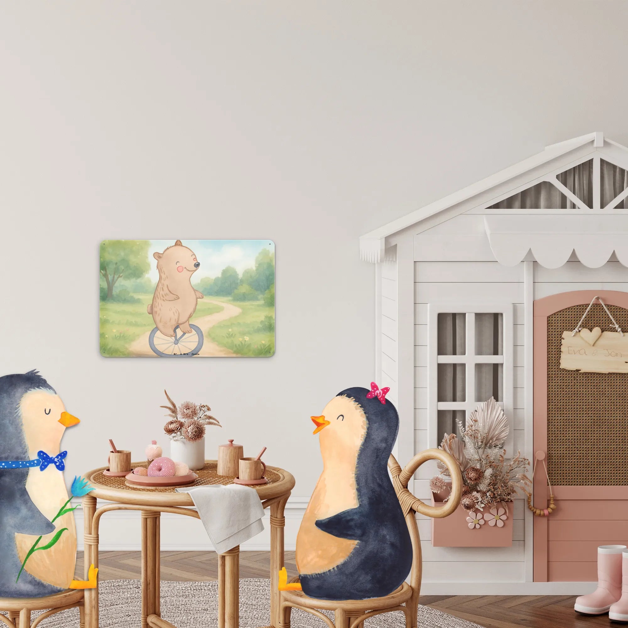 Tin sign bear ride a unicycle Design Gift, giving, thank you, award, profit, athlete, ride a unicycle