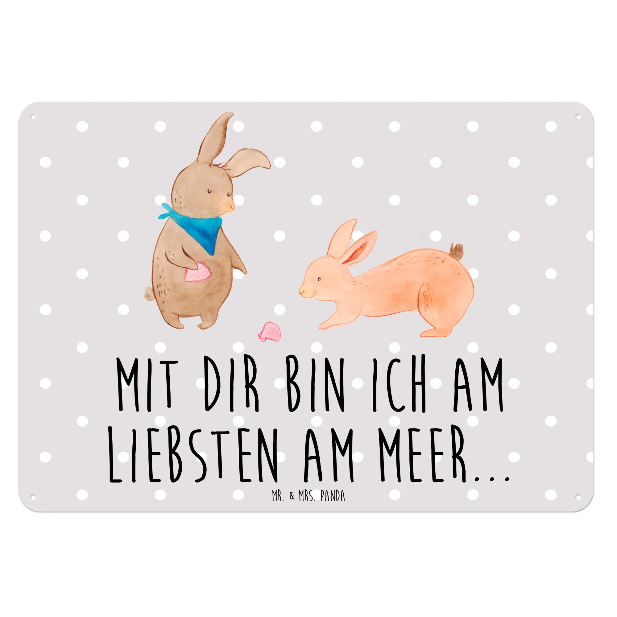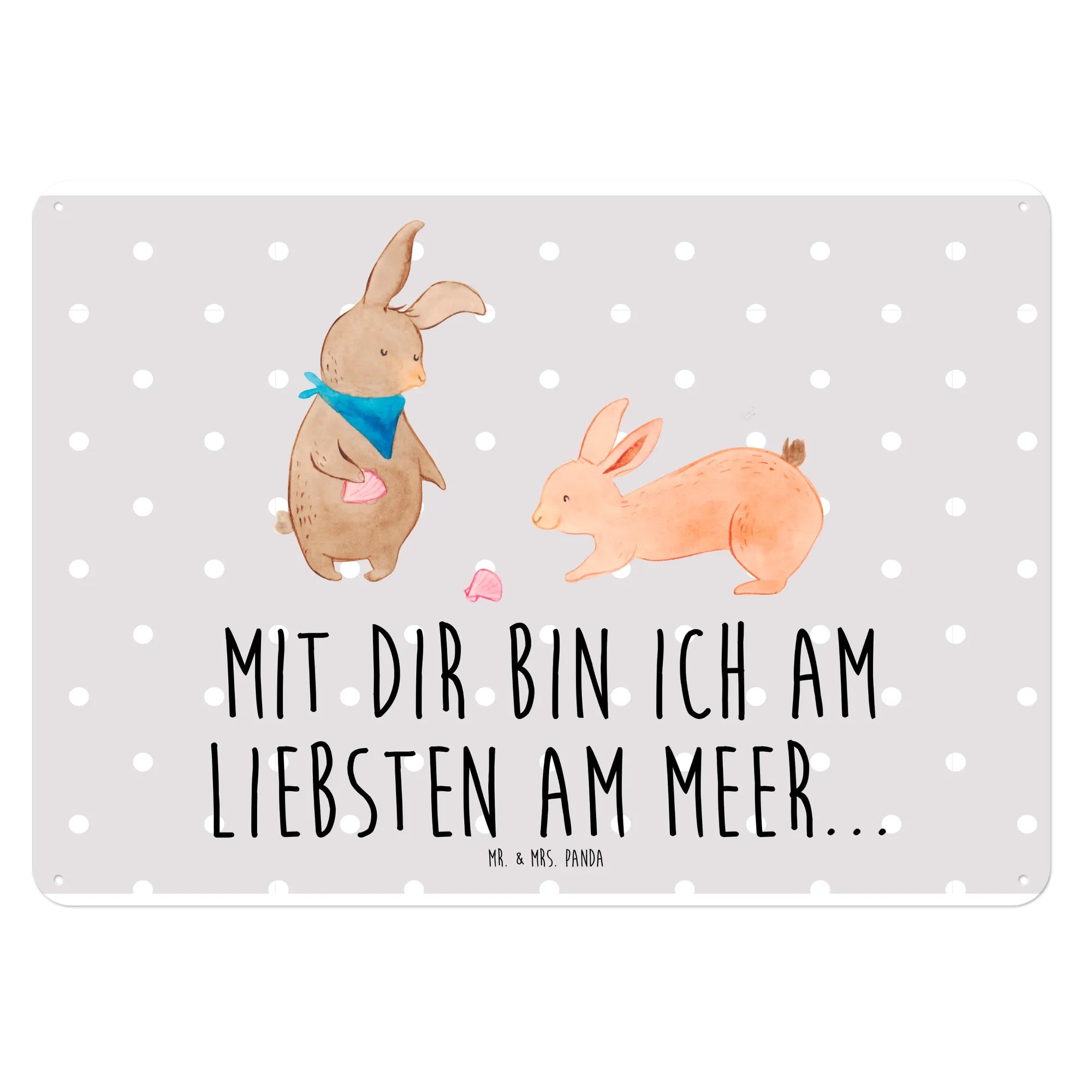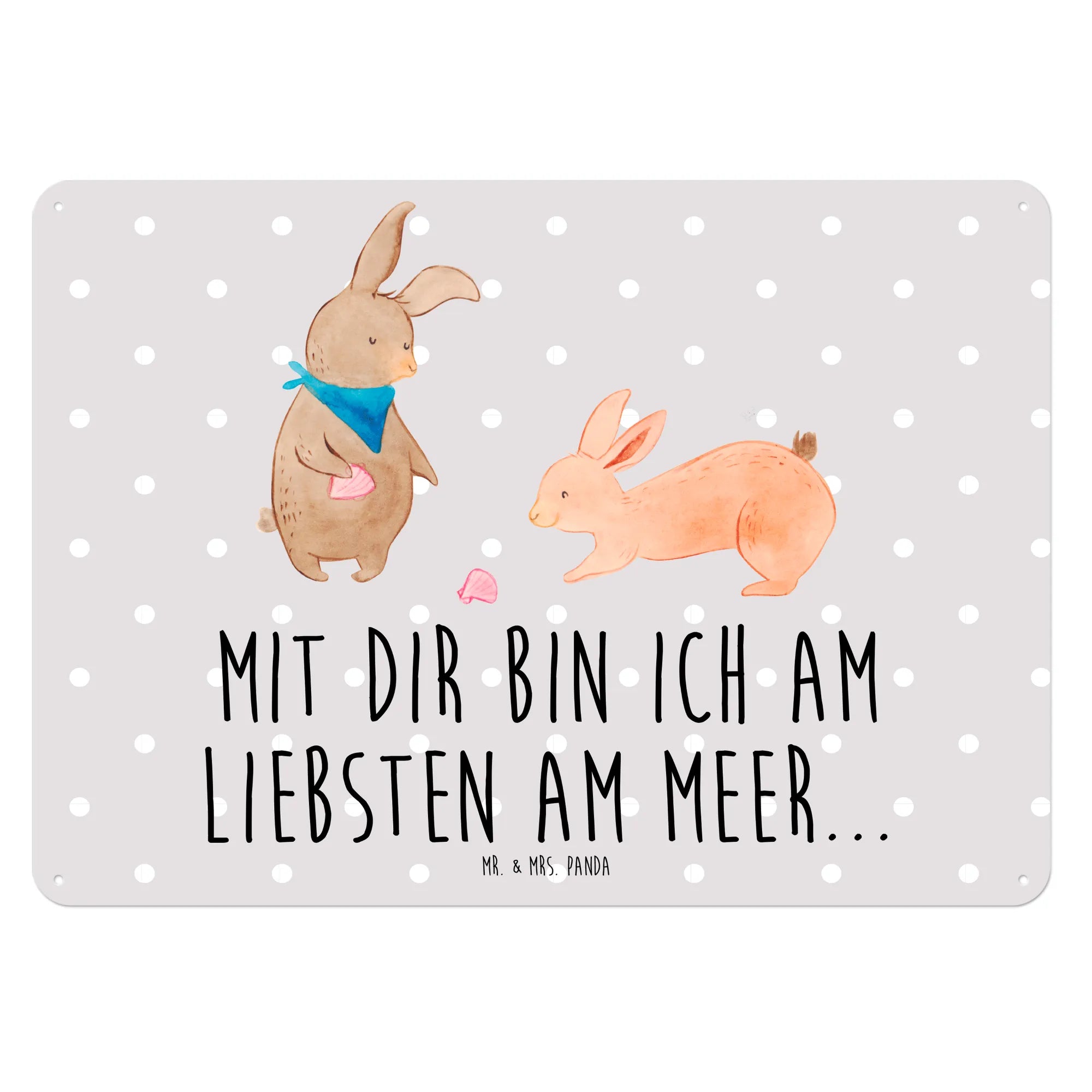 Tin sign Bunnies with seashell - DIN A3 - Grey Pastel