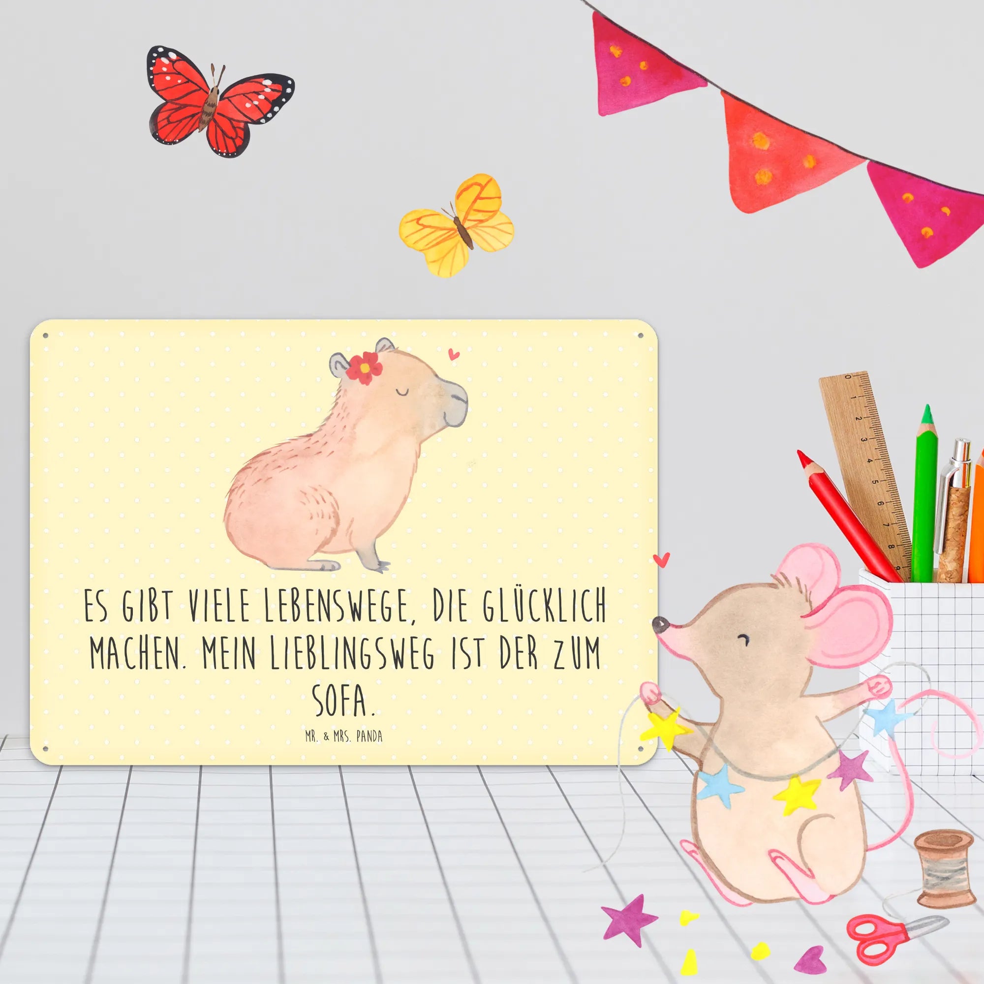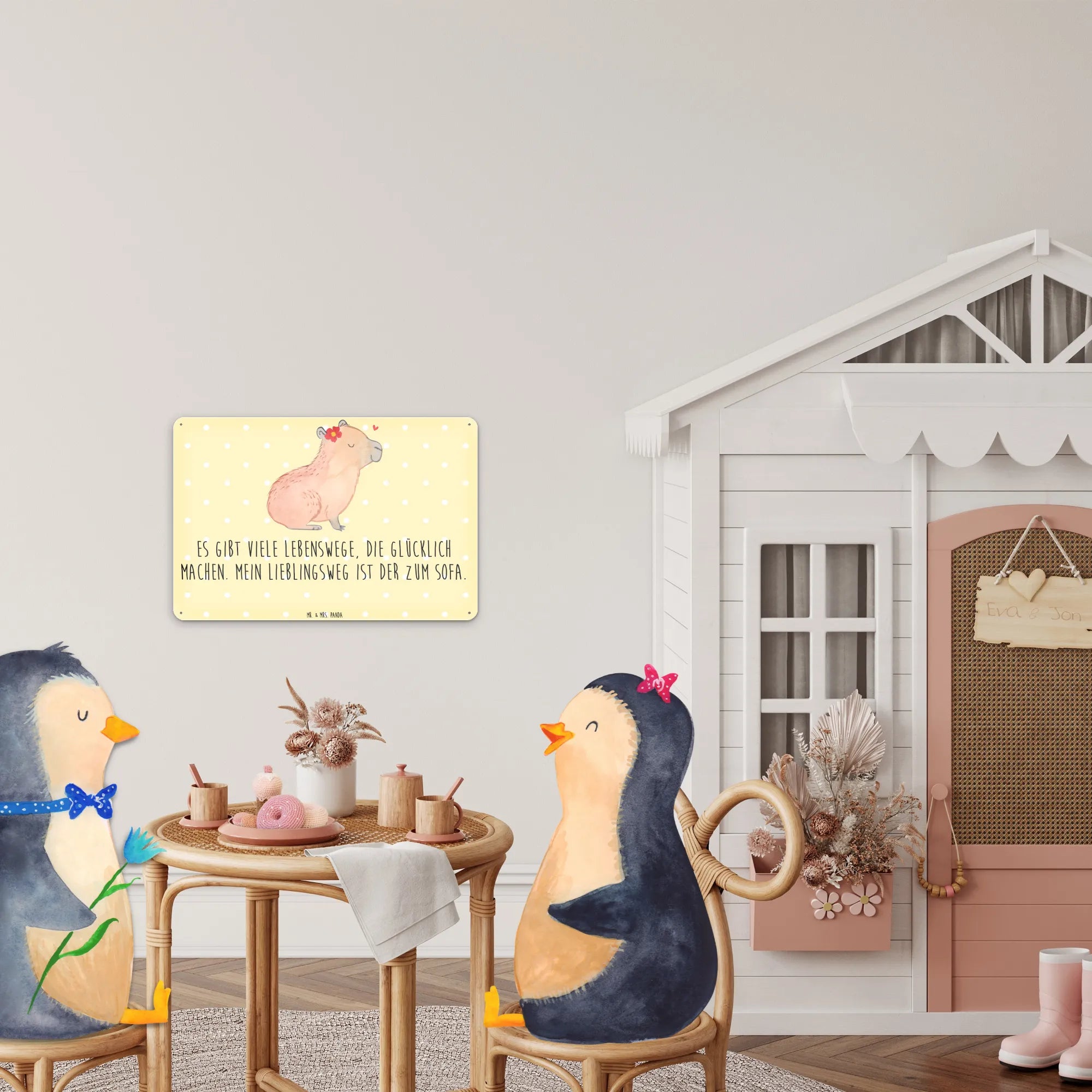 Add a whimsical flair to your home decor with Mr. & Mrs. Panda's adorable tin sign! Measuring 146 mm x 420 mm x 297 mm (6 inch x 17 inch x 12 inch), this elegant sign is made from high-quality steel and features enchanting quotes and playful motifs. Perfect for brightening up your indoor spaces, it makes a charming addition to doors and walls alike. Seeking the perfect gift? This delightful sign is sure to impress anyone with a sense of humor and a love for unique decor! With a silky matte finish, it looks sophisticated, while the four pre-drilled holes facilitate easy hanging. Cleaning is a breeze—just wipe it with a damp cloth! With rounded corners and folded edges, this sign is not only adorable but also safe for any environment. Plus, it's available in various sizes, ensuring you find the perfect fit for your space.