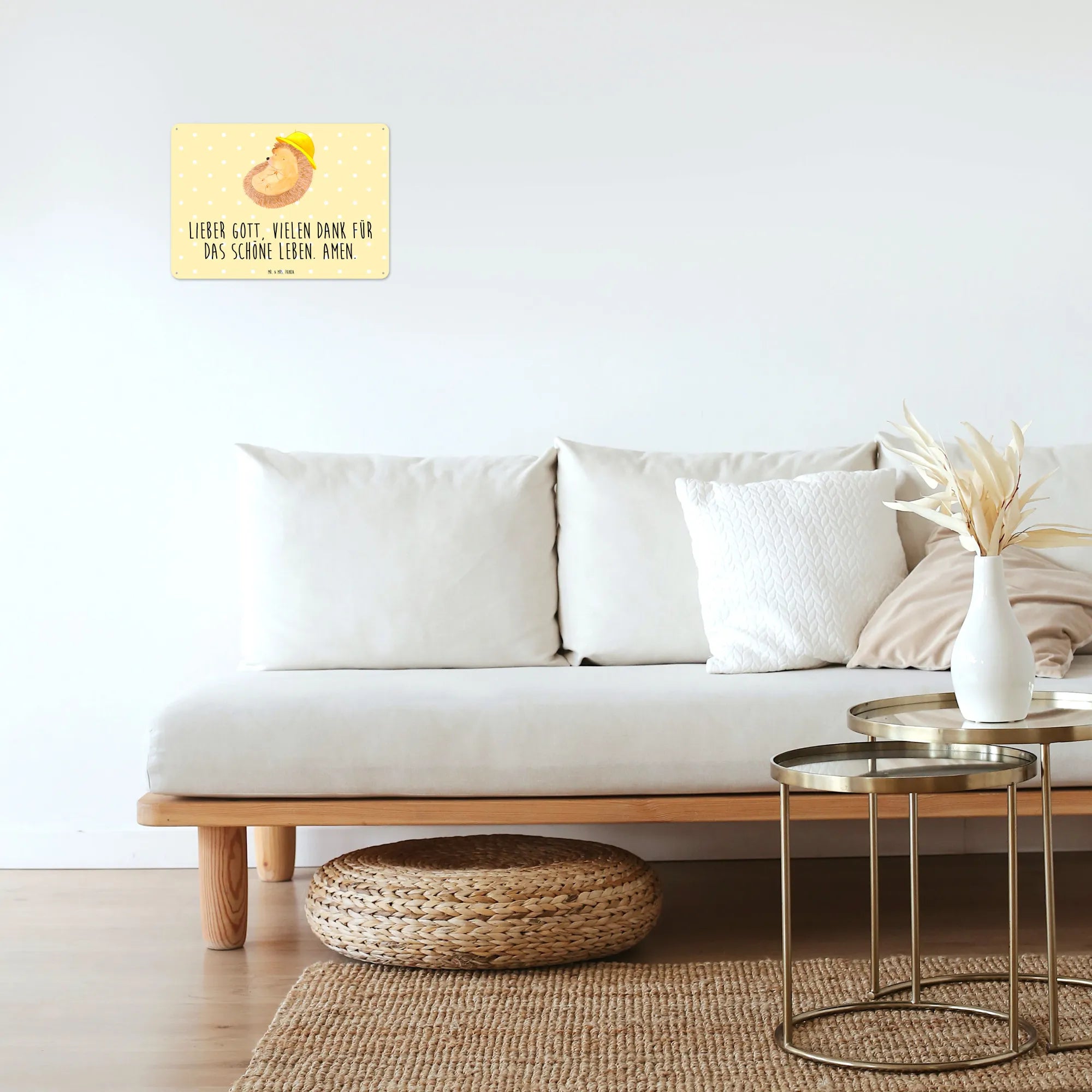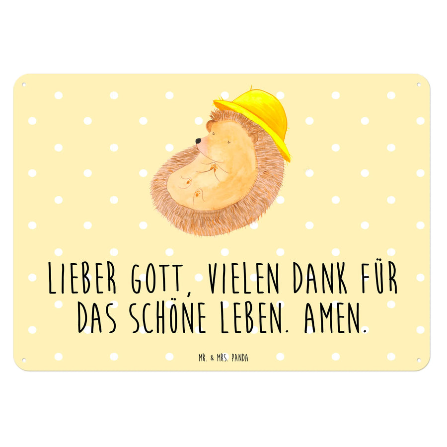 Tin sign Hedgehog Pray - DIN A3 - Yellow Pastel