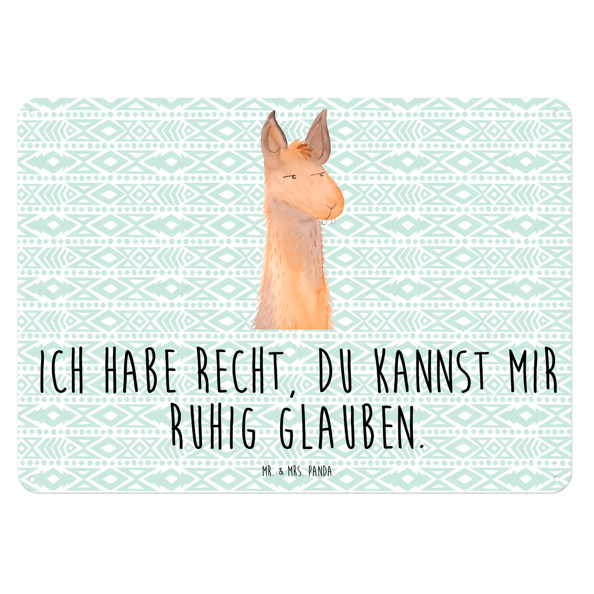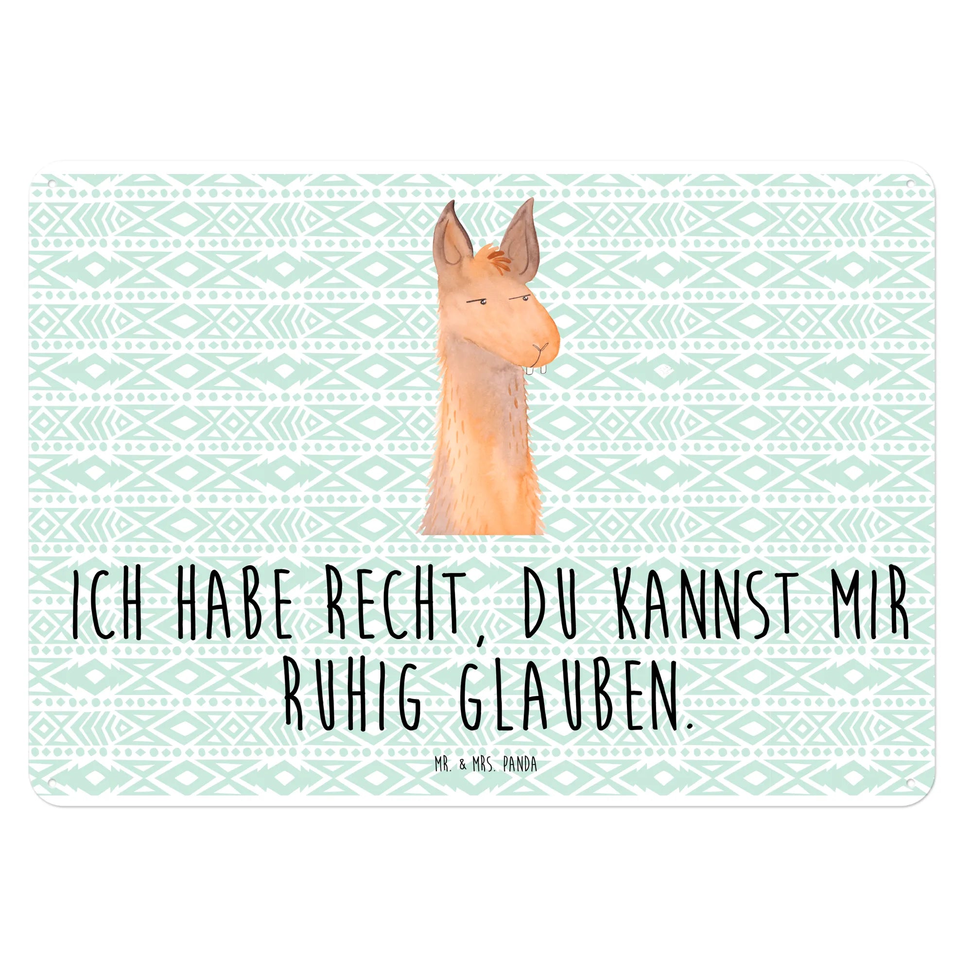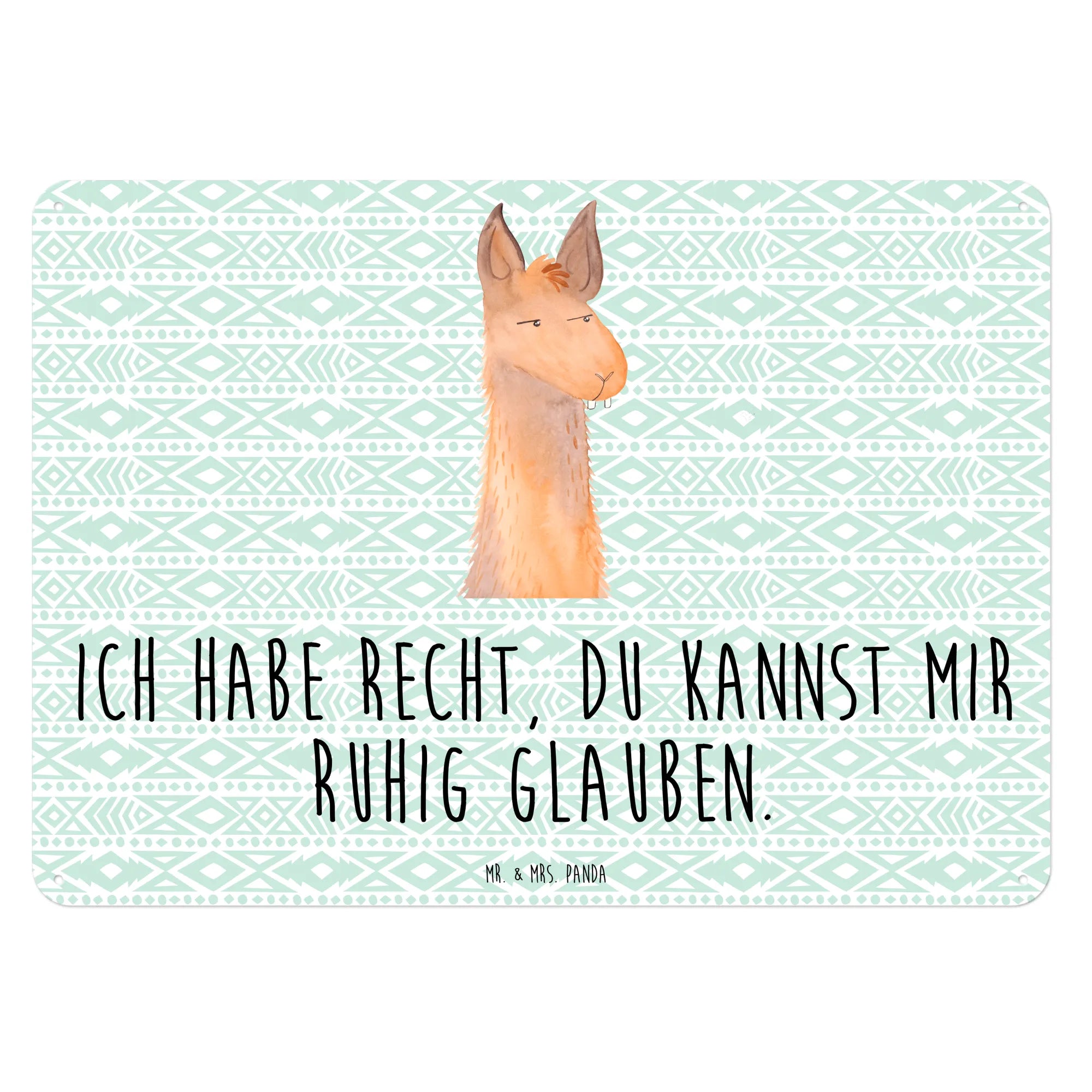 Tin sign llama head Annoyed - DIN A3 - Aztec Blue