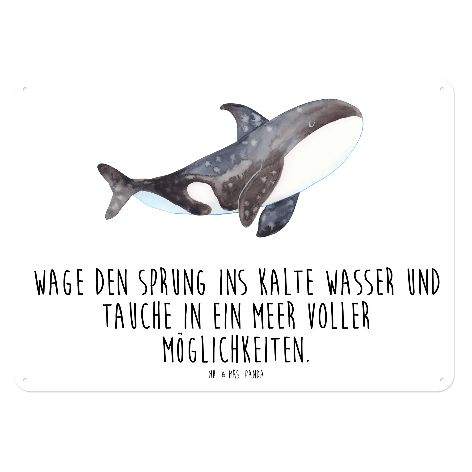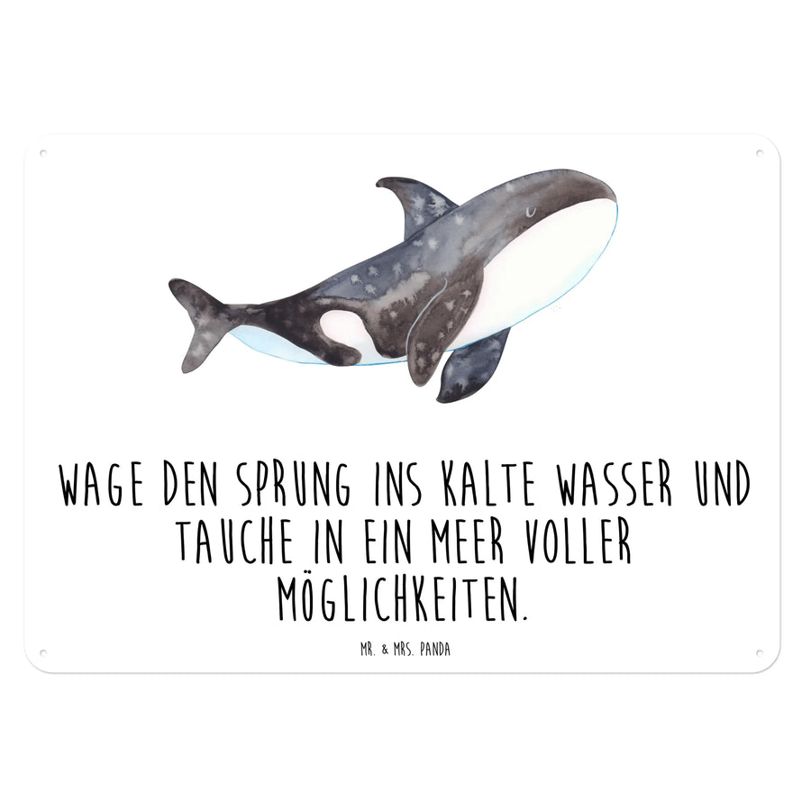 Das wunderschöne Blechschild mit dem imposanten Orca aus der Mr. & Mrs. Panda Meerestiere Kollektion ist die perfekte Dekoration für jedes Zuhause. Egal, ob Du es im Büro, im Wohnraum oder im Badezimmer aufhängst, es verbreitet sofort gute Laune und die nötige Motivation für jeden Tag.