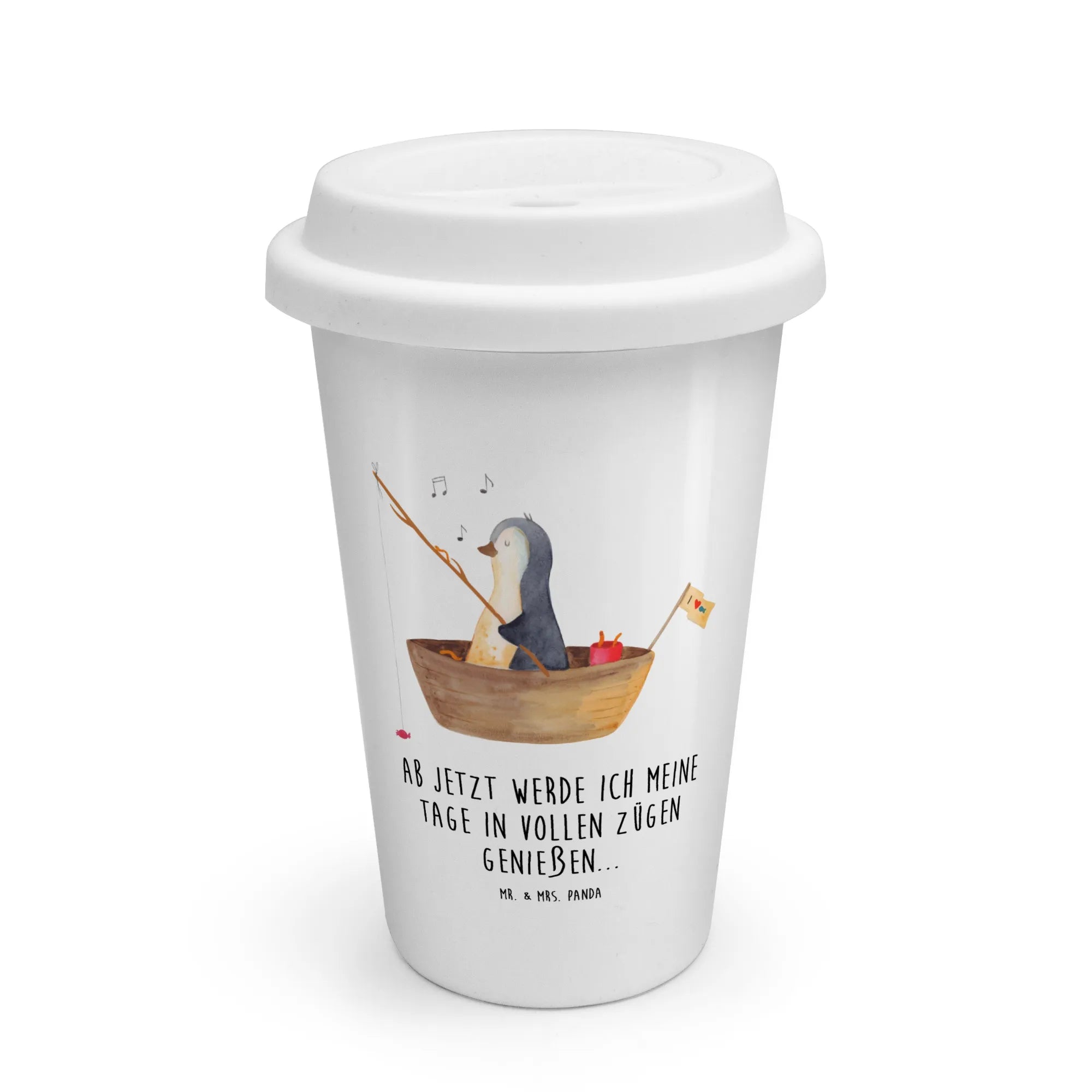 To Go Cup Penguin fishing boat - with a saying