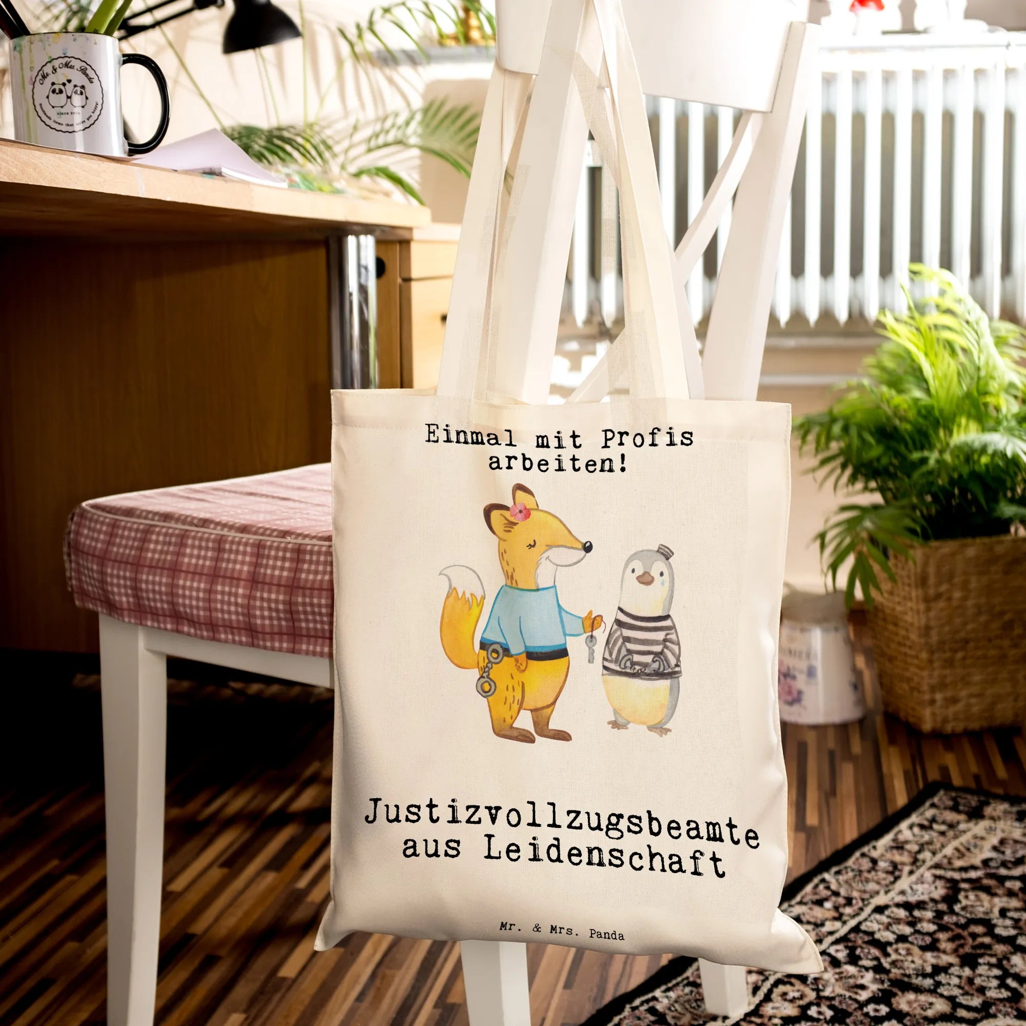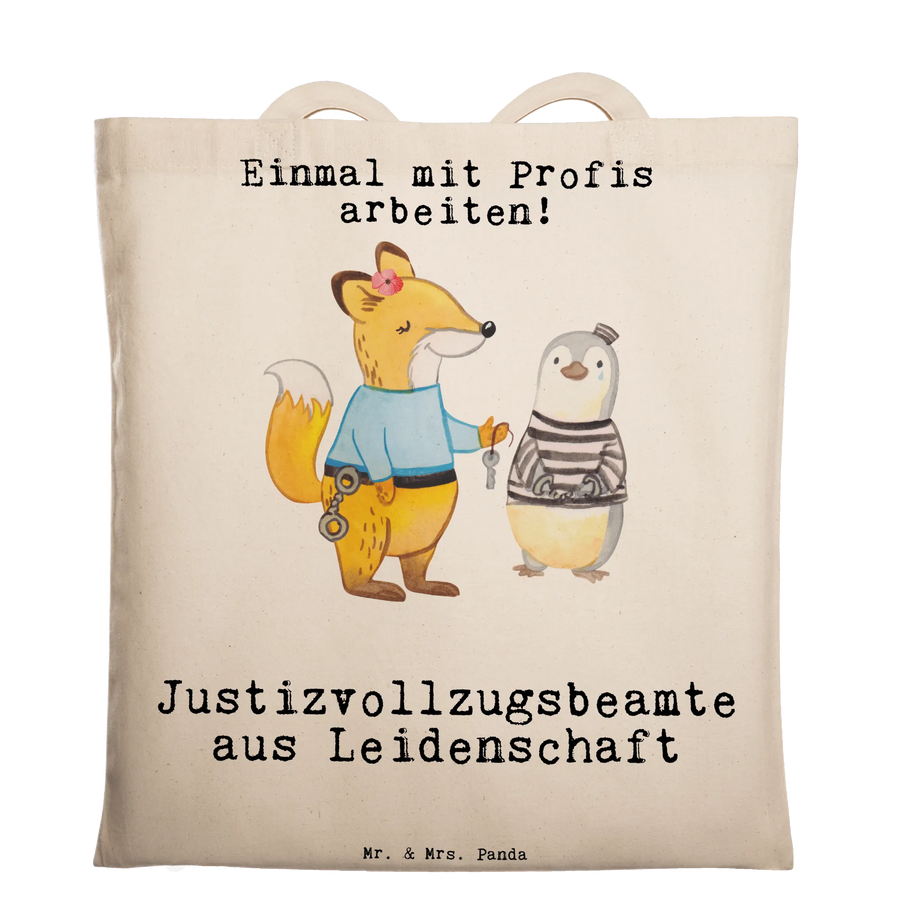 Unsere Mr. & Mrs. Panda Tragetasche mit dem Motiv „Justizvollzugsbeamte aus Leidenschaft“ verbindet Humor, Wärme und Alltagstauglichkeit. Das süße Motiv zeigt eine kleine, entschlossene Justizvollzugsbeamtin als Fuchs, die ihren Pinguin in Handschellen legt – ein liebevoll-leichtes Design, das Kolleginnen und Kollegen zum Schmunzeln bringt.