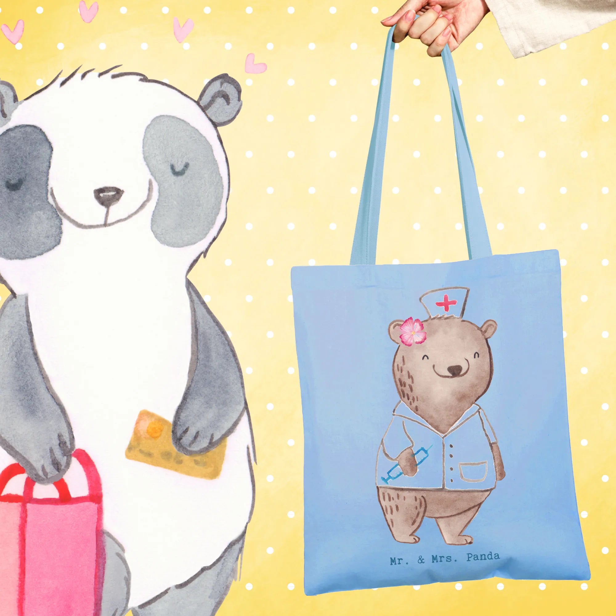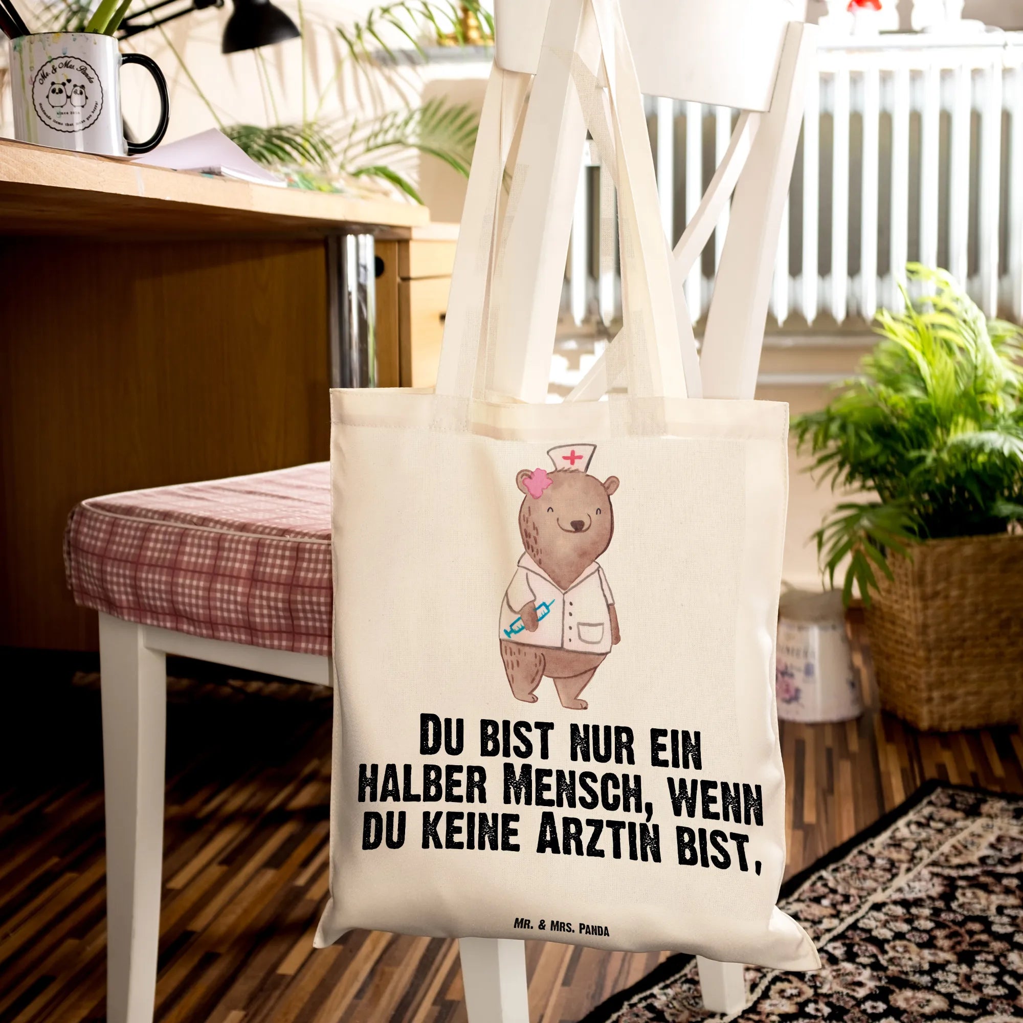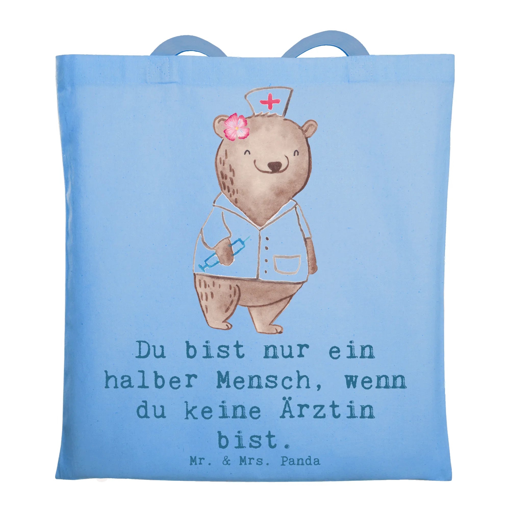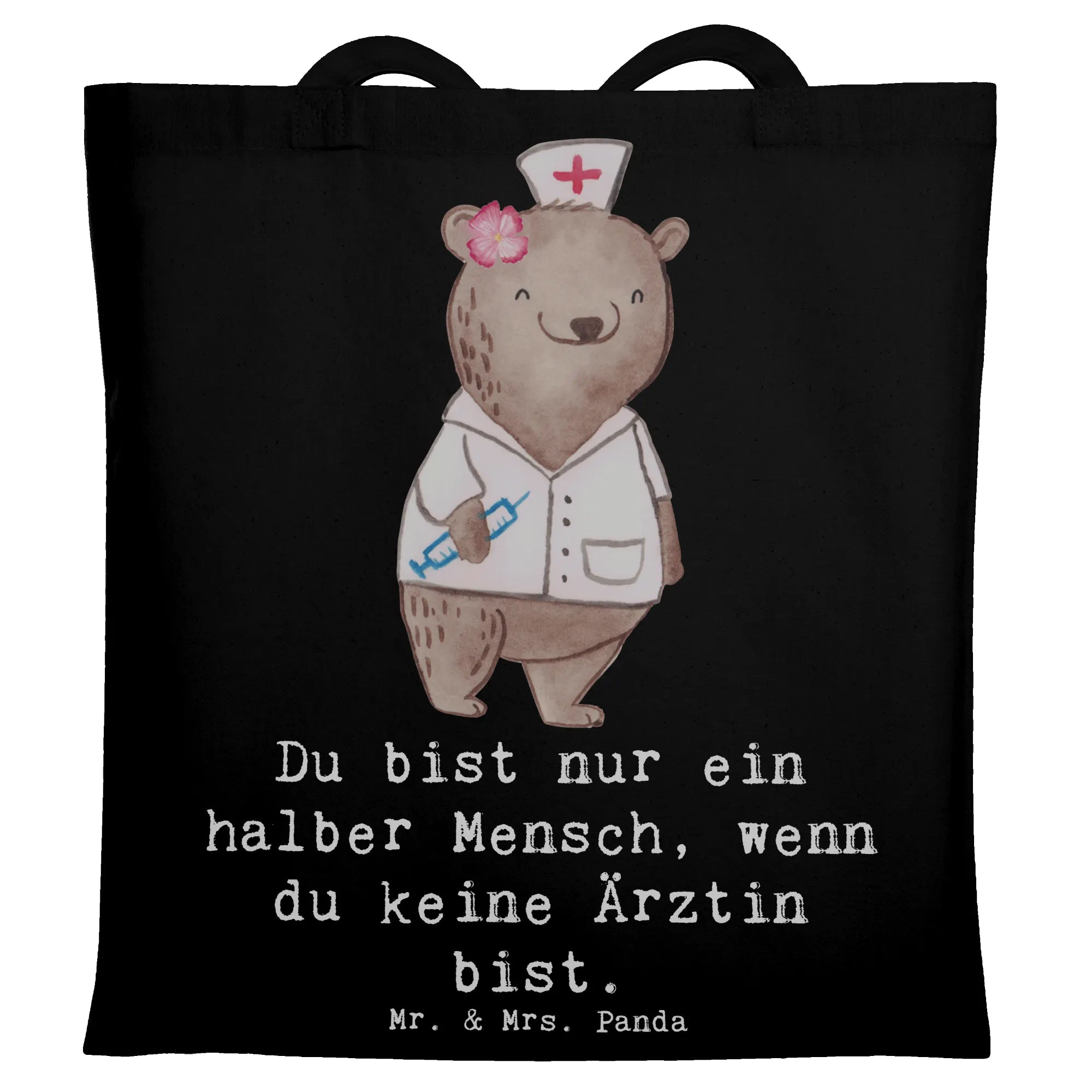 Liebevoll gestaltet: Teil der Berufe Kollektion von Mr. & Mrs. Panda – handgezeichnete Aquarell-Motive, die persönliche Wertschätzung ausdrücken. Diese Tragetasche ist eine schöne Geschenkidee für Ärztinnen, Medizinstudentinnen, Kolleginnen und Mitarbeiterinnen.