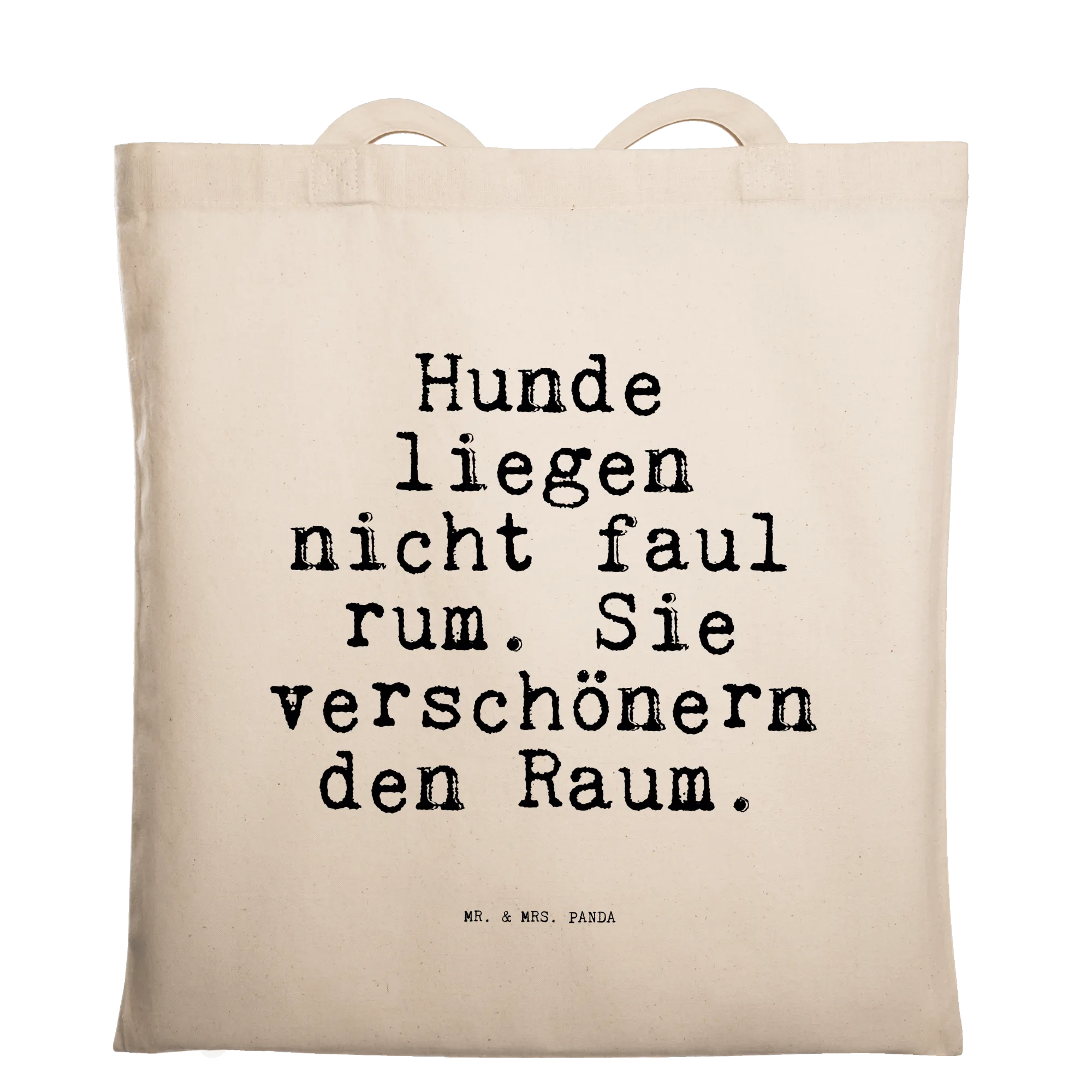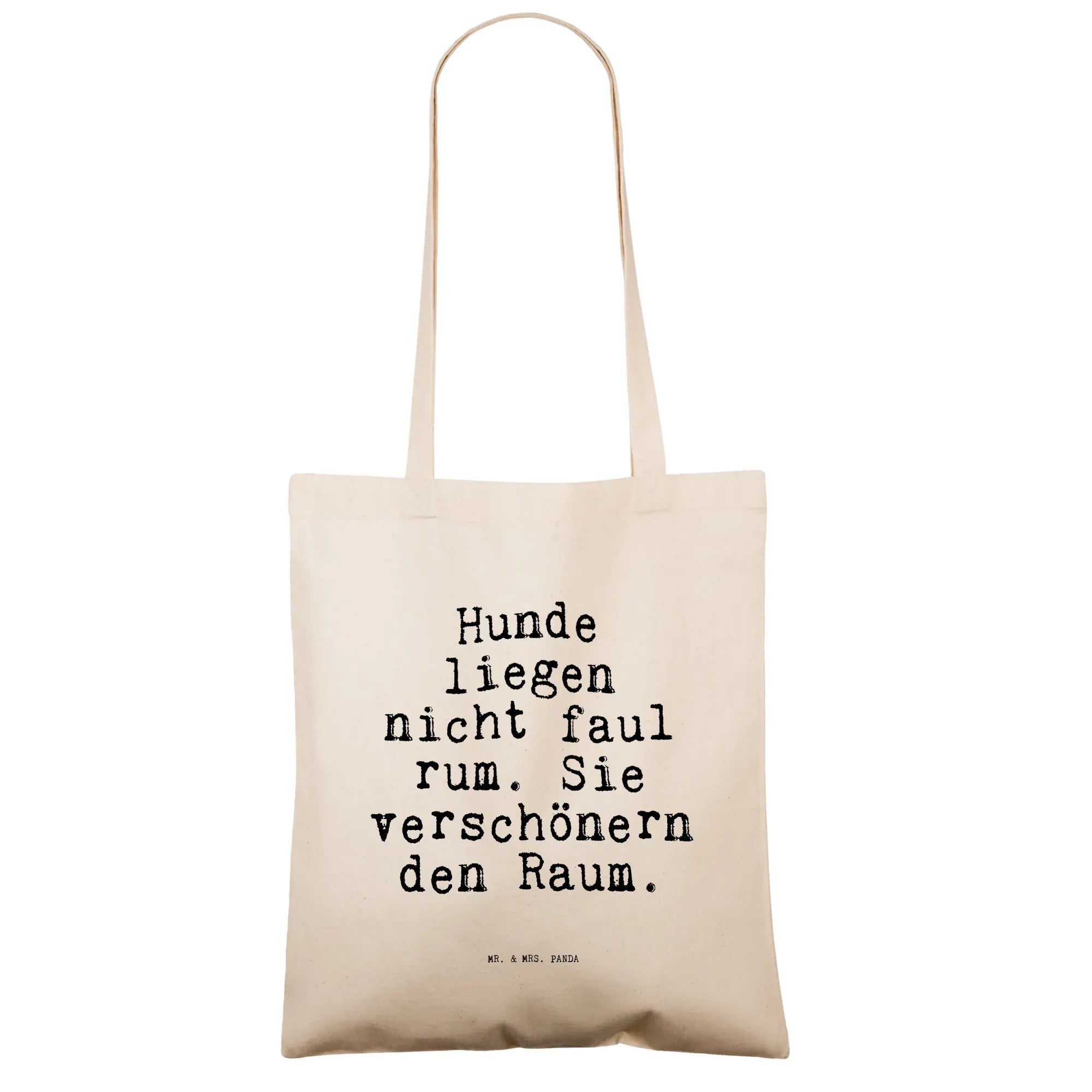 Suchst du ein Geschenk für Hundeliebhaber oder eine fröhliche Tasche für den Alltag? Unsere Tragetasche mit dem Spruch „Hunde liegen nicht faul rum. Sie verschönern den Raum.“ aus der Spruchreif-Kollektion von Mr. & Mrs. Panda vereint Witz, Wärme und Alltagstauglichkeit.