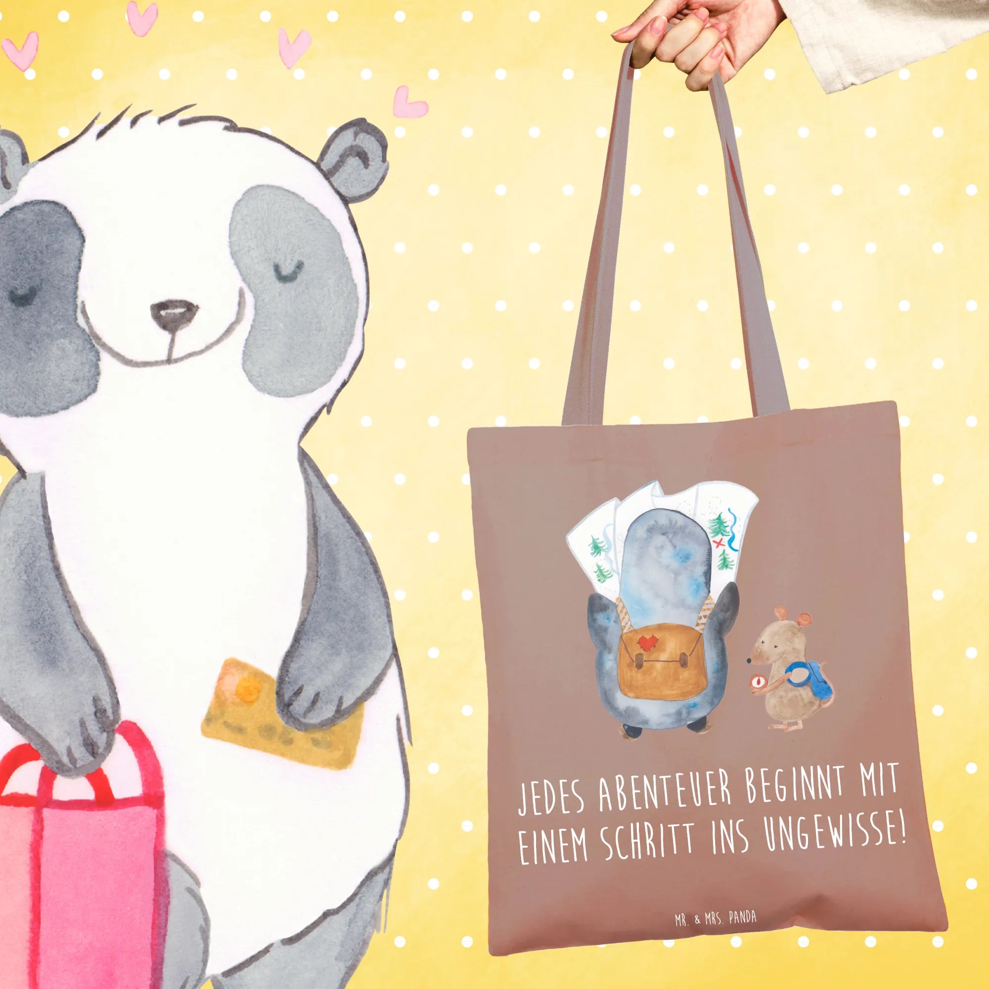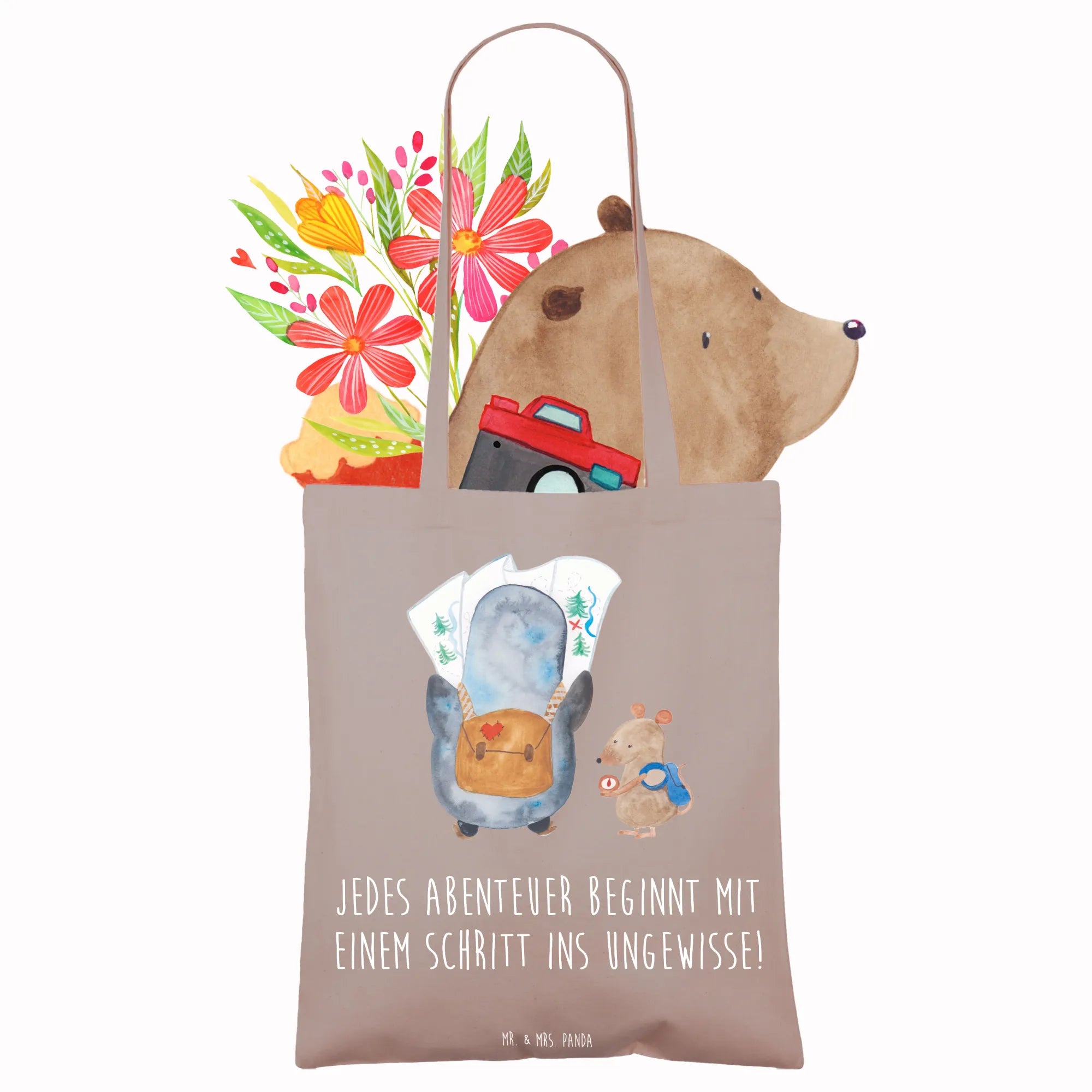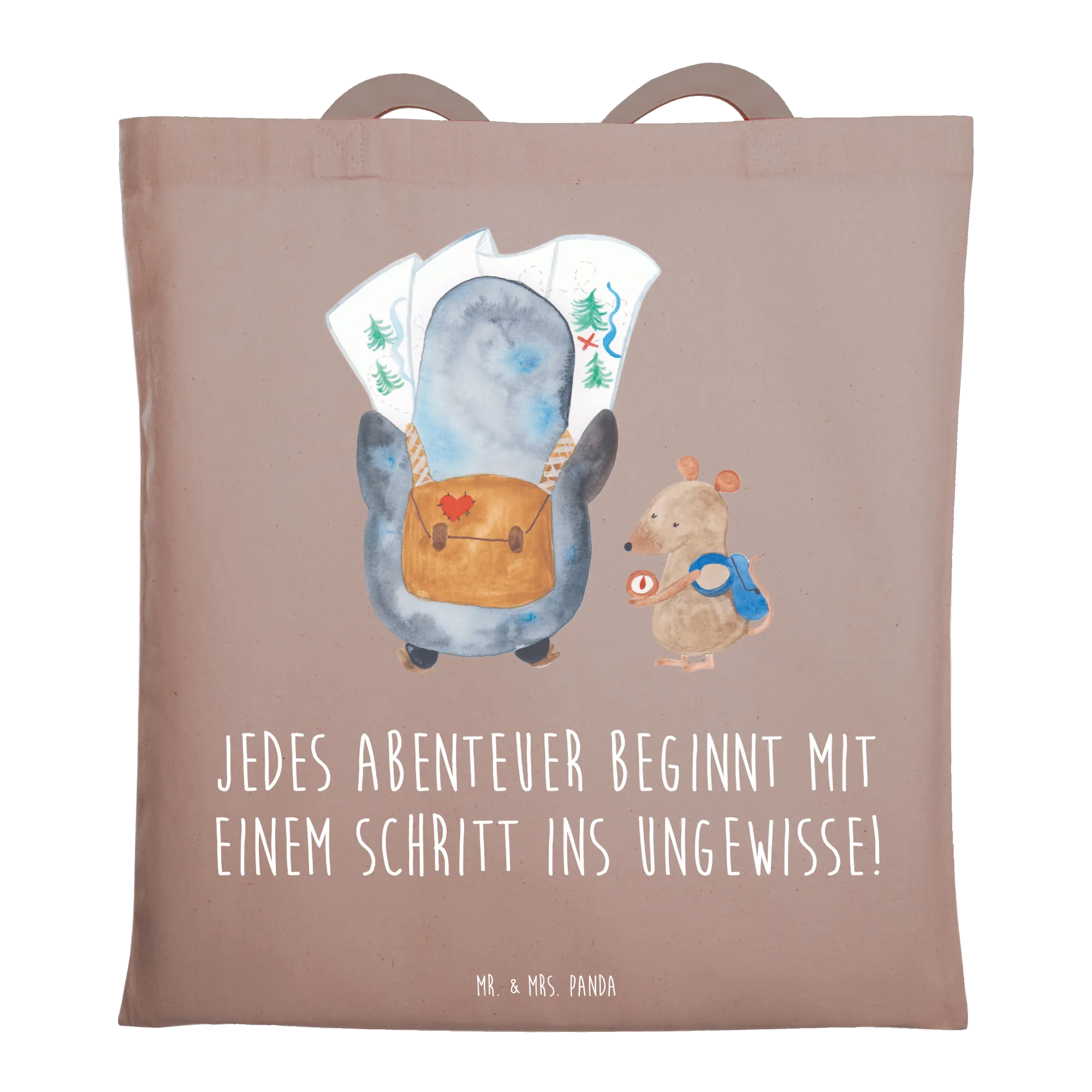 Tote bag Jedes Abenteuer beginnt mit einem Schritt ins Ungewisse! – Mr. & Mrs. Panda