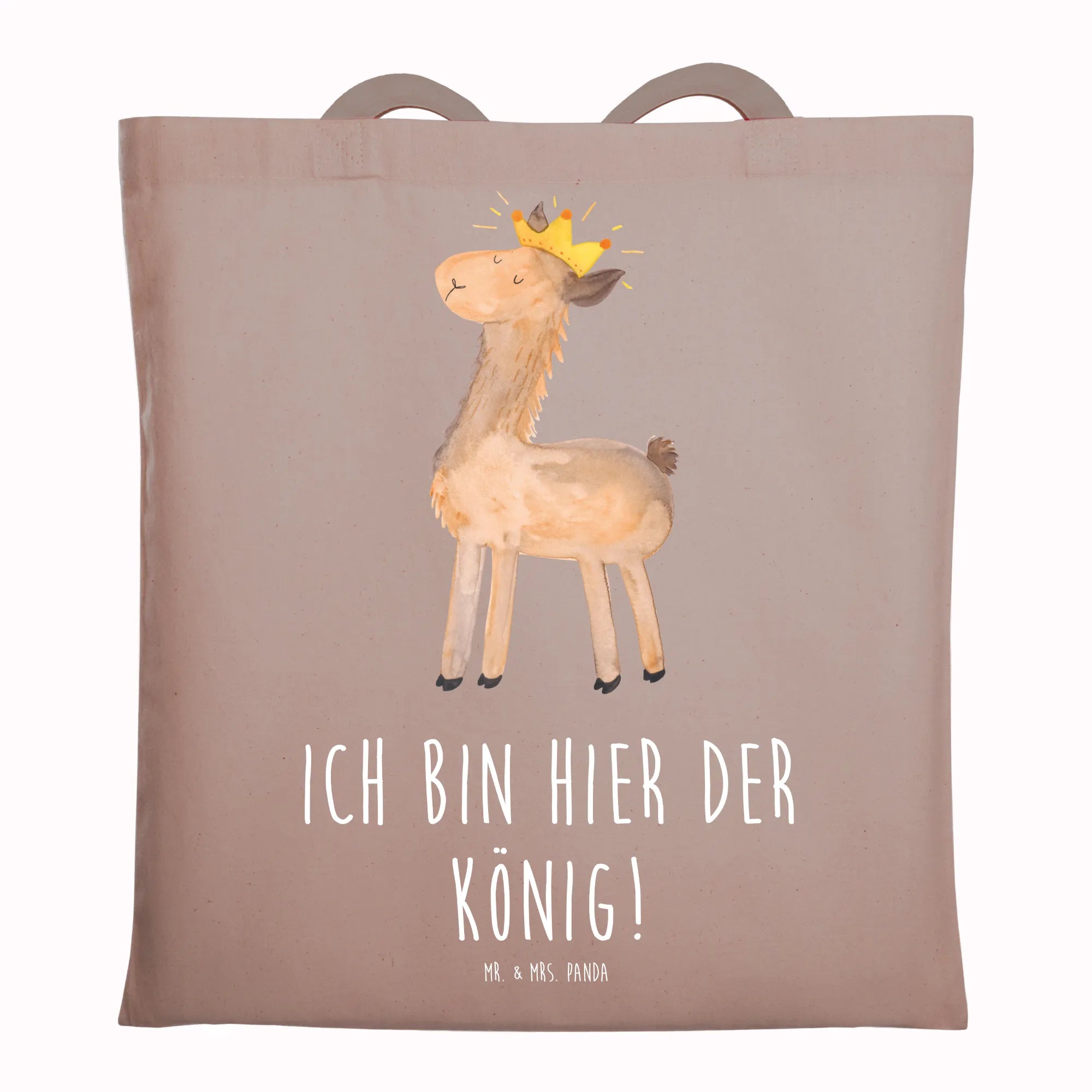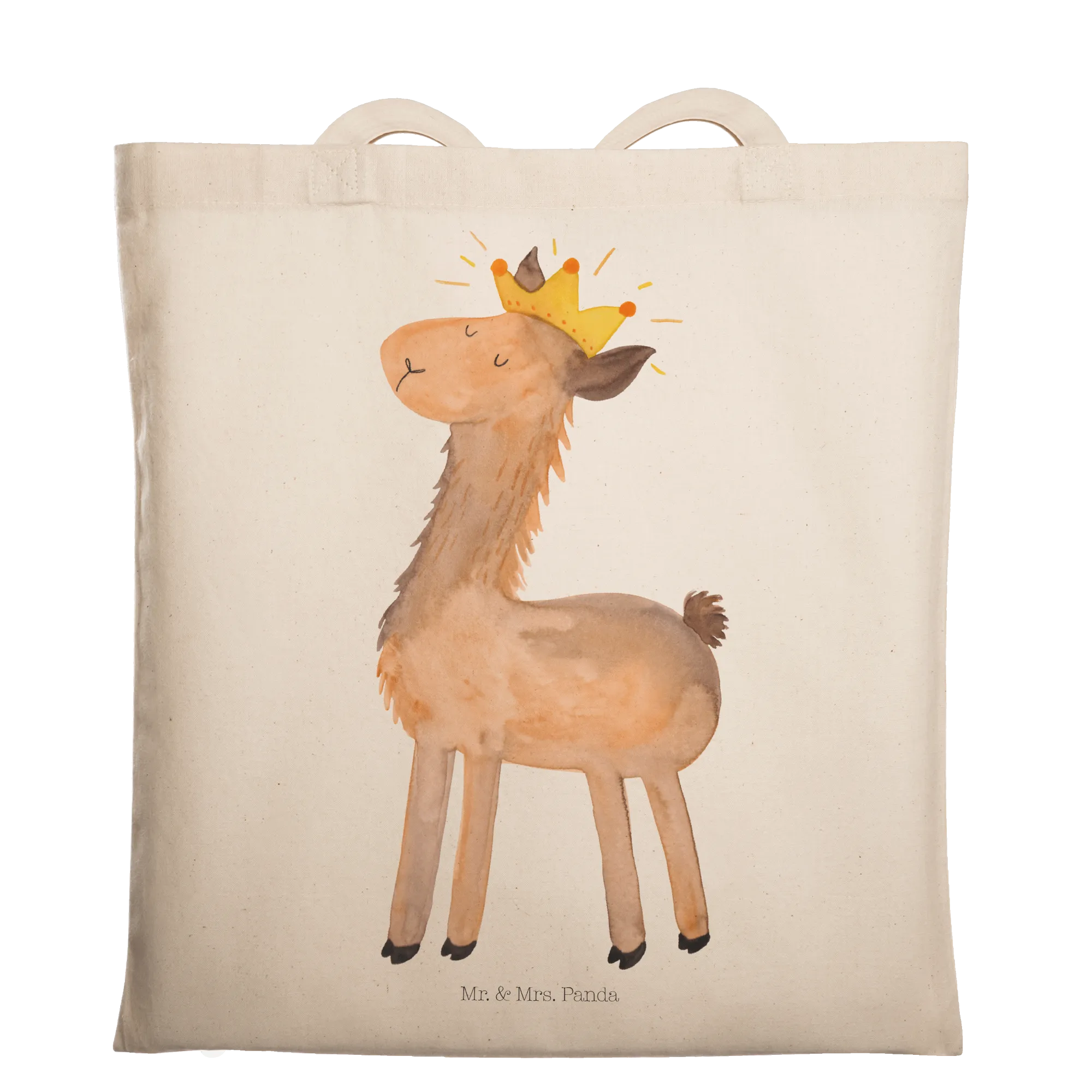 Looking for the perfect gift that combines functionality with a touch of whimsy? Look no further than the delightful Mr. & Mrs. Panda Tote Bag featuring our beloved "Lama King" motif! Made from 100% organic cotton, this sturdy and stylish shopping bag is not just a practical choice but also a fashionable statement piece. It has been beautifully hand-printed, ensuring every detail—from the charming llama wearing a crown to the high-quality material—is crafted with love and care.