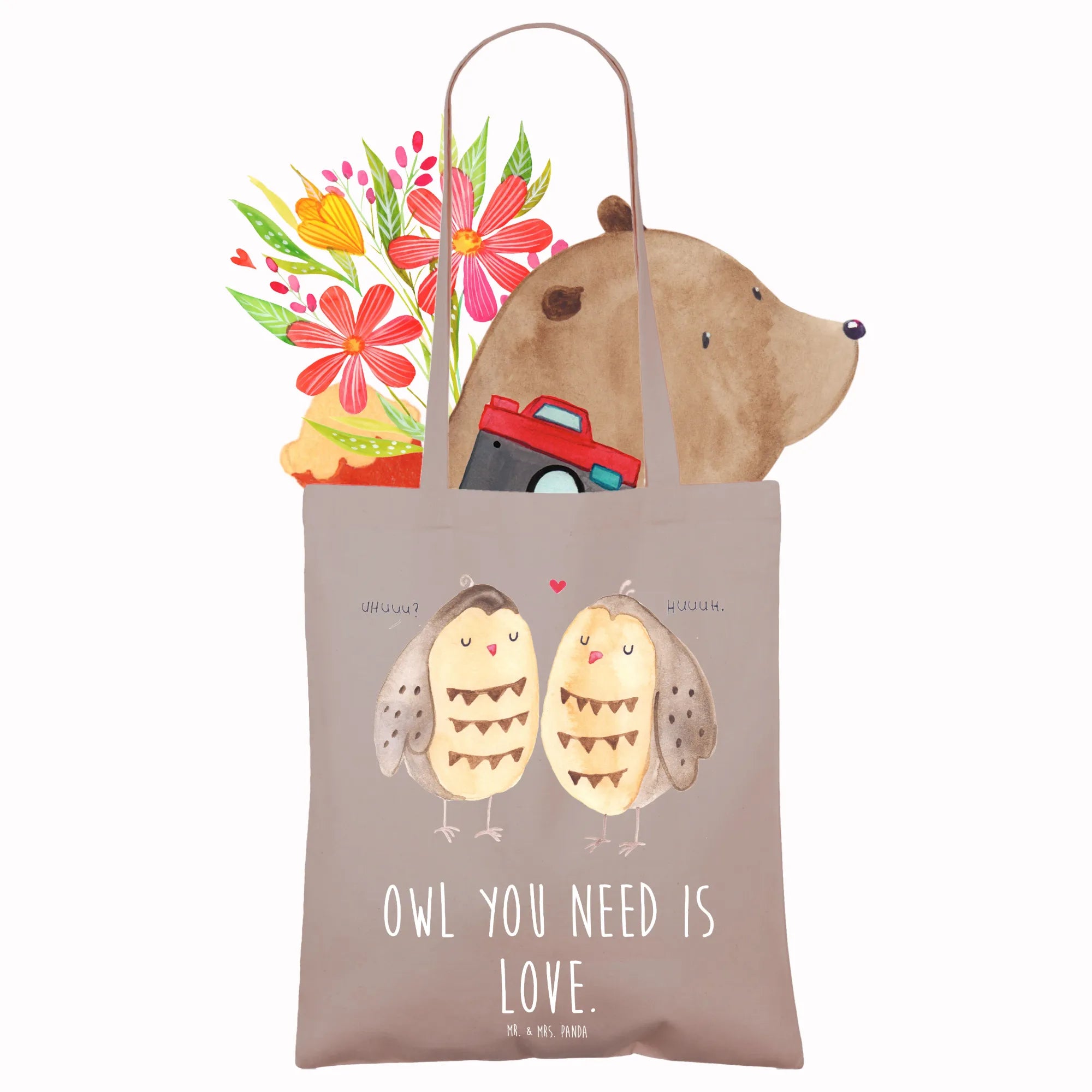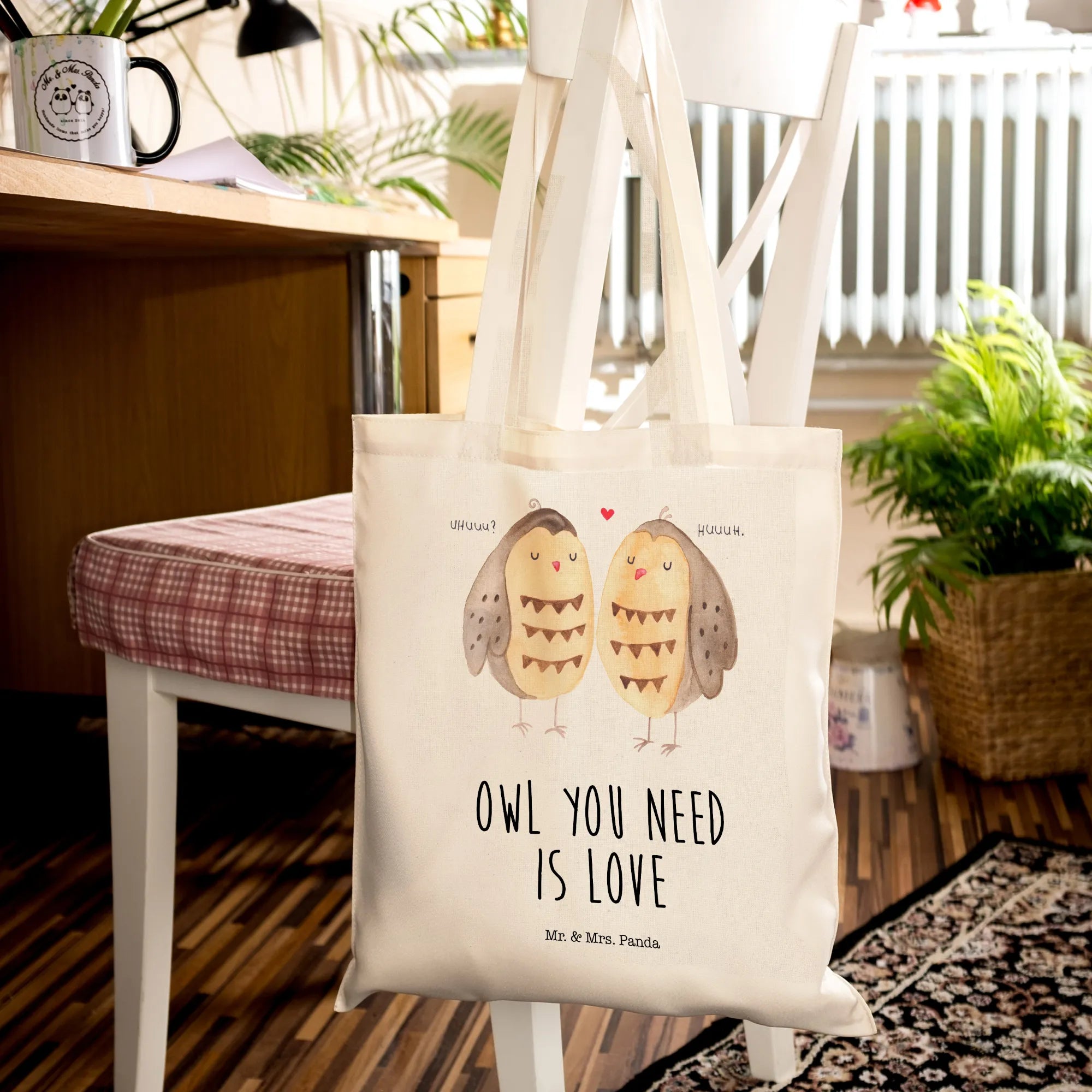 Meet the lovely Owls in Love Tote Bag from Mr. & Mrs. Panda, a charming addition to your accessory collection! This adorable bag features two sweet, love-struck owls perched on a branch, capturing the essence of romance and nature perfectly.