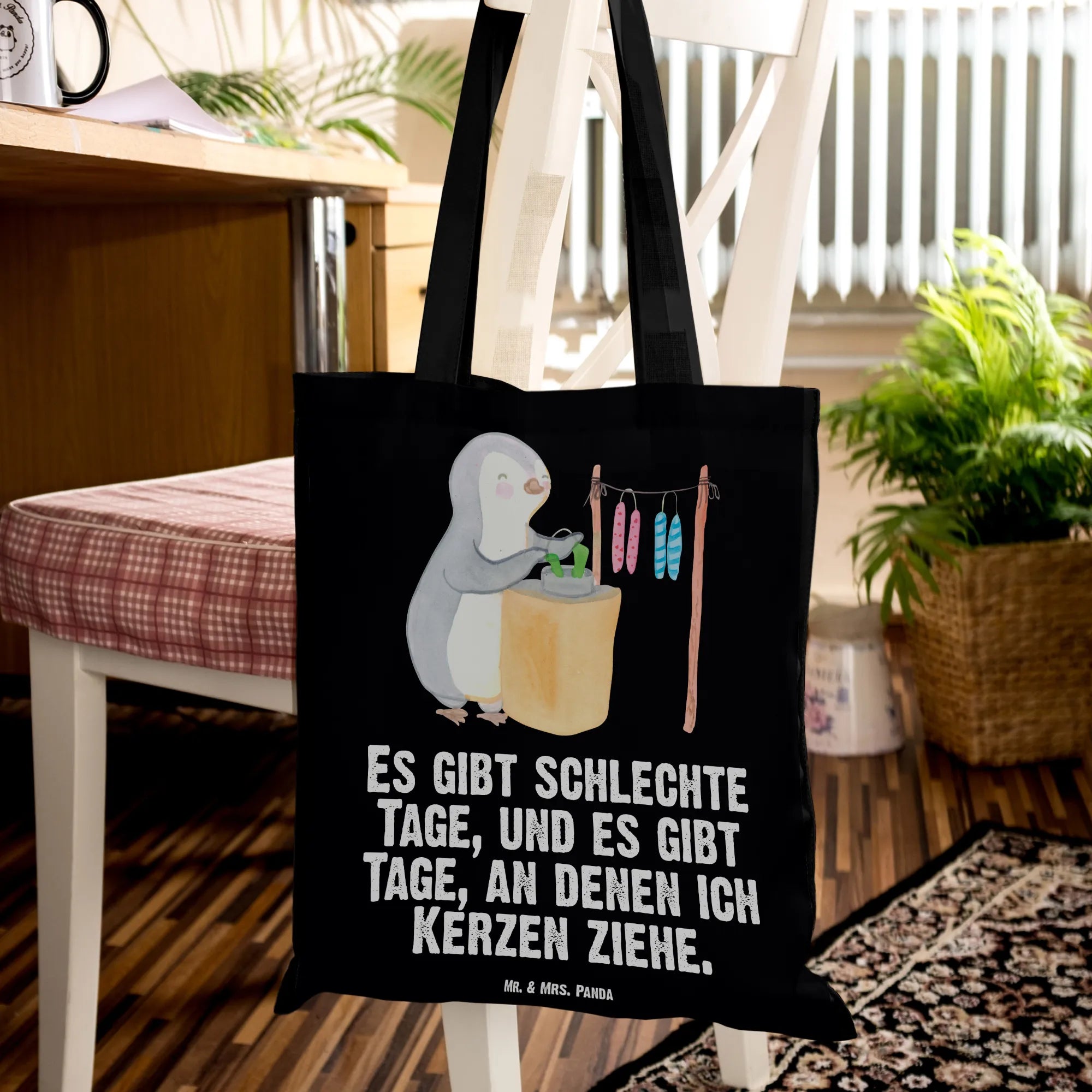 Tote bag penguin candle making - with saying - Transparent