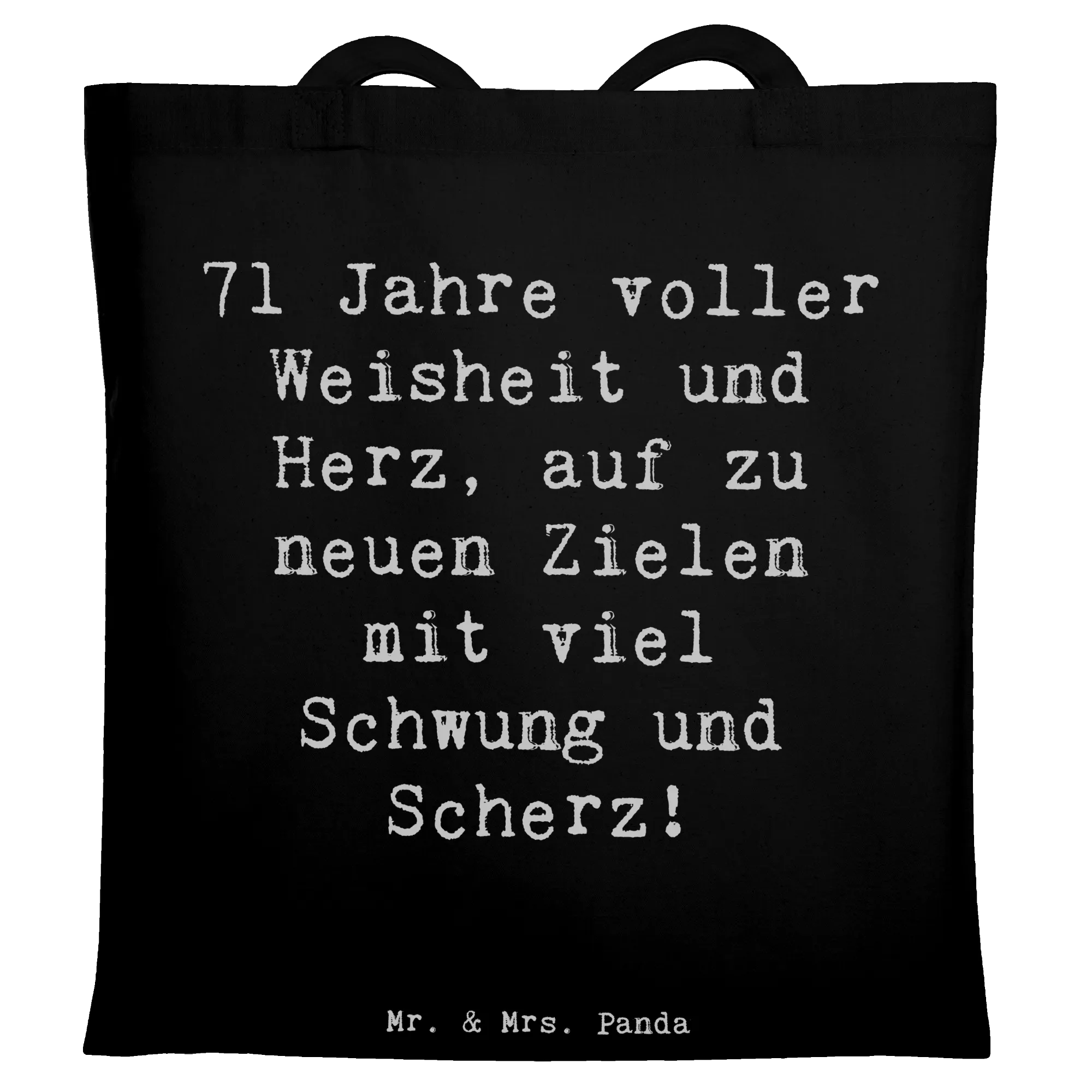 Suchst du ein Geschenk, das praktisch ist und gleichzeitig von Herzen kommt? Diese liebevoll gestaltete Tragetasche mit dem Spruch „71 Jahre voller Weisheit und Herz, auf zu neuen Zielen mit viel Schwung und Scherz!” ist genau das richtige Präsent für Geburtstagskinder, die ihr Alter mit einem Augenzwinkern feiern. 🎉