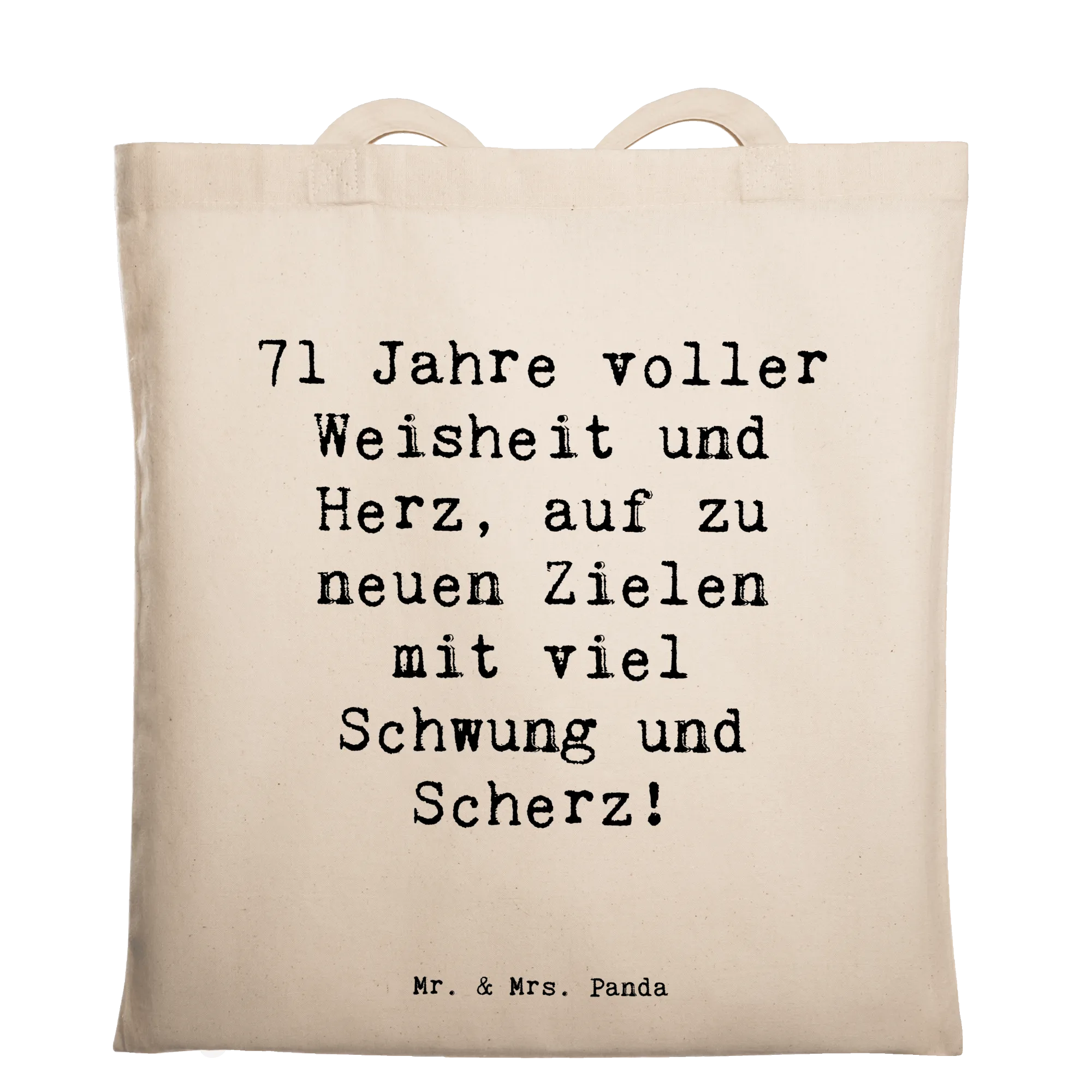 Tote bag Saying 71 Jahre voller Weisheit und Herz, auf zu neuen Zielen mit viel Schwung und Scherz! - Transparent
