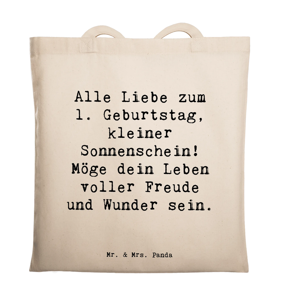 Tote bag Saying Alle Liebe zum 1. Geburtstag, kleiner Sonnenschein! Möge dein Leben voller Freude und Wunder sein. - Transparent