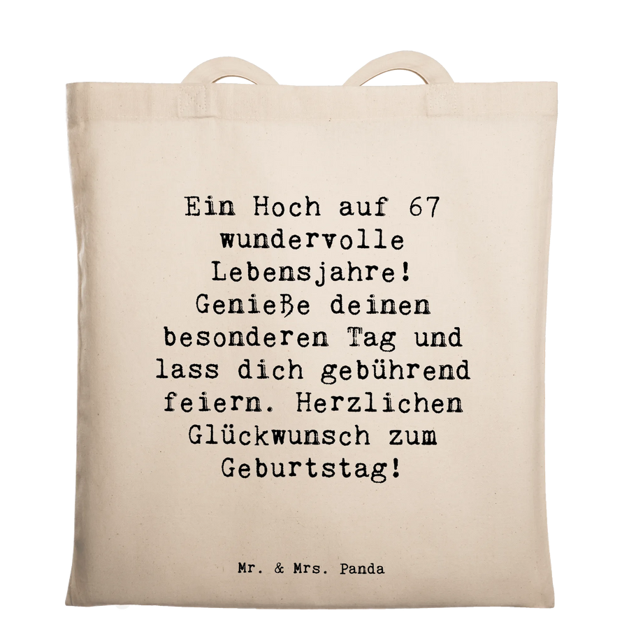 Tote bag Saying Ein Hoch auf 67 wundervolle Lebensjahre! Genieße deinen besonderen Tag und lass dich gebührend feiern. Herzlichen Glückwunsch zum Geburtstag! - Transparent
