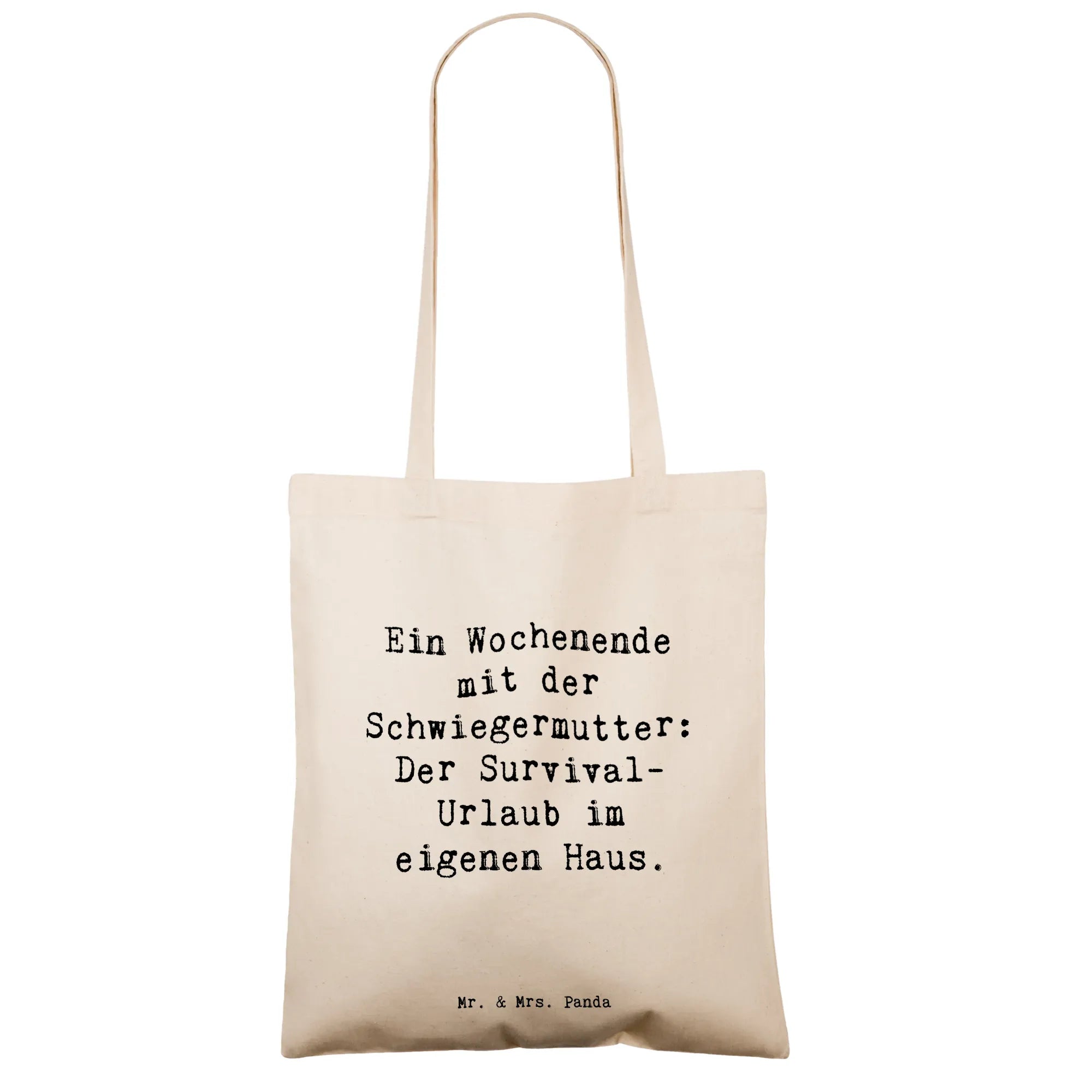 Tote bag Saying Ein Wochenende mit der Schwiegermutter: Der Survival-Urlaub im eigenen Haus. - Transparent