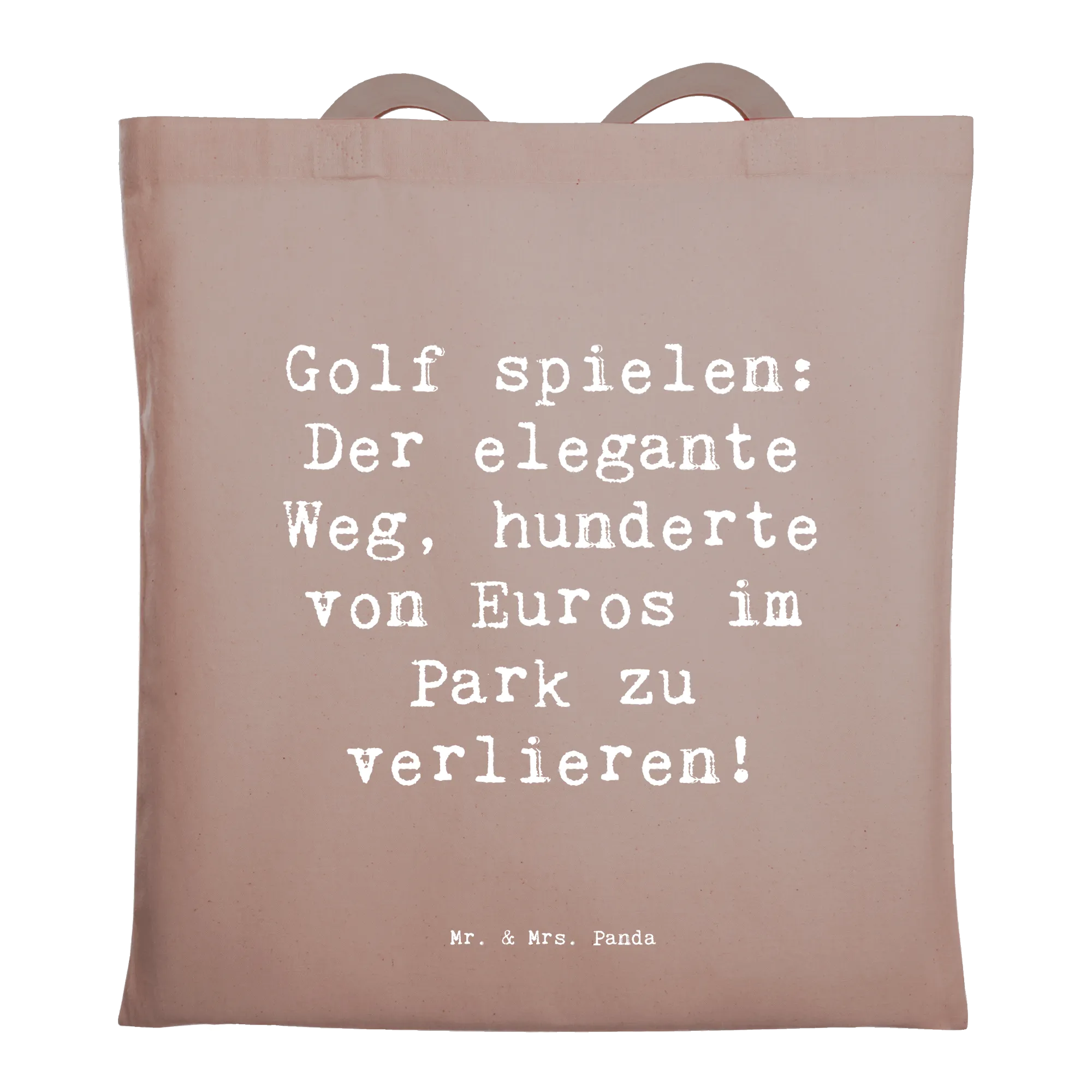 Suchst Du eine Baumwolltasche, die Humor und Funktion verbindet? Unsere Tragetasche aus der Sportarten-Kollektion bringt beides mit: Auf schwarzem Hintergrund steht der freche Spruch „Golf spielen: Der elegante Weg, hunderte von Euros im Park zu verlieren!“, der jedem Golfer ein Lächeln ins Gesicht zaubert.