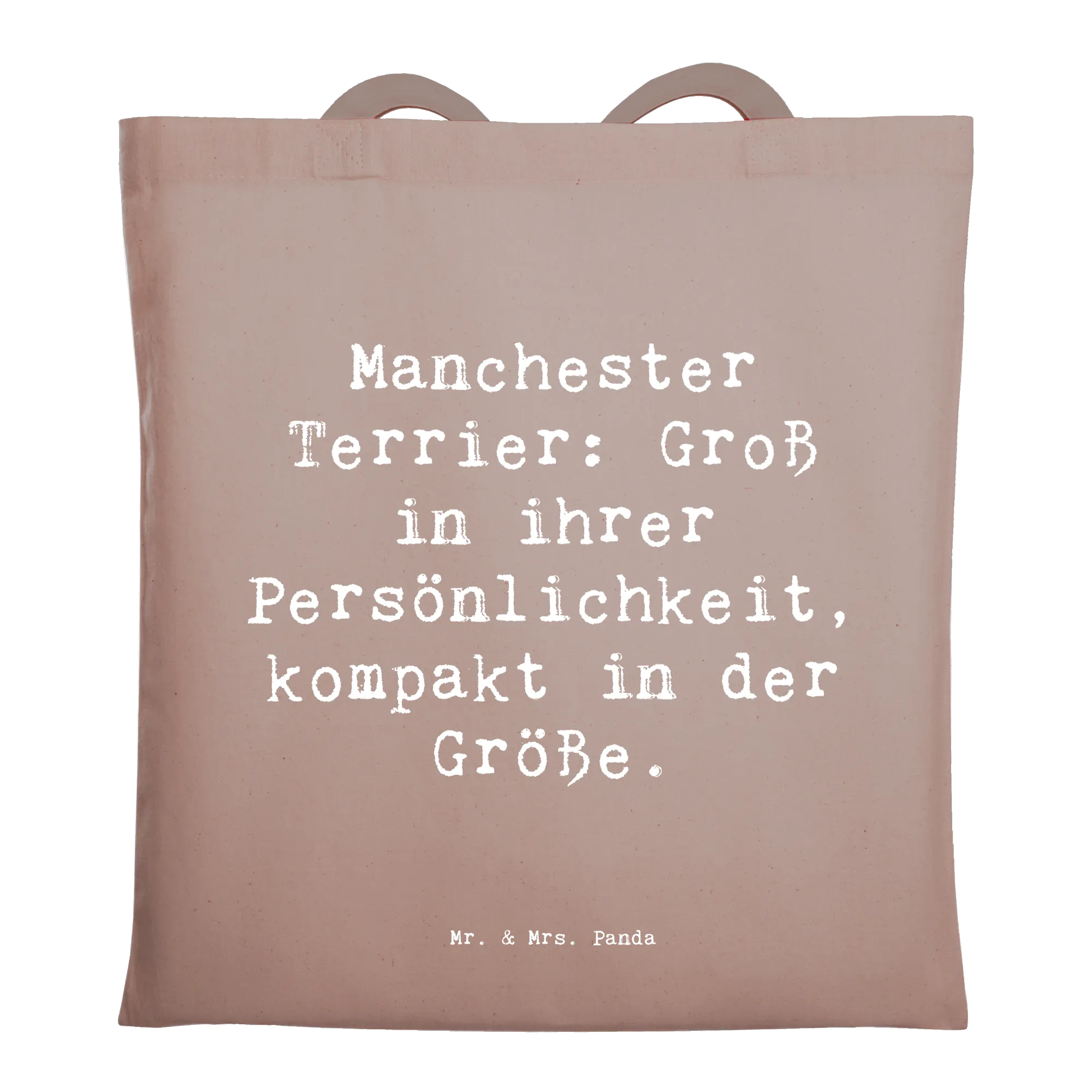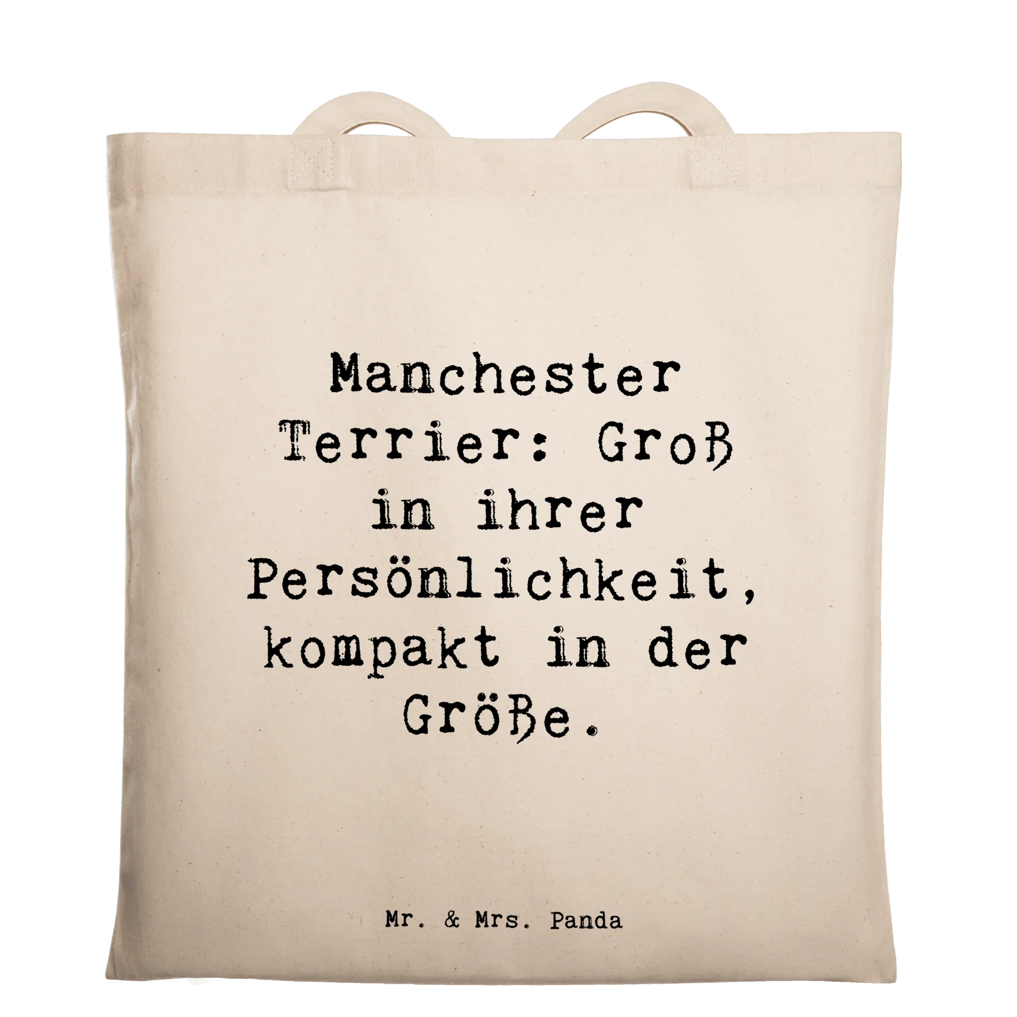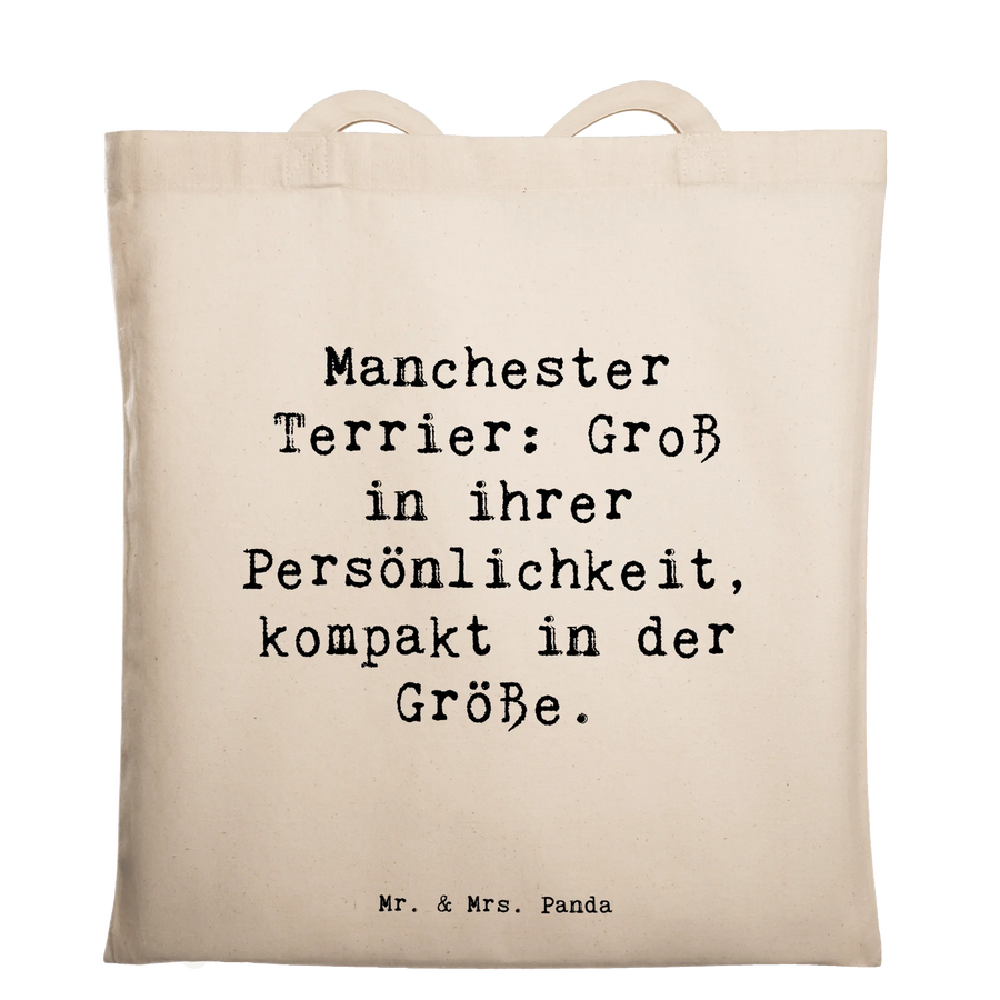 Mr. & Mrs. Panda Tragetasche Manchester Terrier – eine liebevoll gestaltete Baumwolltasche mit dem Spruch „Manchester Terrier: Groß in ihrer Persönlichkeit, kompakt in der Größe.“ Diese Stofftasche aus der Hunderassen Kollektion verbindet praktischen Nutzen mit einem herzlichen Design und ist perfekt für alle Hundeliebhaber.
