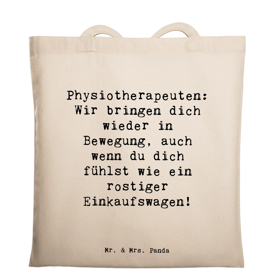 Tote bag Saying Physiotherapeuten: Wir bringen dich wieder in Bewegung, auch wenn du dich fühlst wie ein rostiger Einkaufswagen! - Transparent