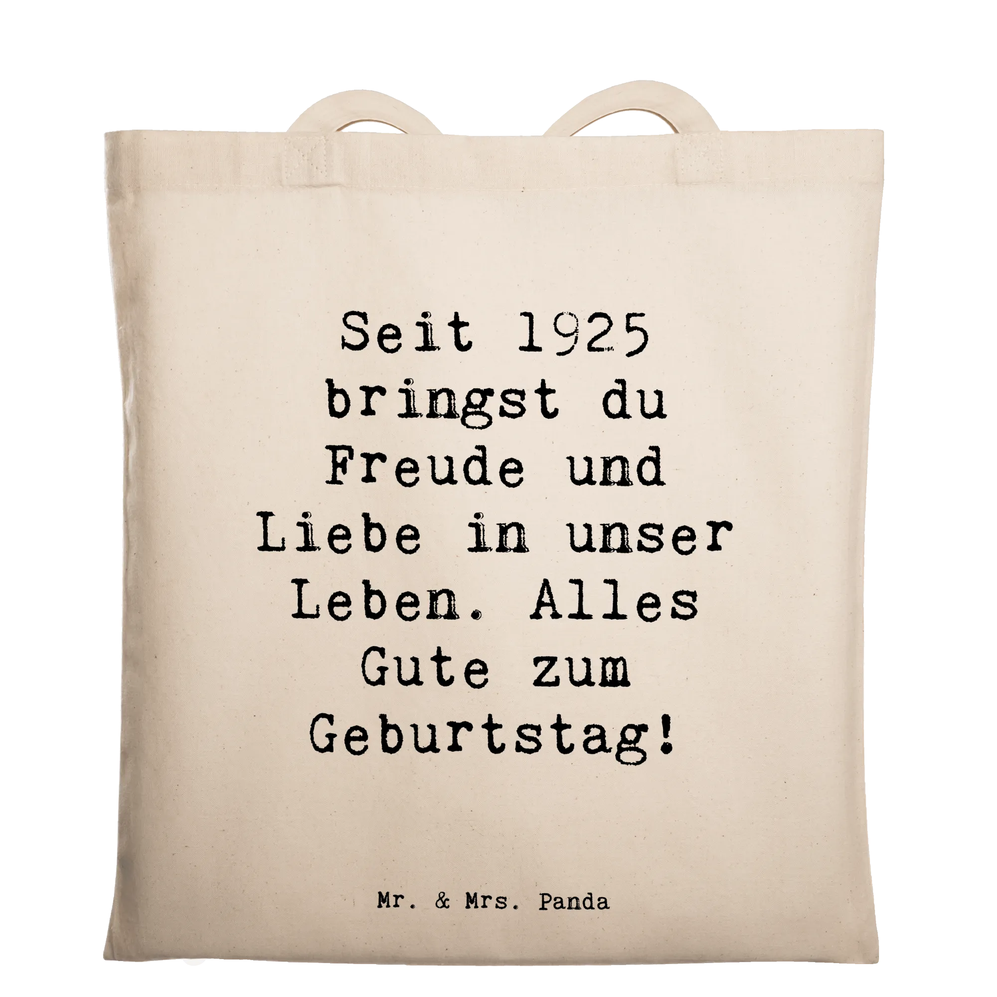 Tote bag Saying Seit 1925 bringst du Freude und Liebe in unser Leben. Alles Gute zum Geburtstag! - Transparent