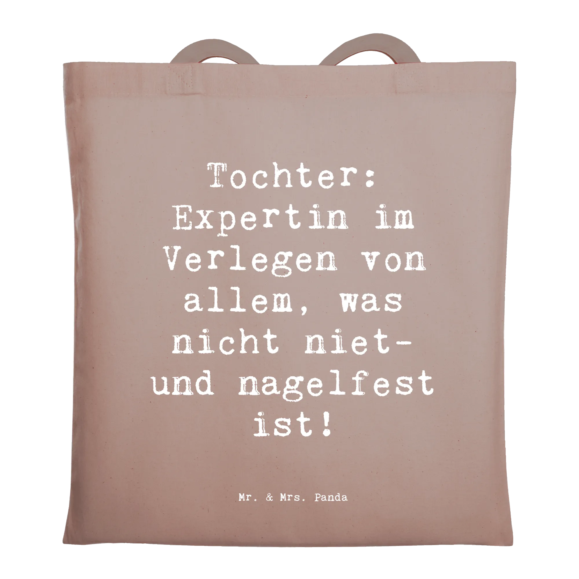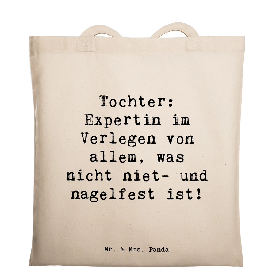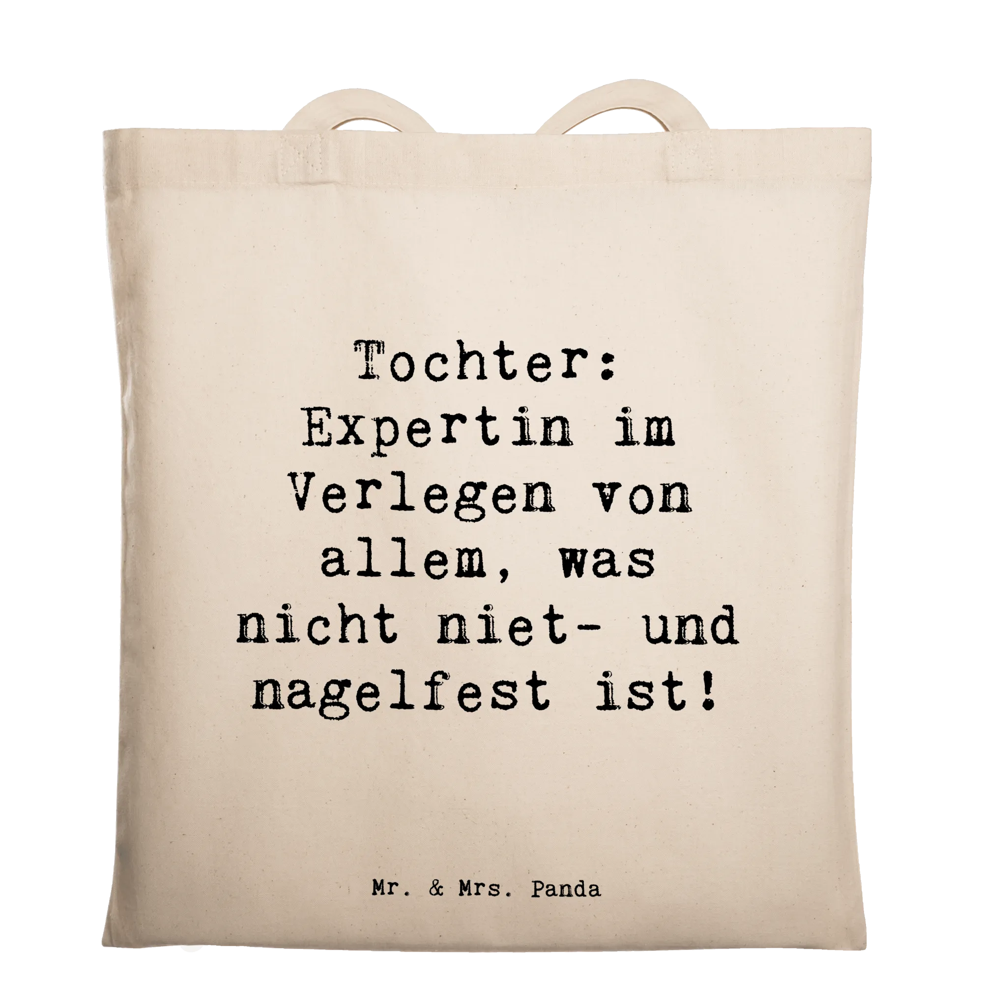 Tote bag Saying Tochter: Expertin im Verlegen von allem, was nicht niet- und nagelfest ist! - Transparent