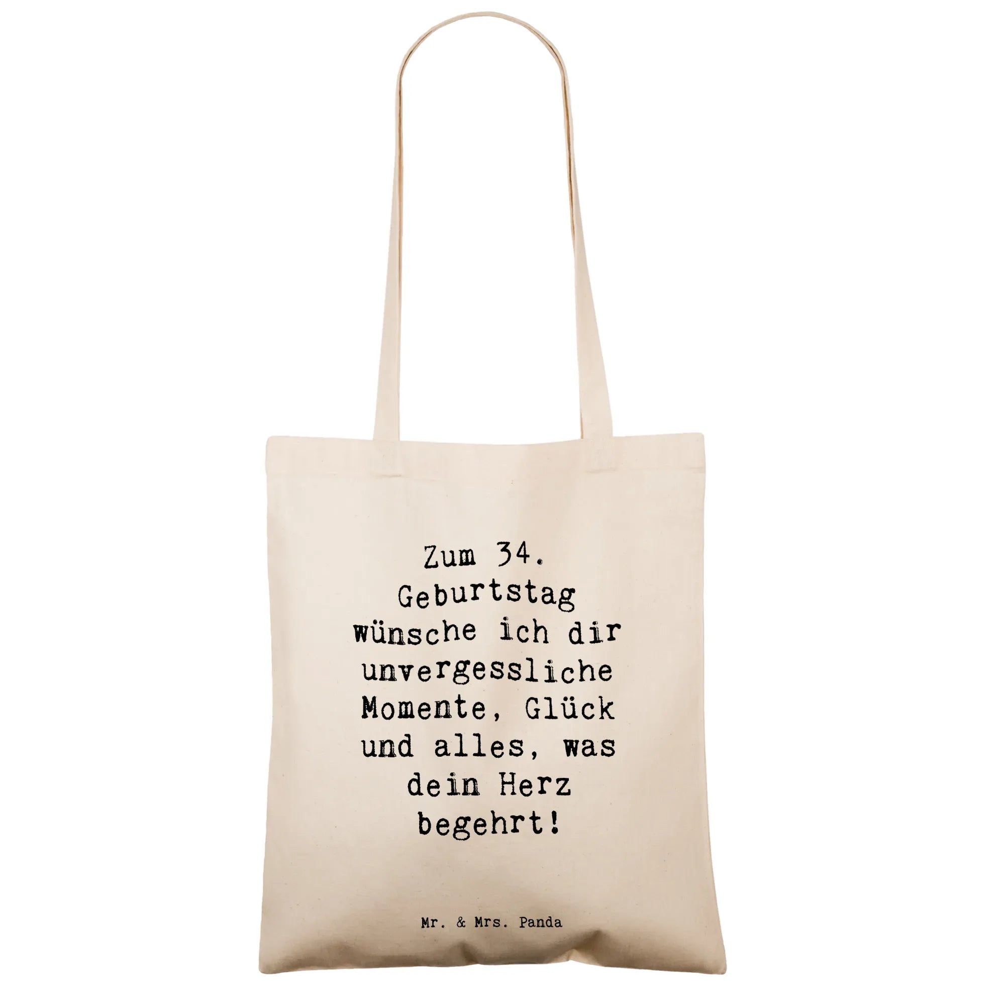 Tote bag Saying Zum 34. Geburtstag wünsche ich dir unvergessliche Momente, Glück und alles, was dein Herz begehrt! - Transparent