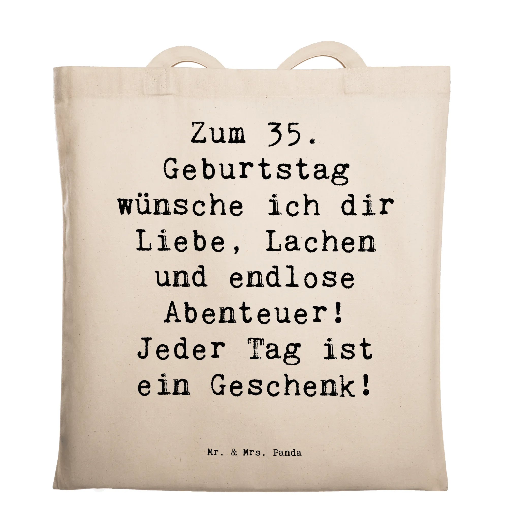 Tote bag Saying Zum 35. Geburtstag wünsche ich dir Liebe, Lachen und e – Mr. & Mrs. Panda