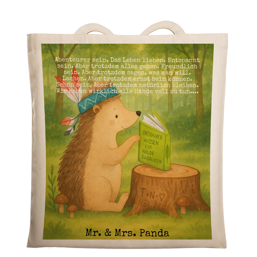 Tragetasche Igel Federschmuck Design - mit Spruch