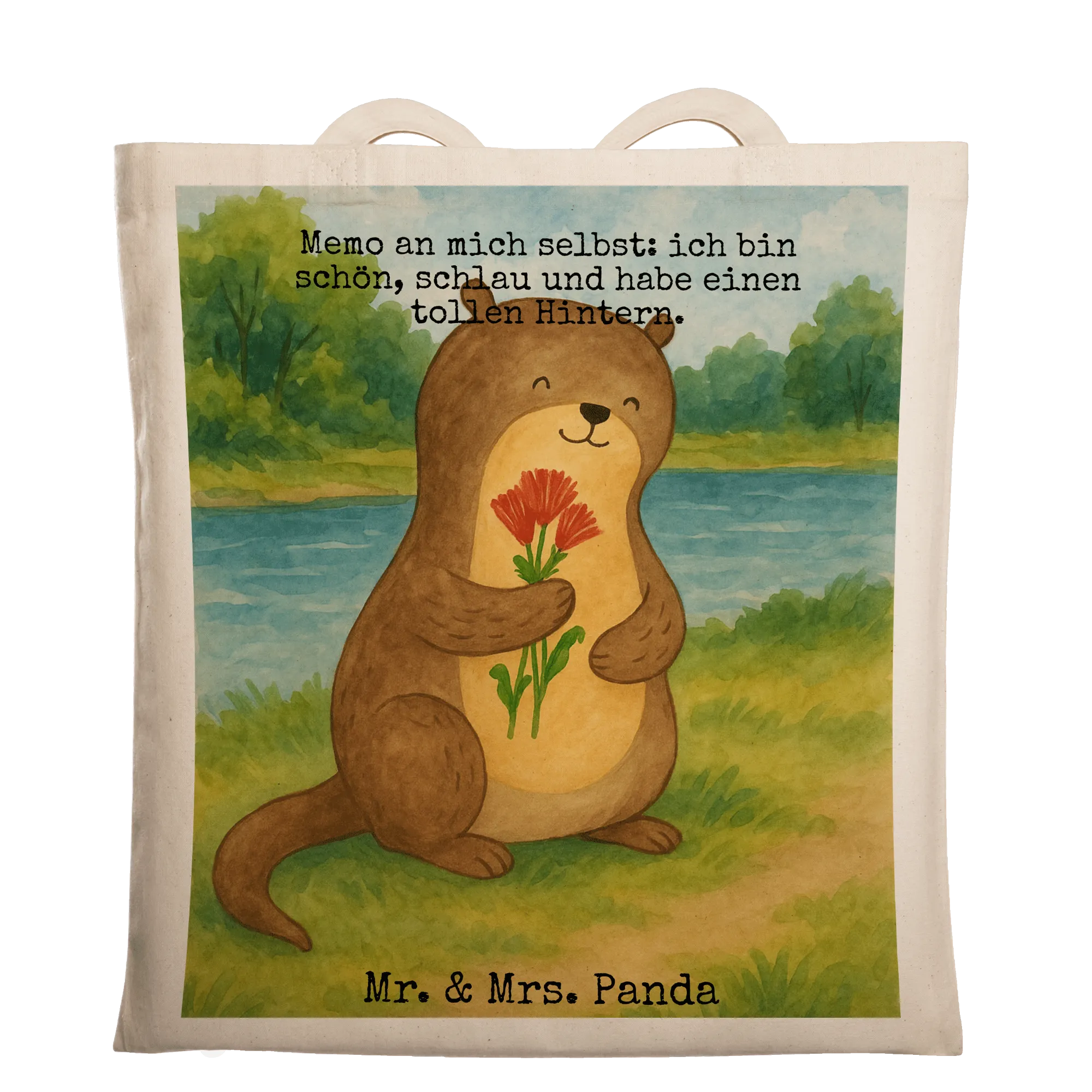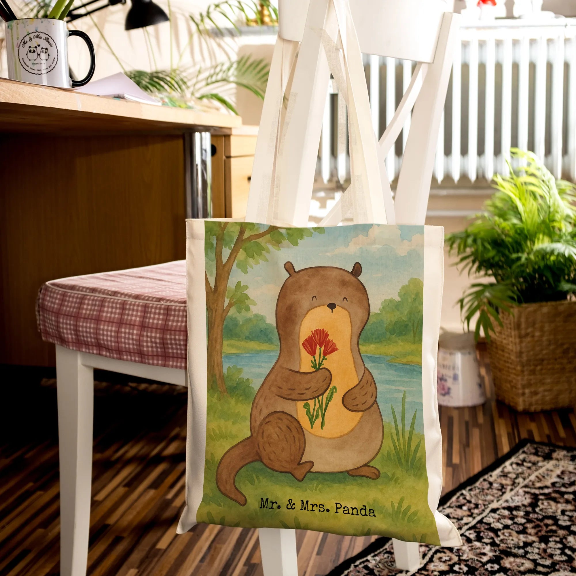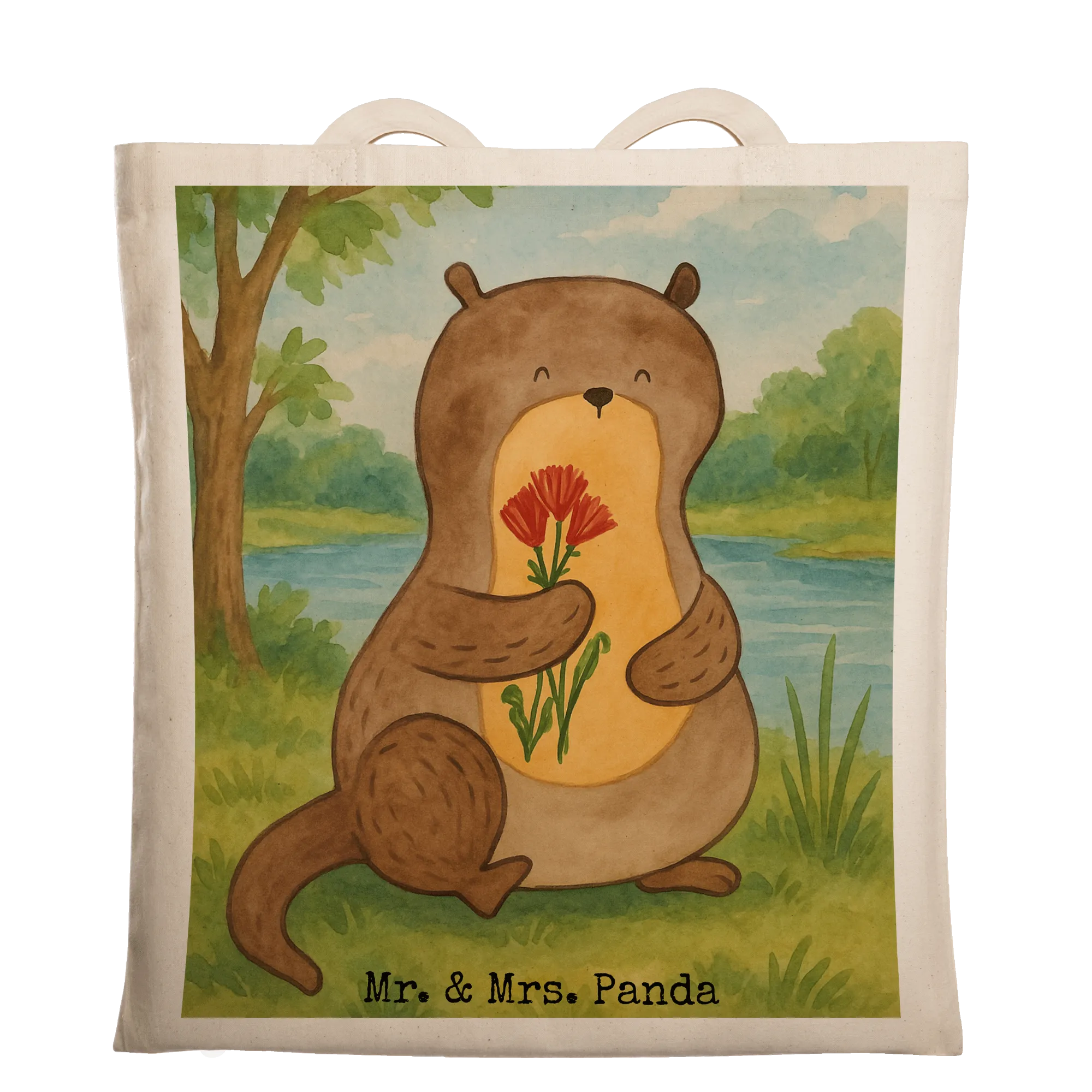 Tragetasche Otter Blumenstrauß Design – Mr. & Mrs. Panda