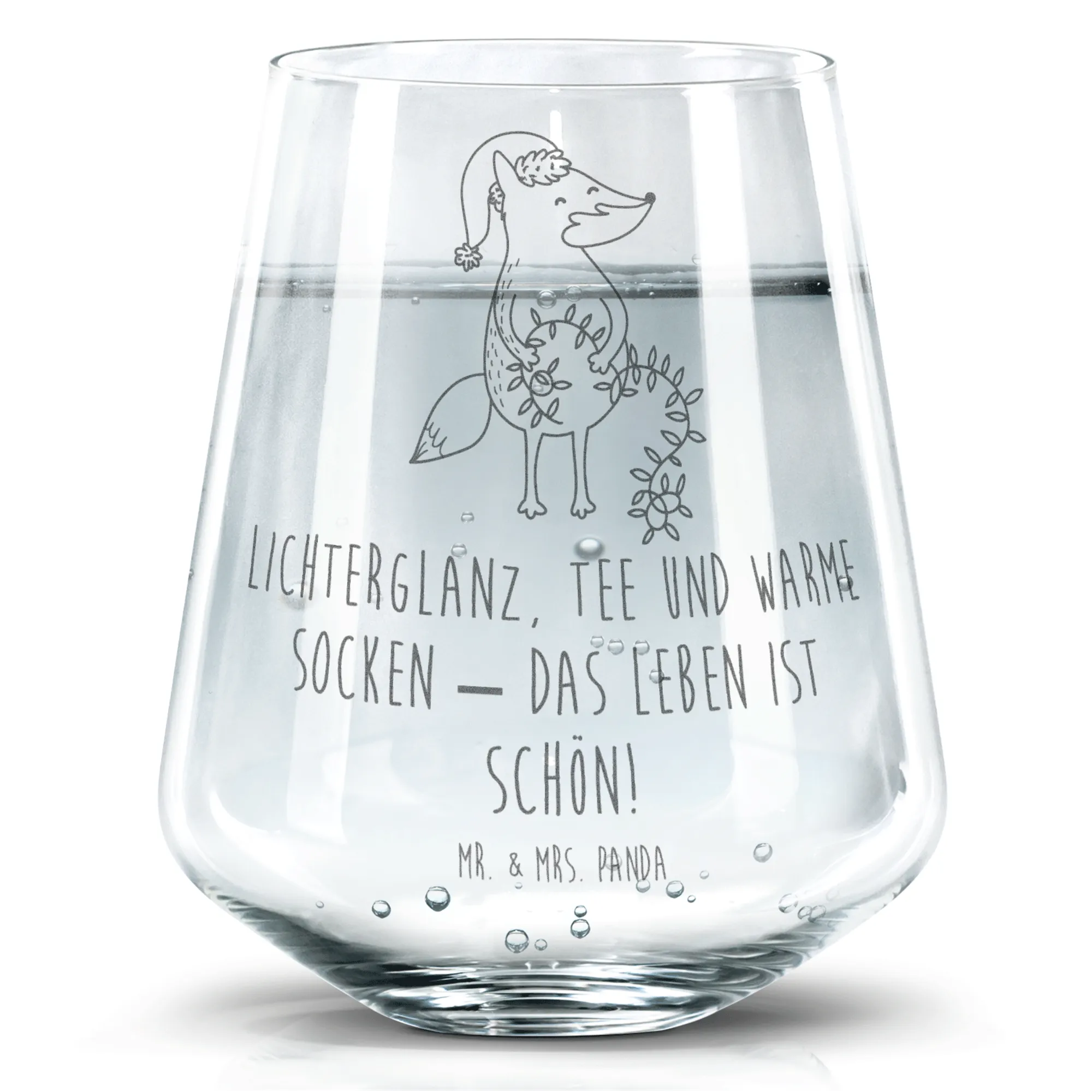 Das Trinkglas mit dem fröhlichen Fuchs aus der Winter Kollektion von Mr. & Mrs. Panda ist das perfekte Geschenk für die Weihnachtszeit! 🌟 Mit einer Höhe von 103 mm und einem Durchmesser von 88 mm bietet es ausreichend Platz für 400 ml deiner Lieblingsgetränke – sei es heißer Tee, erfrischendes Wasser oder ein fruchtiger Saft. Die hochwertige Lasergravur lässt das bezaubernde Motiv des Weihnachts-Fuchses lebendig werden. Dieser Fuchs ist wunderbar in einem warmen Orange-Ton gehalten und trägt eine fröhliche Weihnachtsmütze. Verspielt hält er eine Lichterkette mit bunten Lämpchen, was ihm einen besonders festlichen Ausdruck verleiht! 🎄
