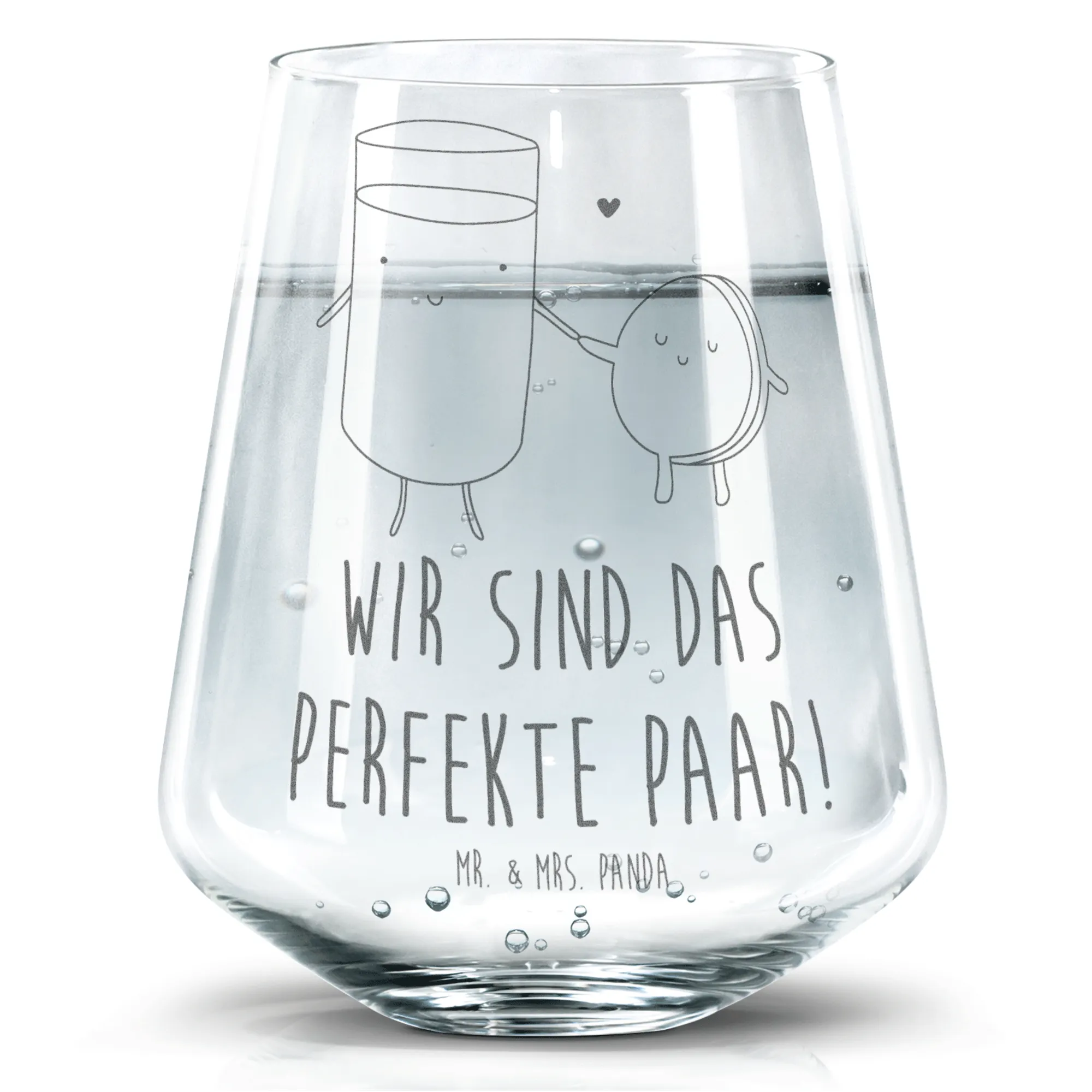 Das Trinkglas "Milch & Keks" von Mr. & Mrs. Panda ist der ideale Begleiter für alle Naschkatzen und Liebhaber schöner Dinge! Mit seiner hochwertigen Lasergravur und dem einzigartigen Design bringt dieses Wasserglas frischen Wind in jedes Zuhause. Das niedliche Motiv zeigt ein Glas Milch und einen Keks, die liebevoll Händchen halten und niemanden unberührt lassen.